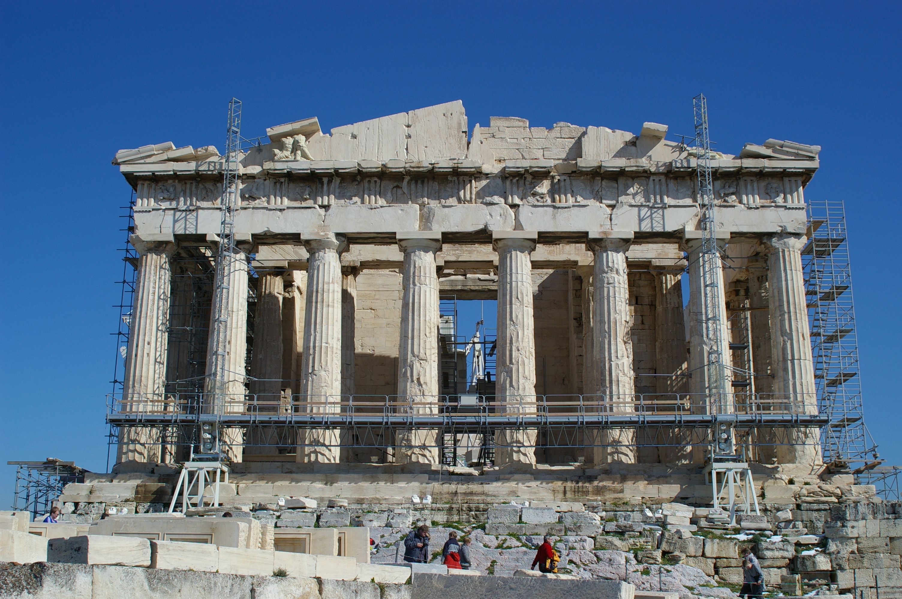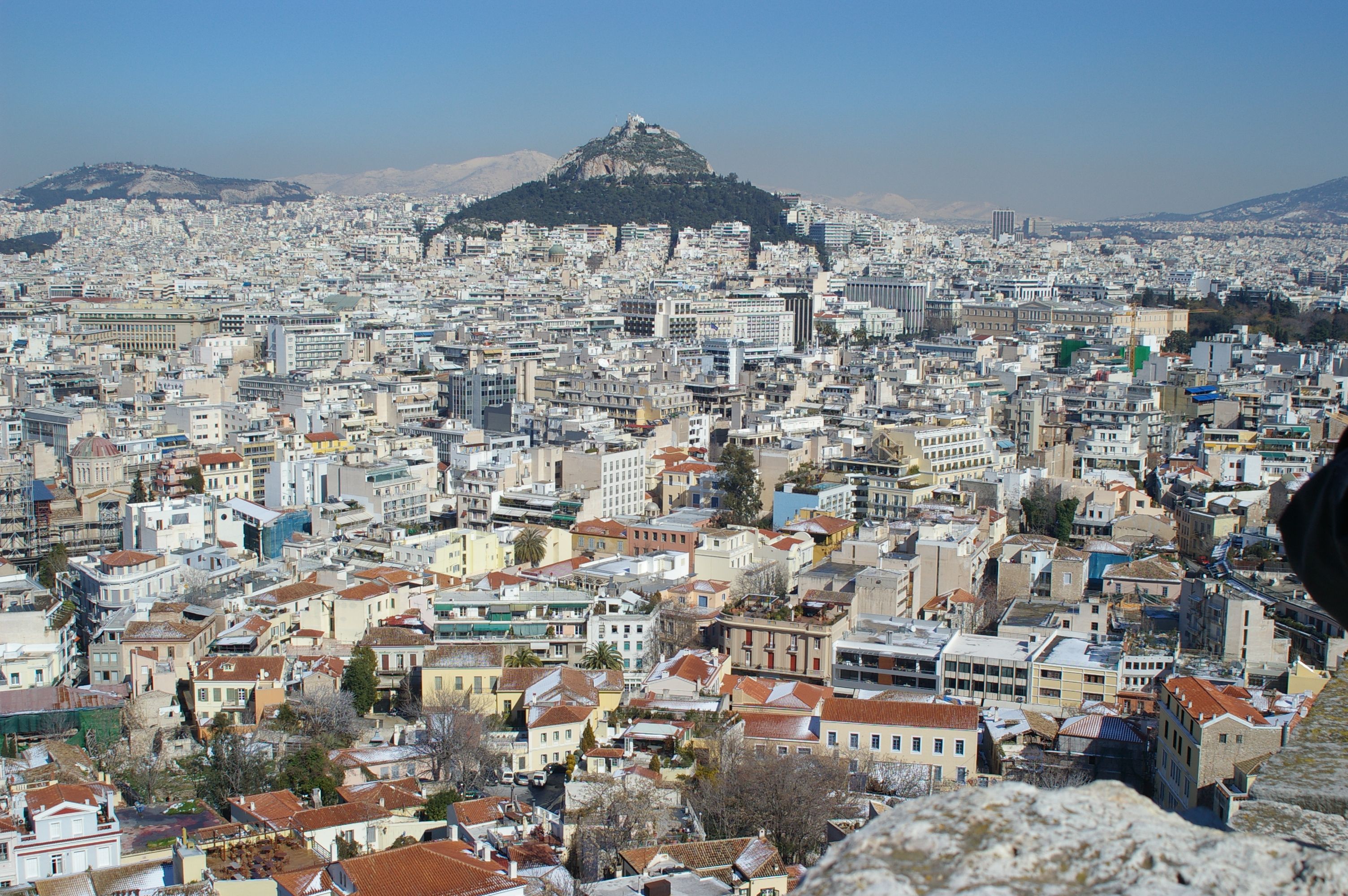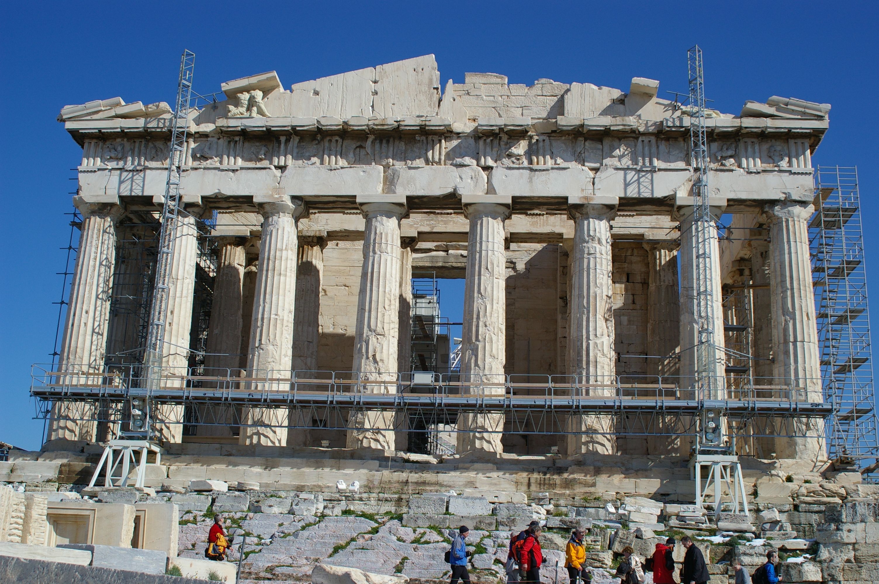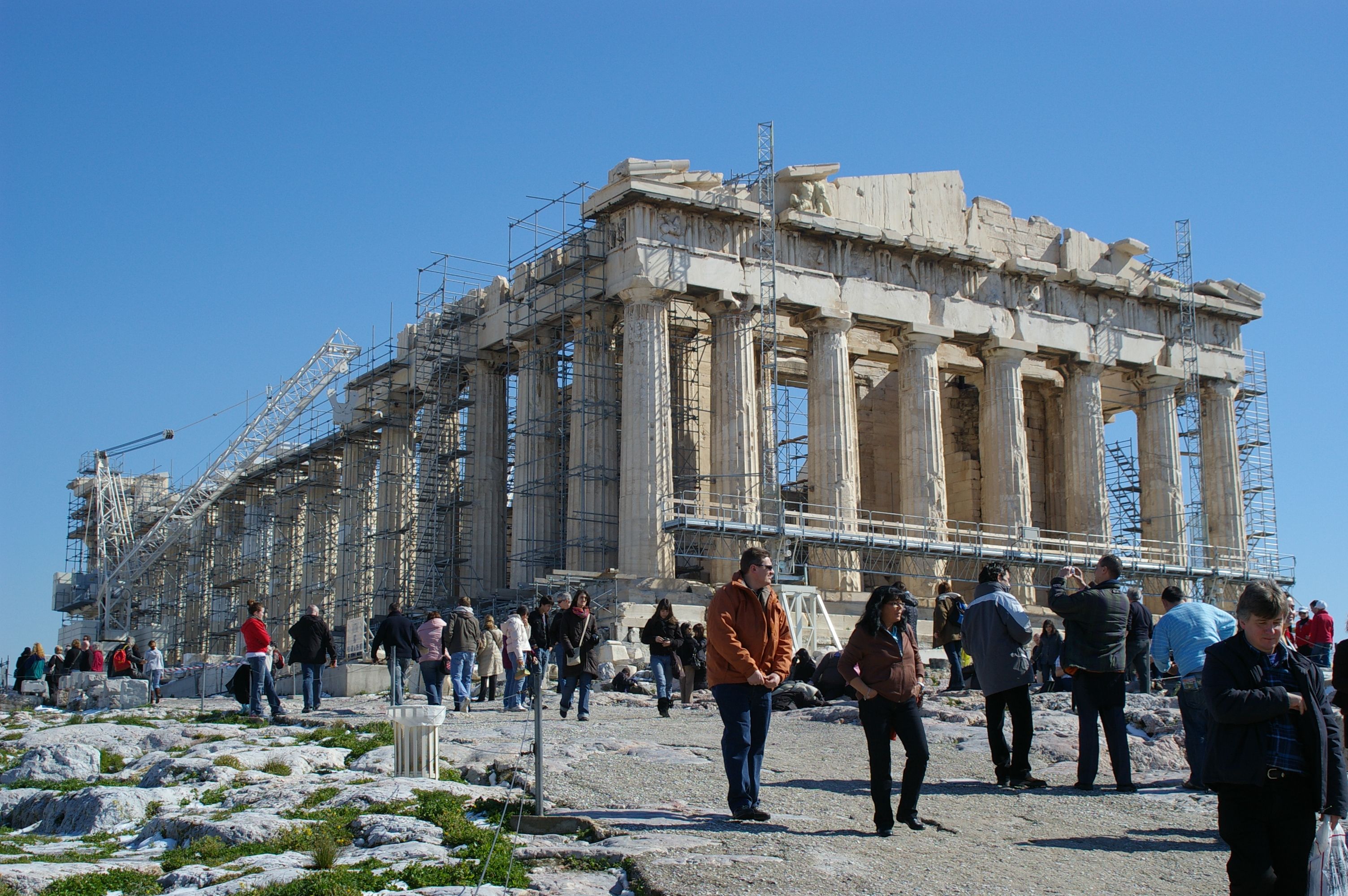Nach einer kurzen Erläuterung der griechischen Geschichte besichtigen wir die Akropolis Athens. Da es recht kühl ist haben wir ausgezeichnete Sichtverhältnise und überblicken ganz Athen.