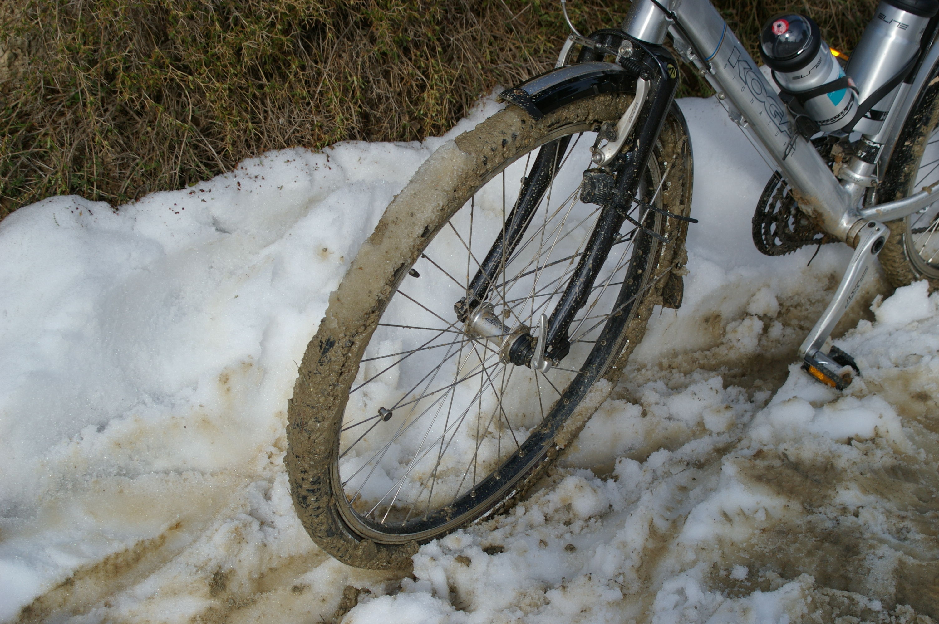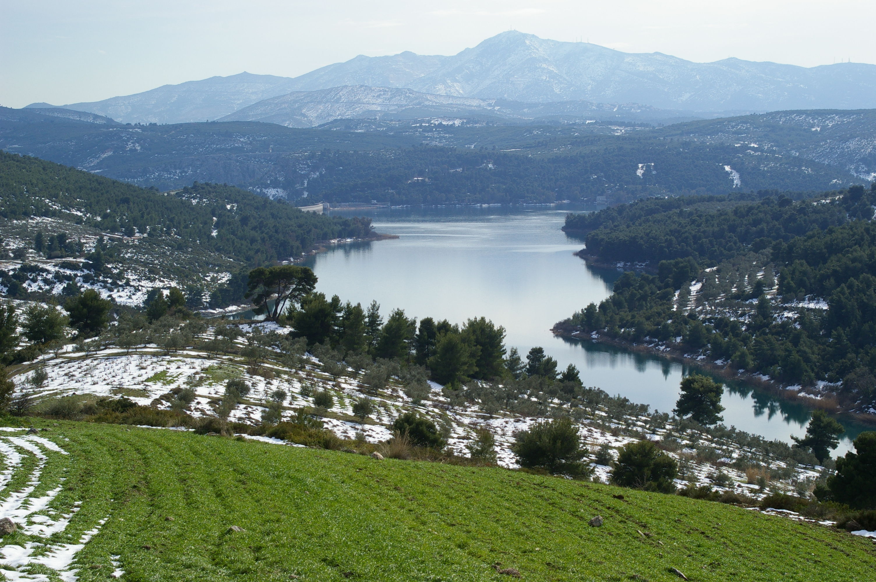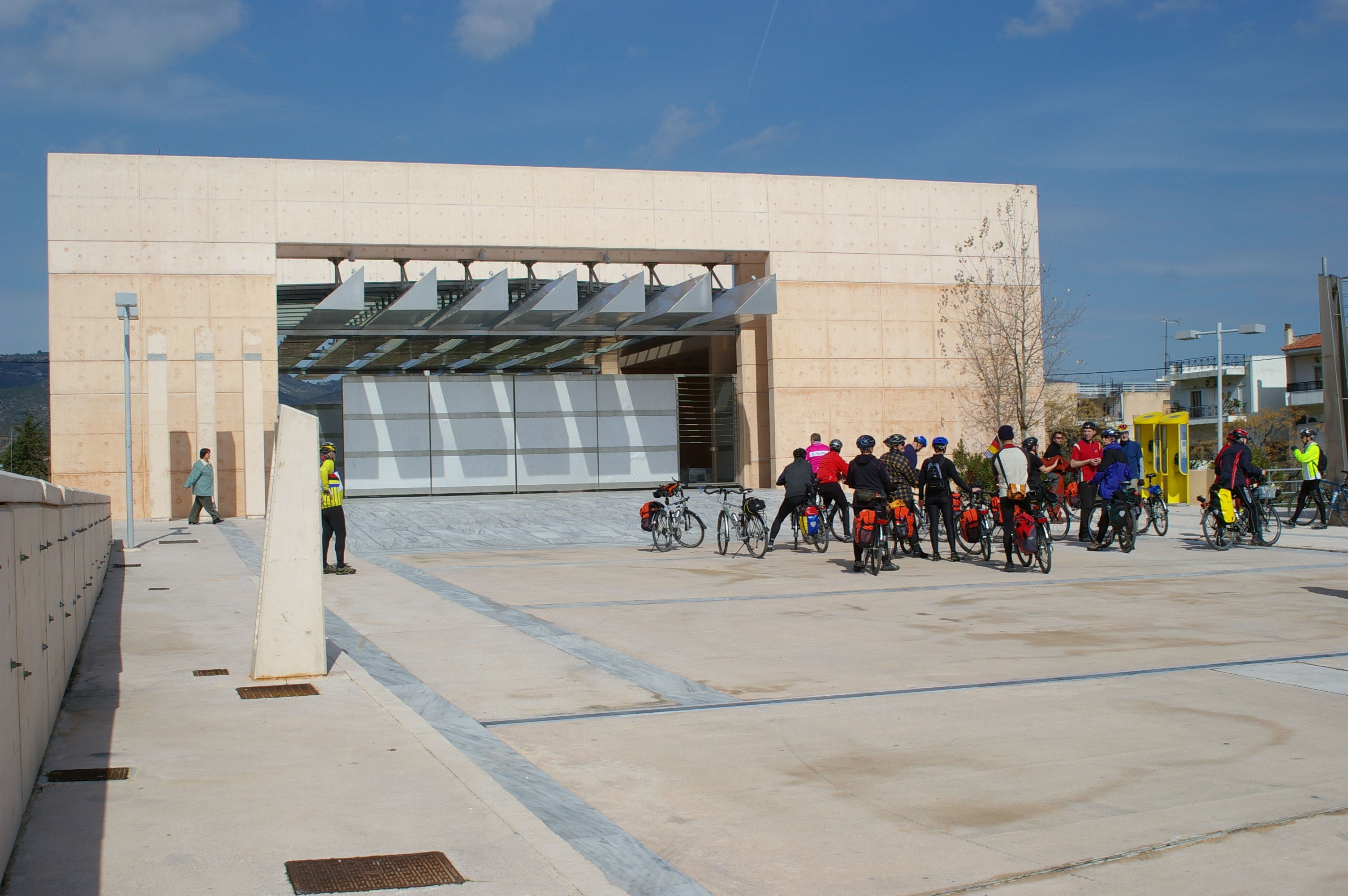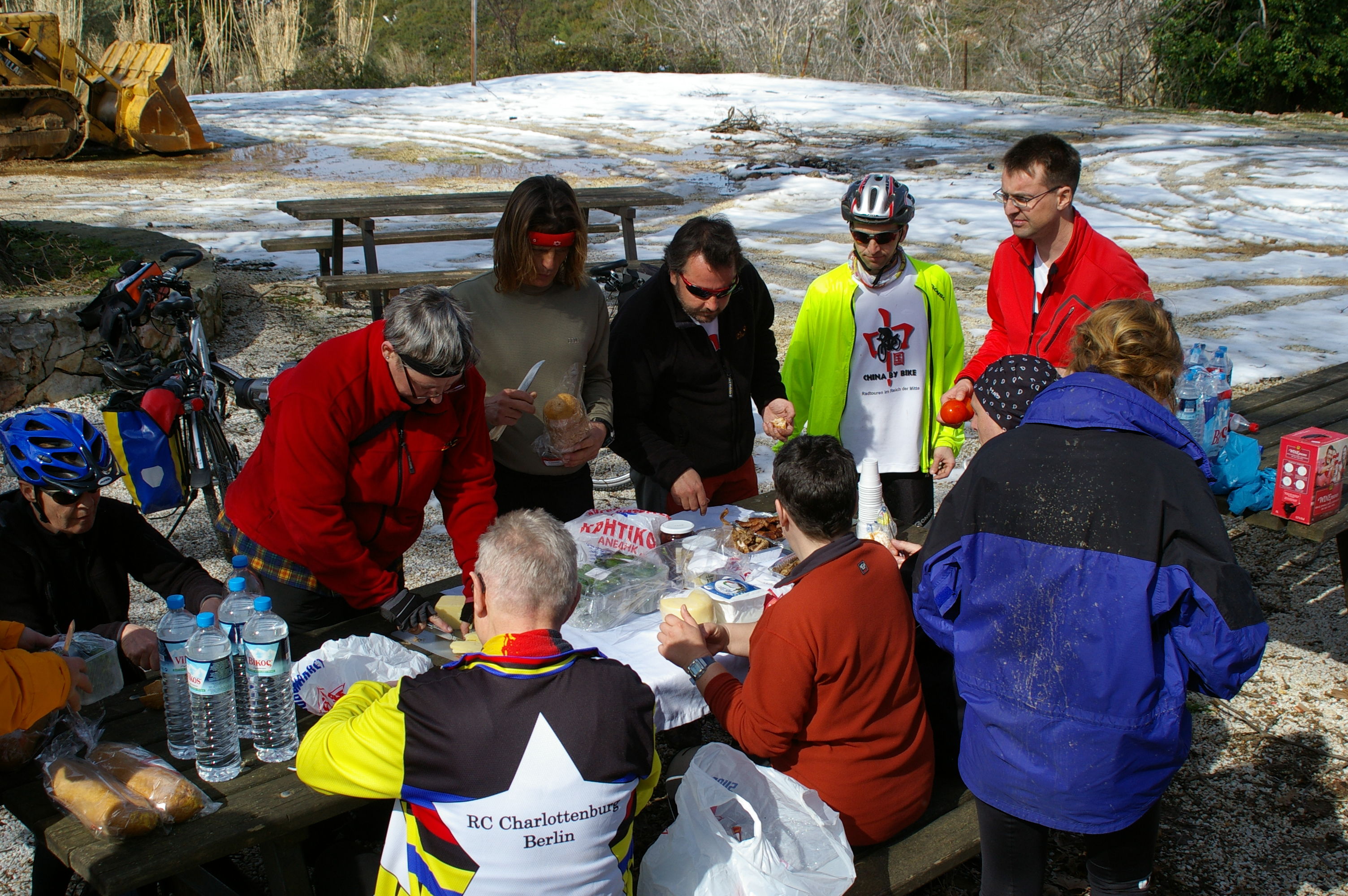 Jetzt gehts wirklich los. Wir fahren im morgentlichen Stau aus Athen in Richtung Marathon, mit dem Fahrrad nicht wirklich weit. Die Polizei fühlt sich verpflichtet uns Begleitschutz zu geben. Unsere Ziel kann über eine Hauptstrasse erreicht werden, oder über die Berge. Wir nehmen die schönere Route über die Berge, diese "Abkürzung" ist landschaftlich sehr schön, aber wegen des Wintereinbruchs des vergangenen Wochenendes ist der Weg nicht gerade fahrradgerecht. Teilweise liegt Schnee, wo kein Schnee liegt ist es richtig schön schlammig. Trotzdem ist die Stimmung gut, wir verlieren für die paar Kilometer aber sehr viel Zeit. Letzlich erreichen wir unsere Hotel in Chalkis erst bei Finsternis um ca 20:30. Gegen Ende dieser Etappe sind alle richtig müde, Tom stellt beim Abendessen fest, dass diese Etappe zu den anstrengenden Etappen der gesamten Tour zu zählen sein wird.