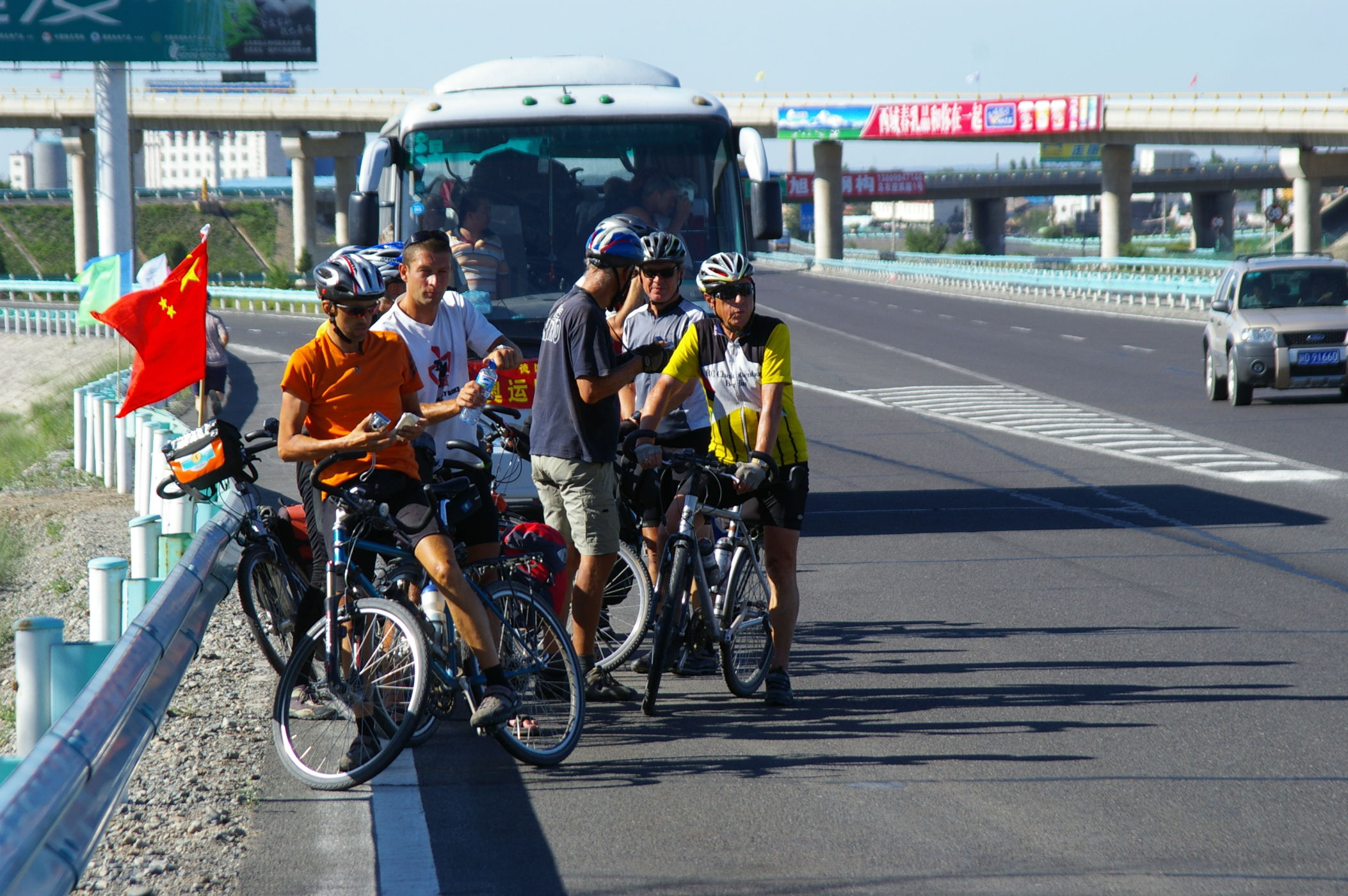 Mit Gegenwind fahren wir dem verdienten Ruhetag entgegen. Nach zwei kurzen Pausen erreichen wir die Großstadt Urumji. Eine hochmoderne Stadt mit tollen Gebäuden und voller Leben erwartet uns. Da am Dienstag das olympische Feuer hier durchzieht ist schon alles entsprechend geschmückt. Zahlreiche Fahnen, auch entlang der Autobahn, Spruchbänder und viel Blumenschmuck zeigen uns, wie wichtig für China diese olympischen Spiele sind. Das Land will sich im besten Licht zeigen, und wenn man genau hinsieht hat China wirklich eine tolle Entwicklung in den letzten Jahren hinter sich gebracht und kann Stolz sein auf das schon bisher erreichte. Die Emsigkeit der Chinesen hat dieses Land in rasendem Tempo zu einem wohlhabenden Staat gemacht, wenn man einen Vergleich mit z.B. Griechenland zieht, dann sieht es im guten alten Europa nicht sehr gut aus. Am Abend fahren wir mit Taxis in die Stadt zum Essen zu dem typischen Nachtmarkt. Das ist wirklich ein Erlebniss. Hier gibt es köstliche Sachen in Hülle und Fülle.