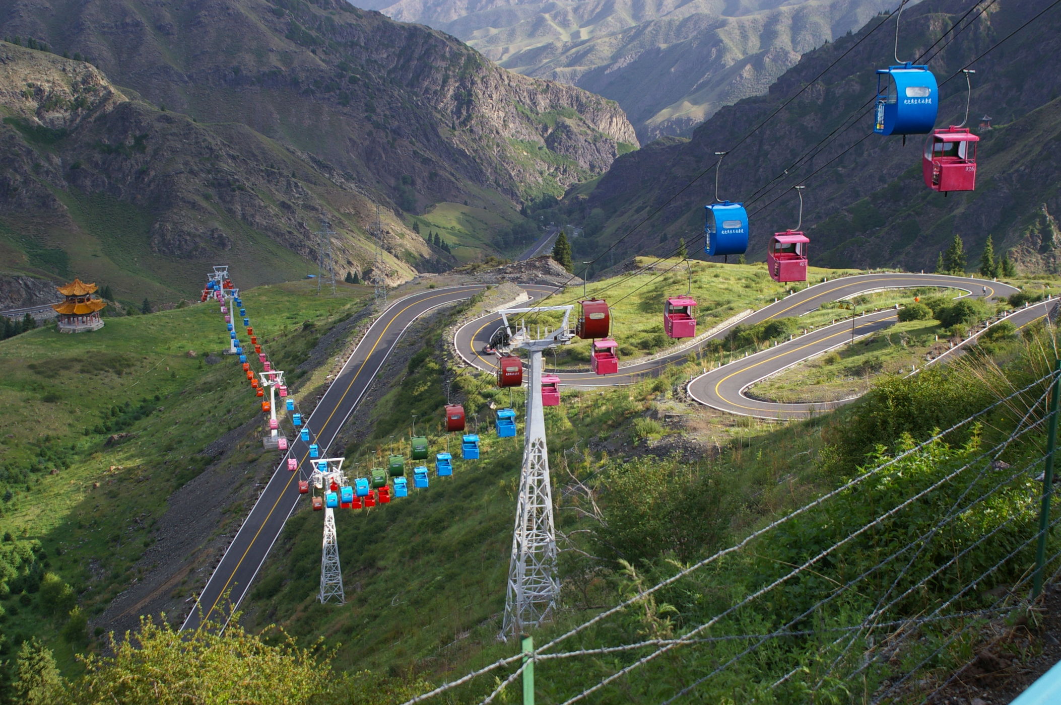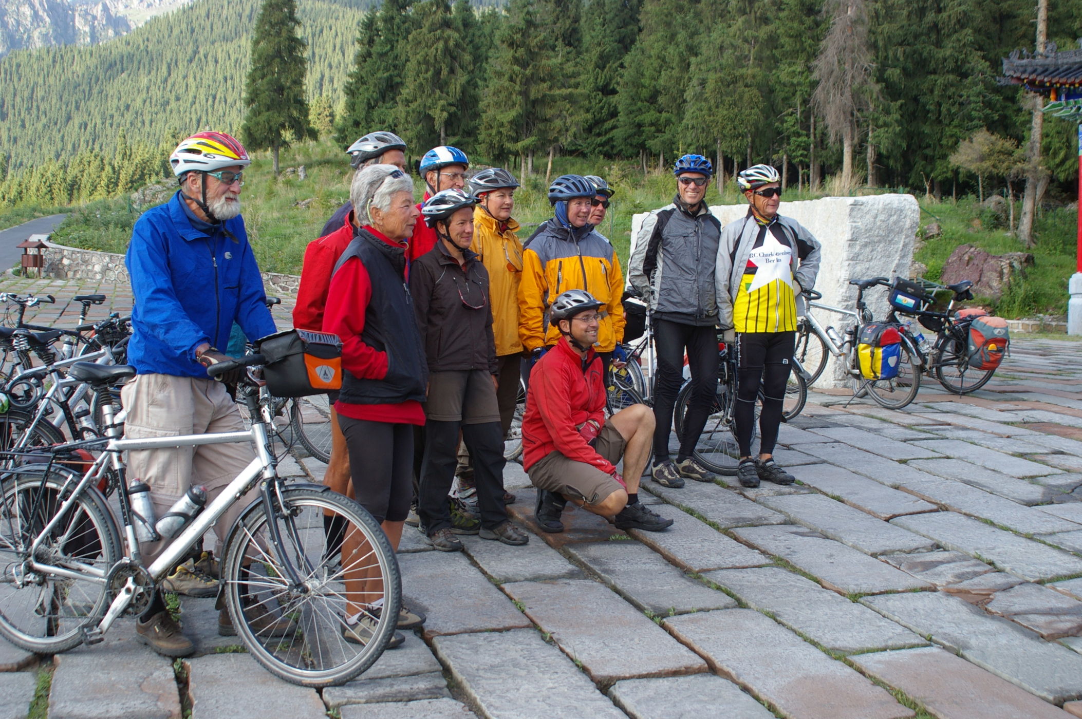 Morgens am Himmelsee in 2000 Metern Höhe ist es nach einer verregneten Nacht recht kalt. Wir starten den Radtag mit einer langen Abfahrt wieder ins Tal hinunter. Der Himmelsee ist ein richtiges Tourismusgebiet, es sollte das gesamte Gebiet unter Naturschutz stehen, aber die notwendige Infrastruktur wird recht gefühllos in die Landschaft betoniert. Unterwegs sehen wir neben einer langen Baustelle und einer 60 km langen Autobahnfahrt nichts aufregendes. Zu Mittag kehren wir ein ein kleines Lokal ein, die Frau ist sehr nett und kocht frische Nudeln mit Gemüse und Fleisch. Alles zusammen mit Getränken kostet nicht einmal 20 Euro. Im Zielort Jimusar haben wir wieder ein schönes Hotel gebucht und es gibt wieder ein gutes Essen direkt im Gewühl der Menschen.