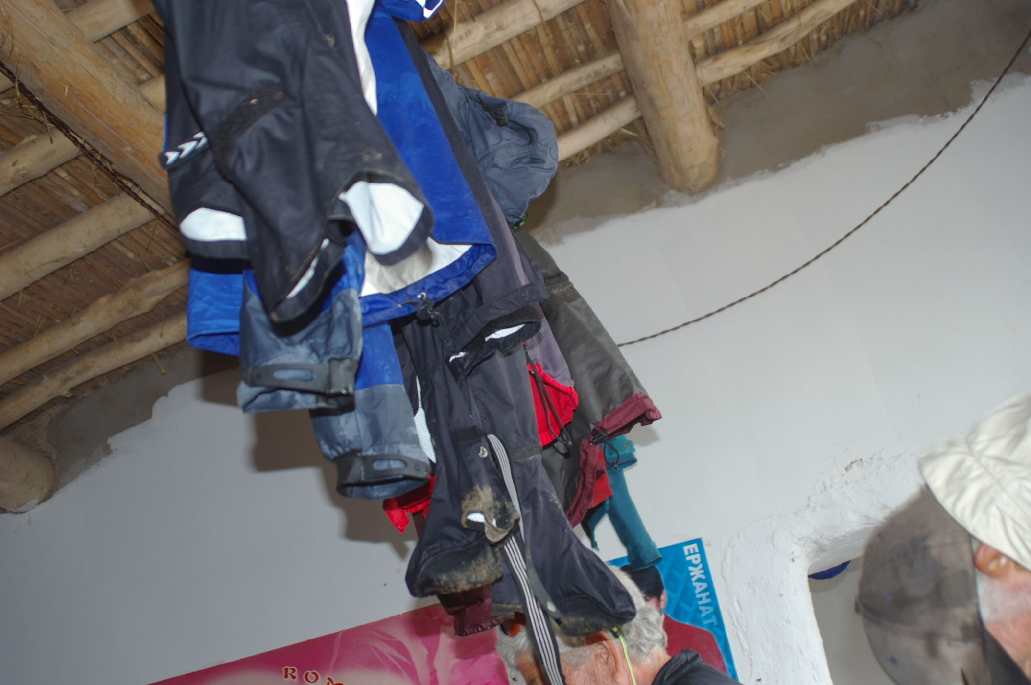 Mit dem Wind fahren wir den Großteil der Strecke. Aber am Schluss dreht sich die Route in den Wind und Regen und Hagen kommen auf. Als wir den Ort erreichen sammeln wir uns in einem kleinen Gasthaus. Es ist lustig zu beobachten, mit welchen Worten die einzelnen eintreffen. Von "Das war die Hölle"(Dieter) über "Ich bin durch einen Windkanal gefahren" (Rene) bis zu simplen Sprüchen ("So ein Scheiß") reicht die Palette der Kommentare.