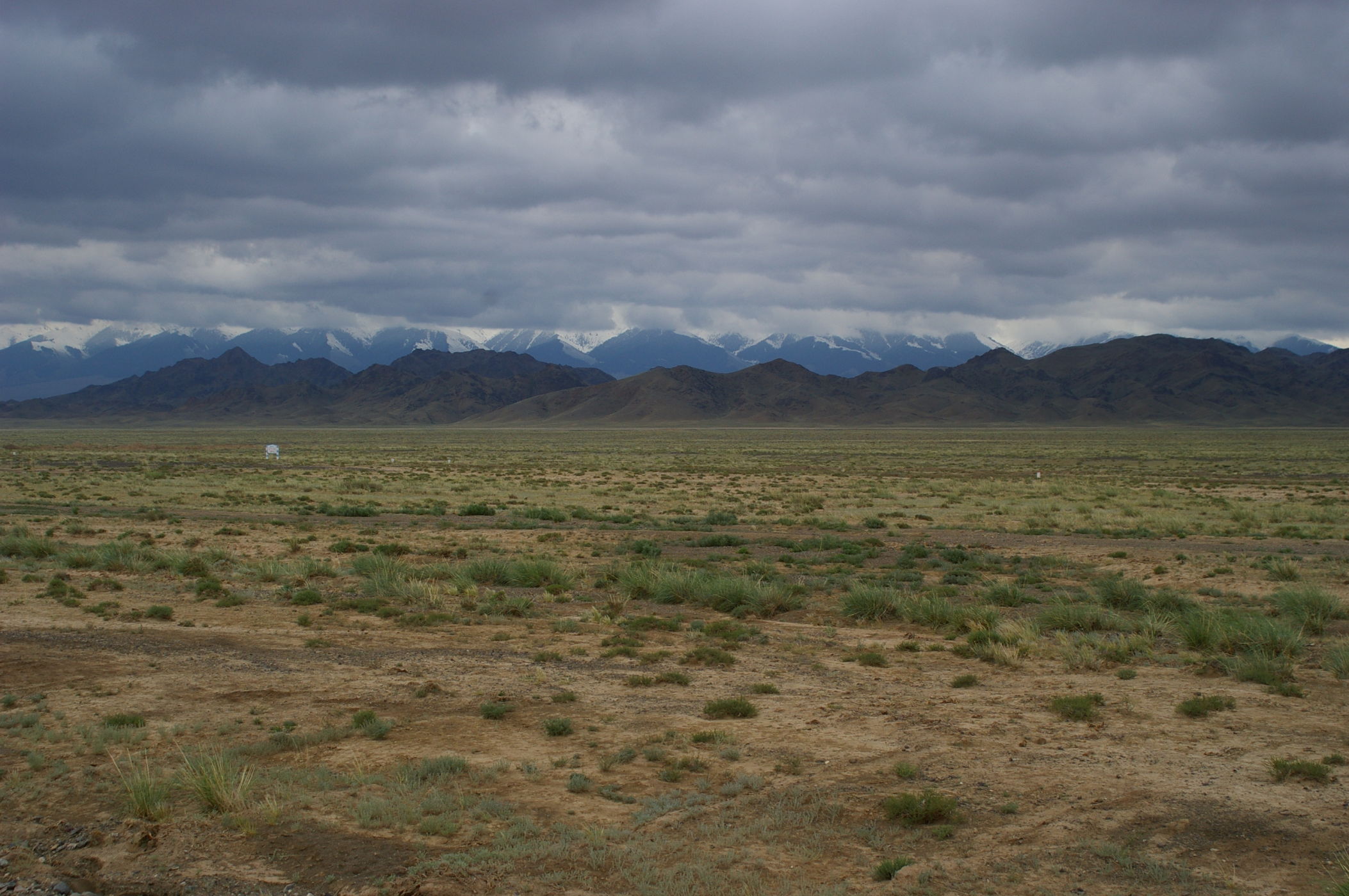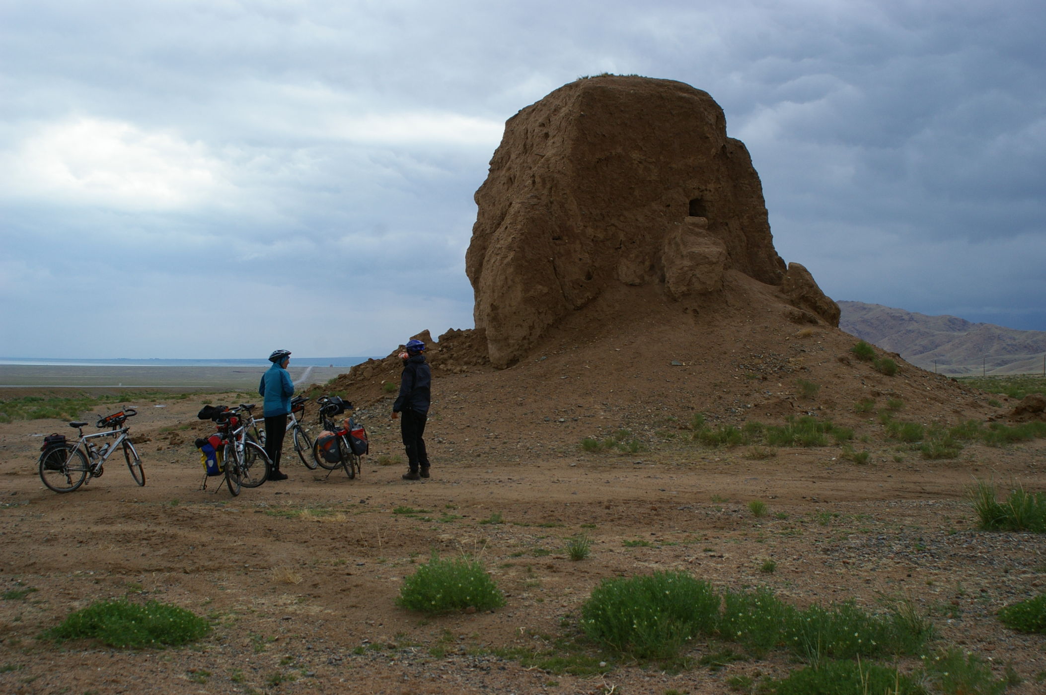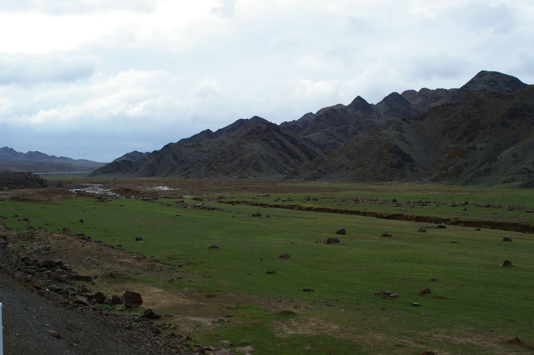Nach der Nacht in dem Privatquartier, in der wir wie Sardinen geschlichtet geschlafen haben, begrüßt uns Kälte und Regen. Es hat nur 6 Grad und es regnet unfreundlich. In dem kleinen Gasthaus kriegen wir eine gute heisse Suppe zum Frühstück, das gibt die Energie in die Kälte hinaus zu gehen und die Strecke in Angriff zu nehmen. Es geht auf 2200 m Höhe hinauf, der Regen lässt aber zum Glück nach so dass wir fast bis ans Ziel im Trockenen fahren. Der erste Teil ist ständig leicht bergauf bis auf den höchsten Punkt, dannach gibt es eine 60 km lange Abfahrt. Auch heute haben wir RÜckenwind, so das wir die 120 km bereits zu Mittag hinter uns gebracht haben. Interessant war auch, dass es auf der ganzen Strecke nicht ein einziges Dorf gab in dem wir etwas Einkaufen und Essen hätten können.
