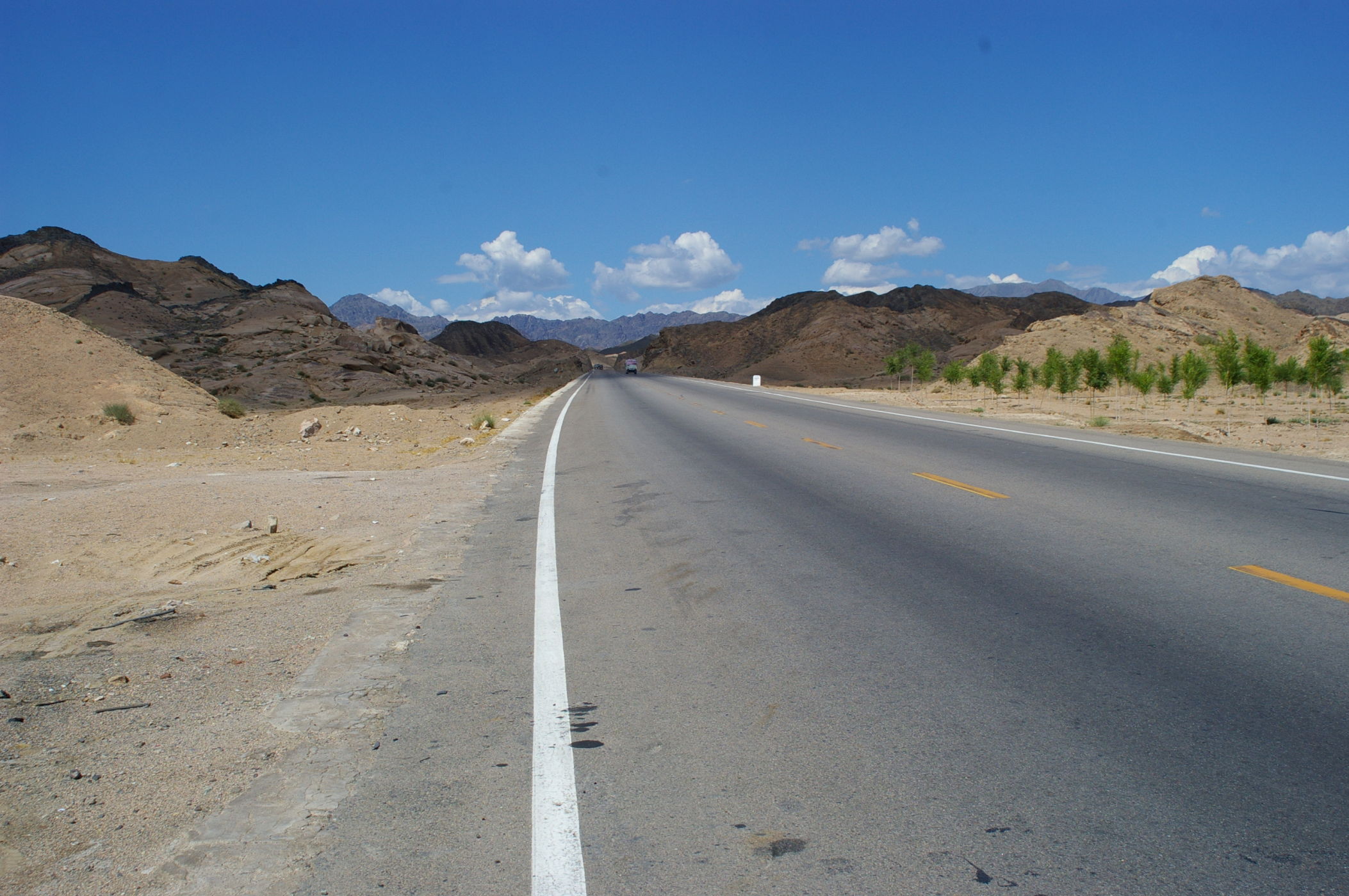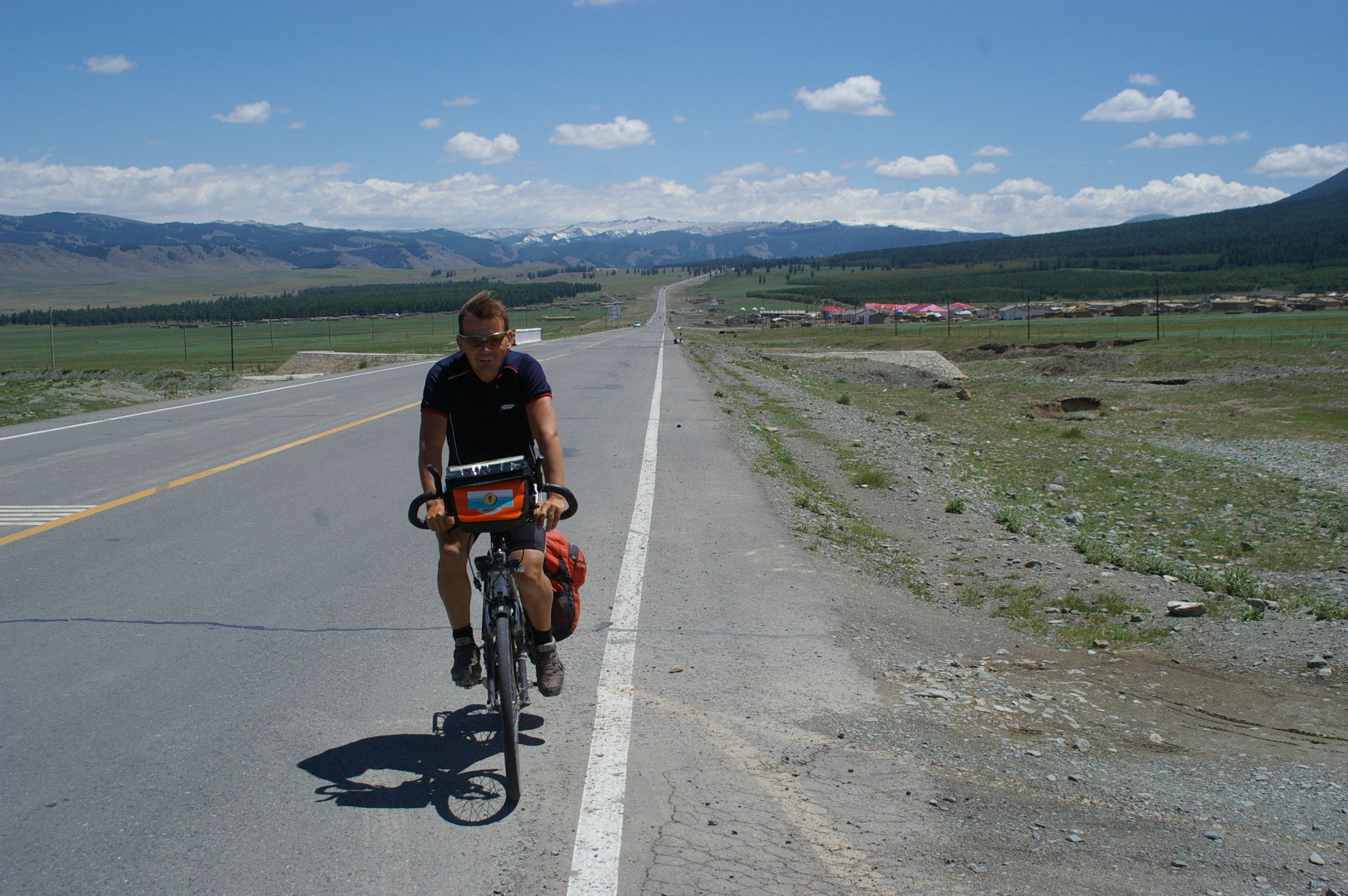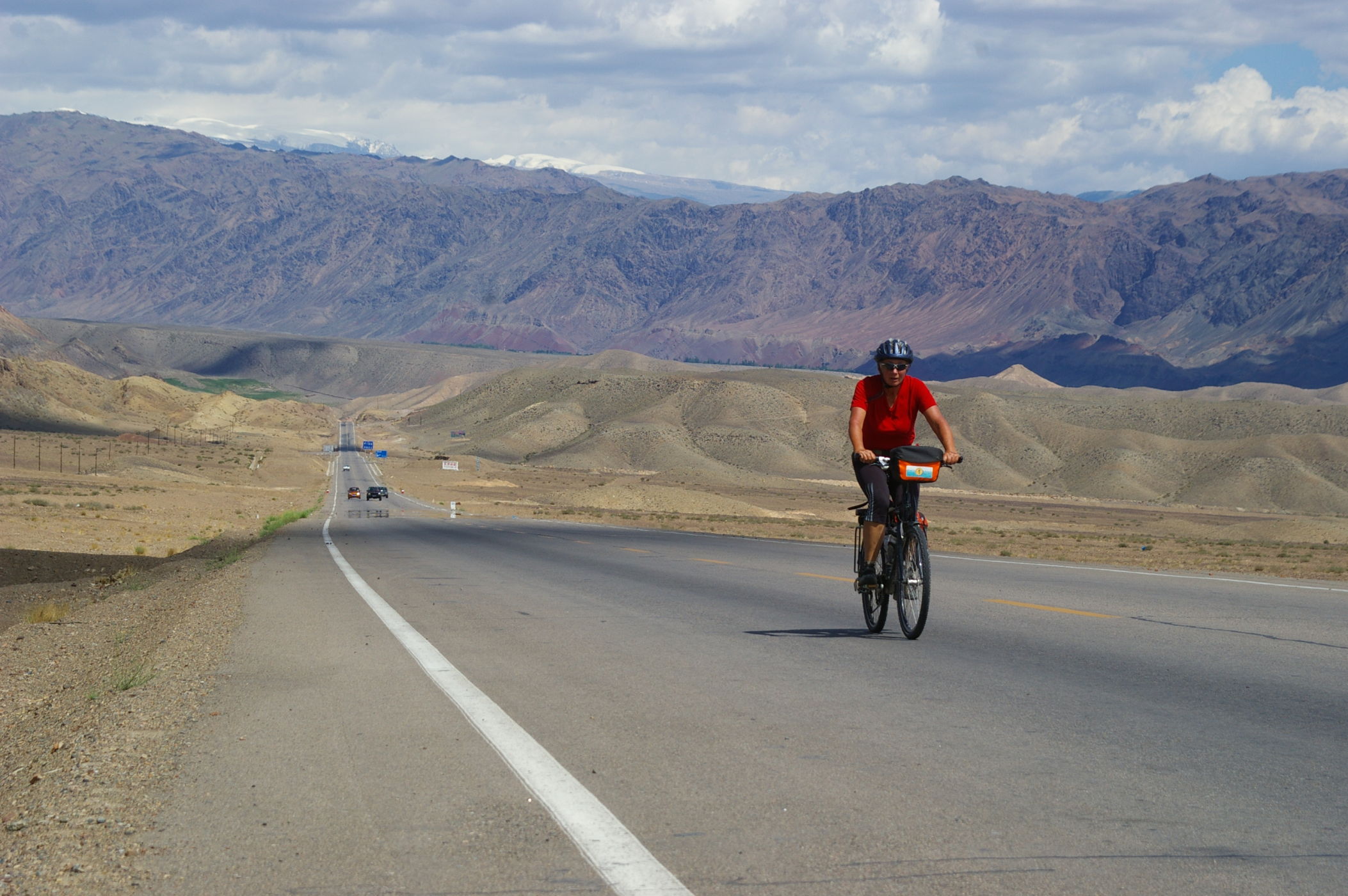 Nun geht es wieder zurück an die Hauptstrecke der Seidenstrasse in die Stadt Hami. Der Weg über die Berge hat sich gelohnt, die Landschaft war großartig und wegen der Höhe waren die Temperaturen nicht so heiß. Der heutige Radtag ist geprägt von einer grossen Abfahrt von 2200 m auf 750 m Seehöhe. Die Berge am Rander der Wüste Gobi sind kark aber toll anzusehen. Auch heute zeigt sich China von verschiedenen Seiten: Einerseits kleine Dörfer in lehmbauweise wie aus dem Mittelalter und andererseits die Stadt Hami, die sich sehr modern und fortschrittlich zeigt. Auch hier sieht man, China ist ein Land des Umbruchs und befindet sich auf dem Weg zum allgemeinen Wohlstand.