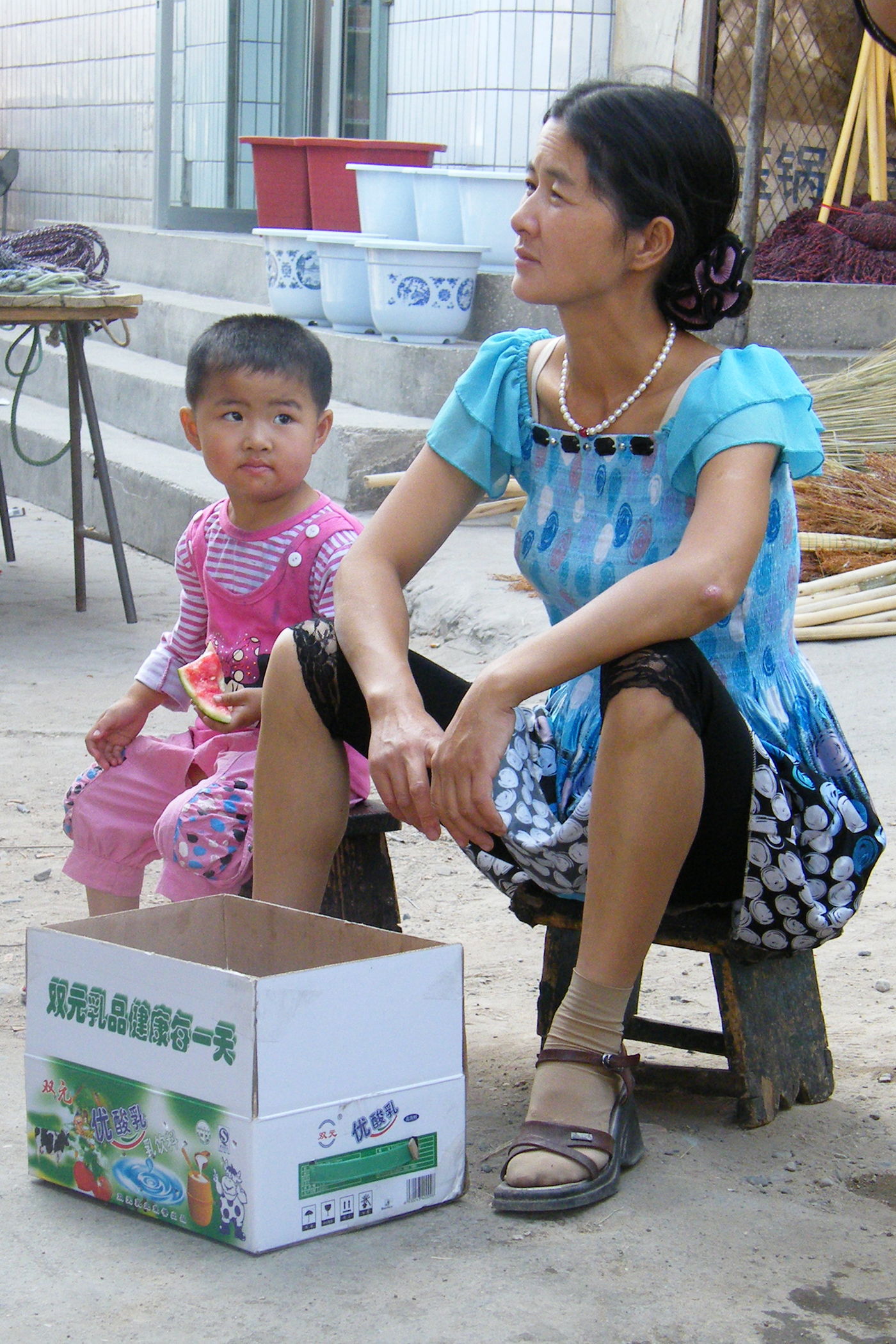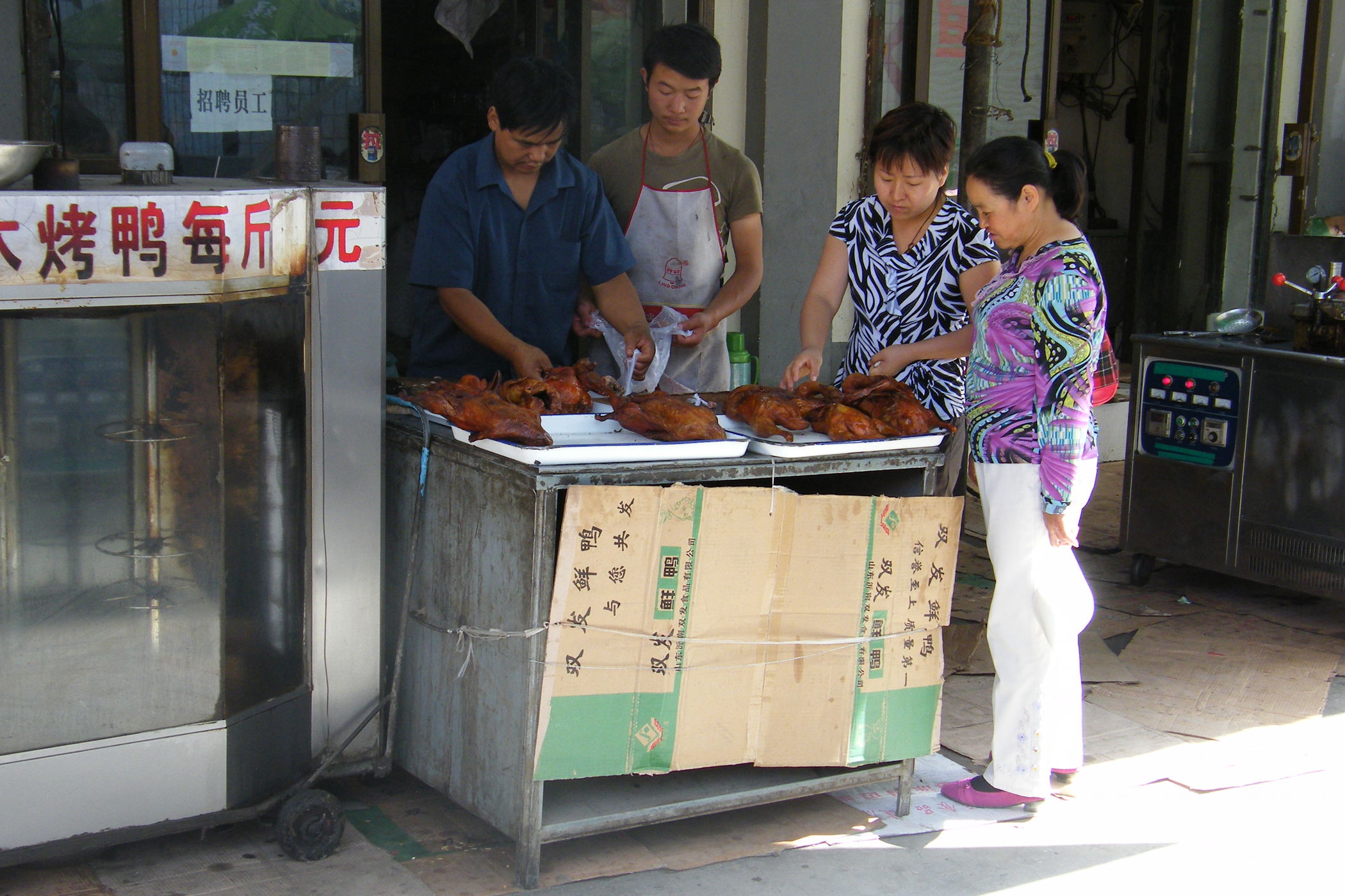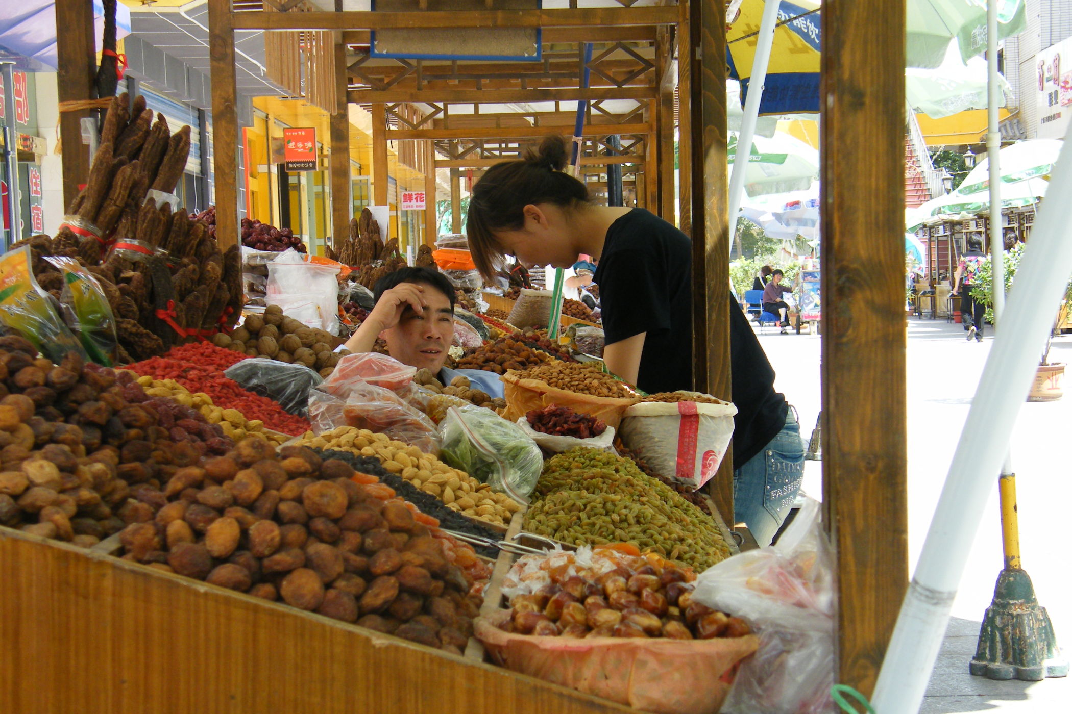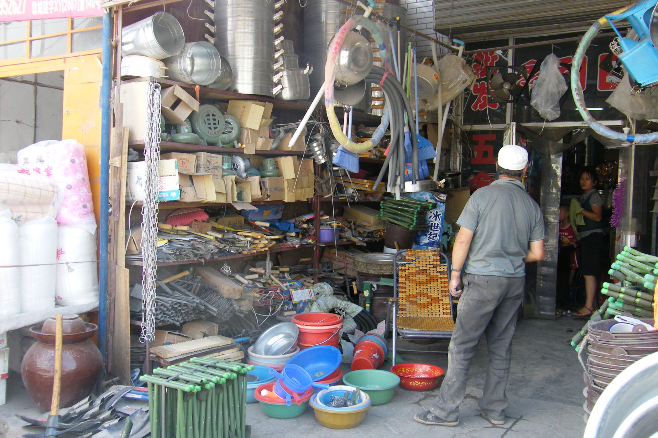 Wie dem aufmerksamen Betrachter meiner Webseite sicher schon aufgefallen ist sind die Fotos in letzter Zeit von schlechter Qualität. Der Grund ist, dass das Objektiv meiner schönen Spiegelreflexkamera den Geist aufgegeben hat. Es hat den systematischen Rütteltest in der Lenkertasche offensichtlich nicht überlebt, zu Beginn der Zerstörung waren die Bilder unscharf und am Ende haben lose Teile im Objektiv das Fotografieren unmöglich gemacht. Am heutigen Ruhetag hab ich mir eine neue Kompaktkamera gekauft und hoffe das ich nun bis zum Ende der Reise ordentliche Bilder machen kann. Die technische Qualität der Bilder ist zwar nicht ganz so gut wie die der Pentax-SLR, aber was soll's. Nach dem Kauf gab ein Bummel durch die Stadt Dunhuang Gelegenheit ein paar Fotos zu machen.