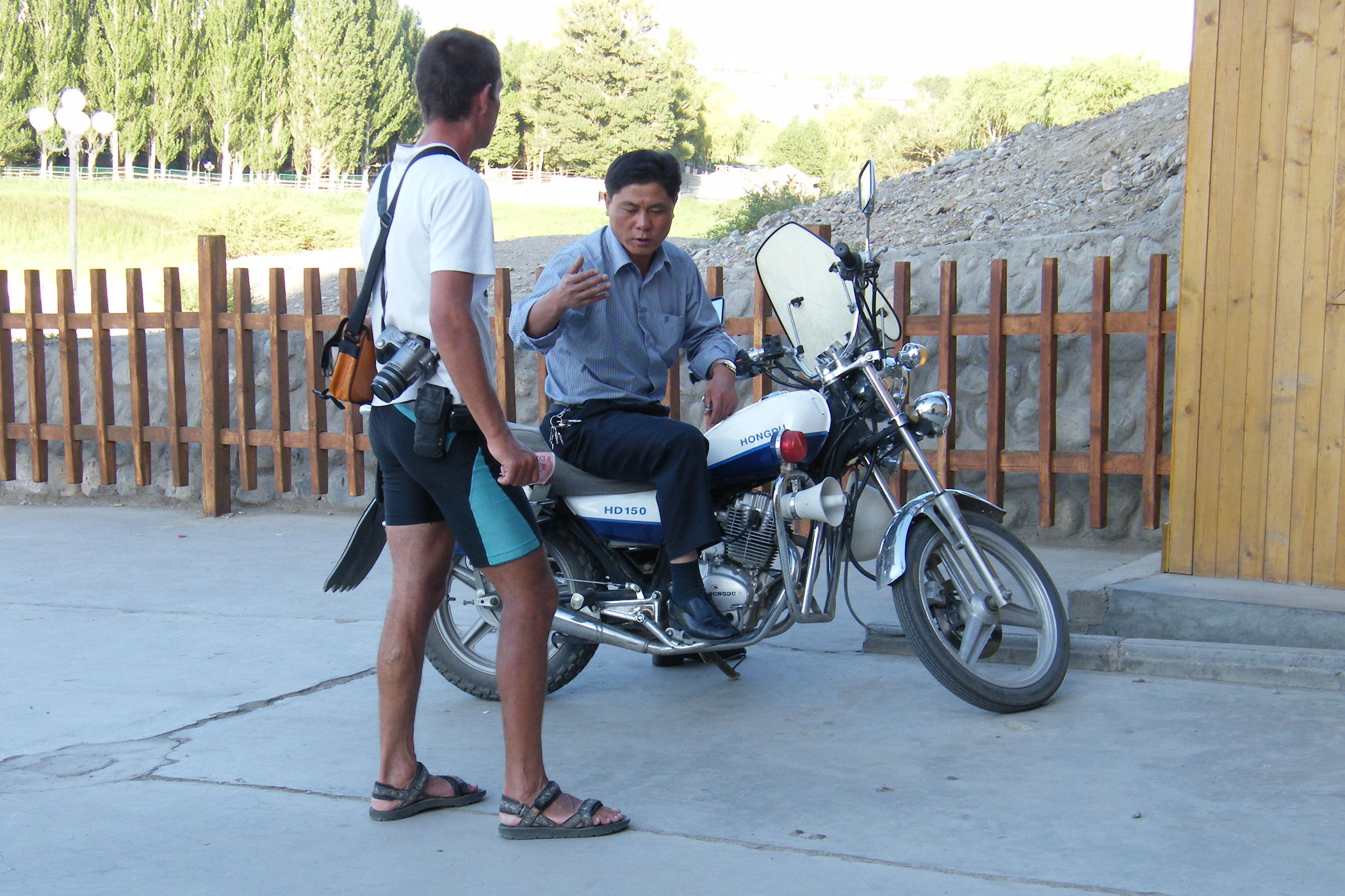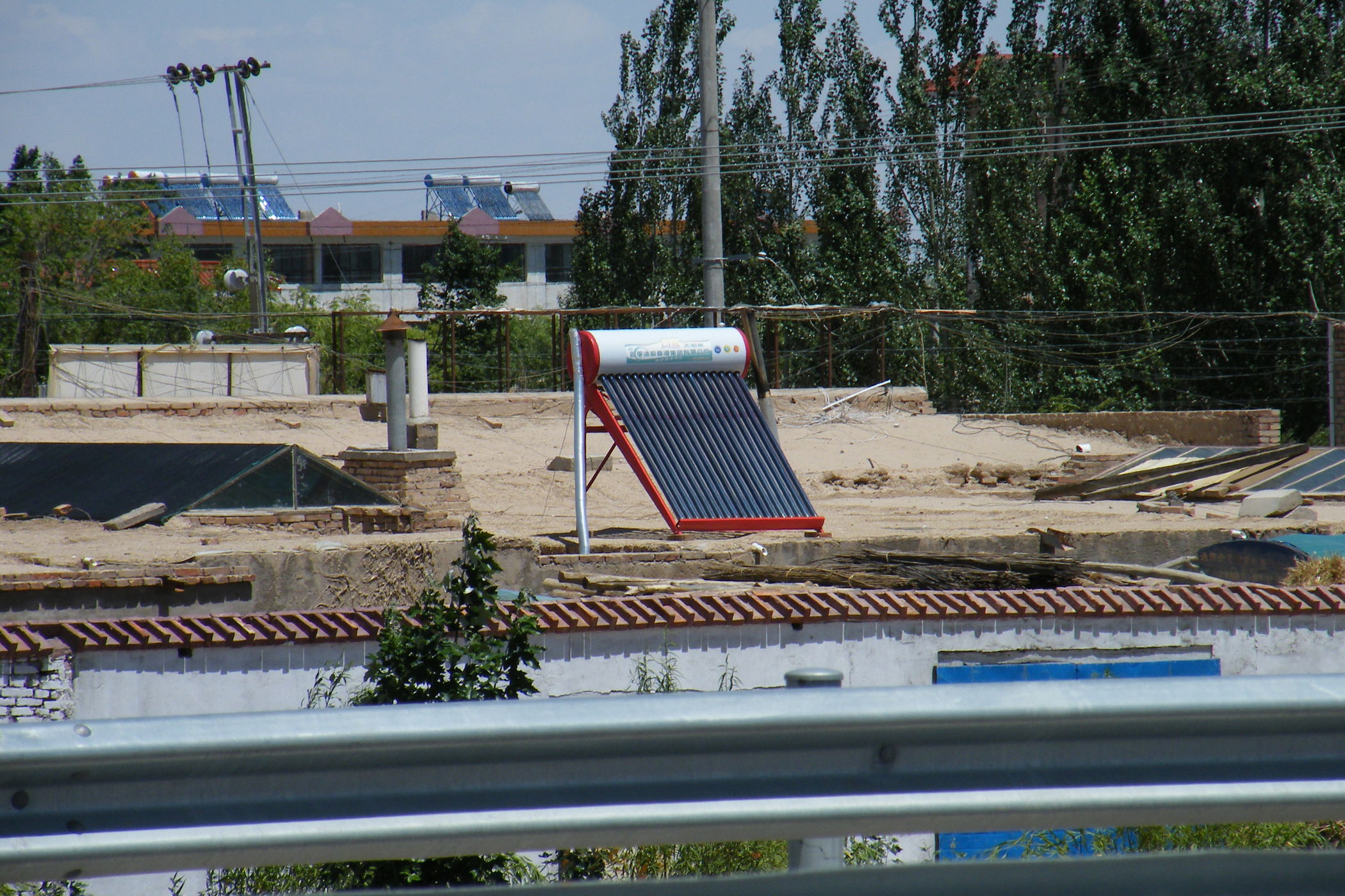 Ein weitere Tag durch die Wüste, heute aber mit unangenehmen Gegenwind, der uns die gesamte Strecke begleitet. Es scheint eine windige Gegend zu sein, weil sonst hätte man nicht hier eine sehr grosse Windkraftanlage errichtet. Hunderte Windräder erzeugen hier Strom, auch hier in China werden Zukunftstechnologien erprobt und auch gleich in grossen Stil gebaut. Auch sehen wir sehr viele Solarkollektoren zur Warmwasserbereitung und Solarzellen für die Stromerzeugung.