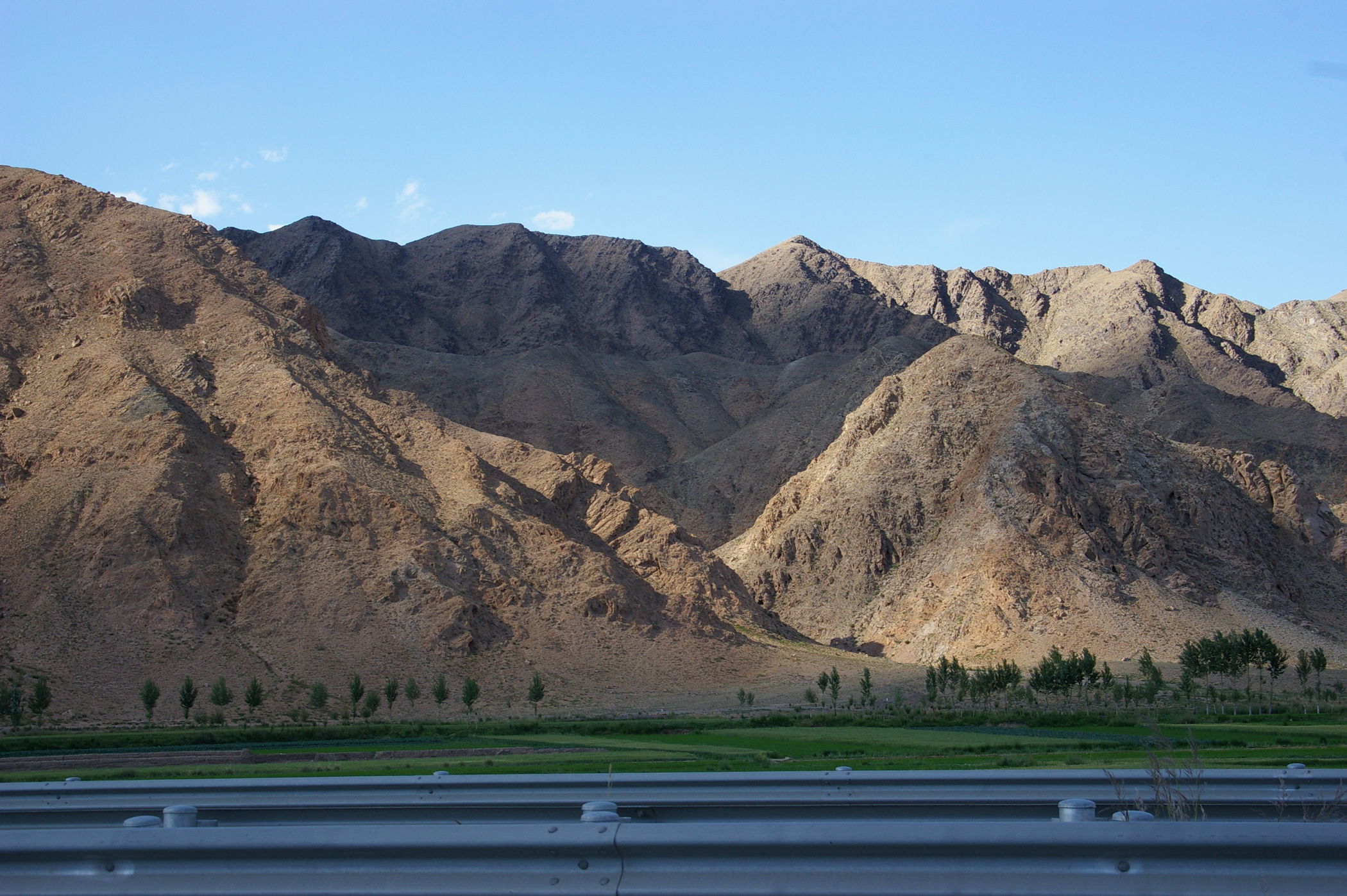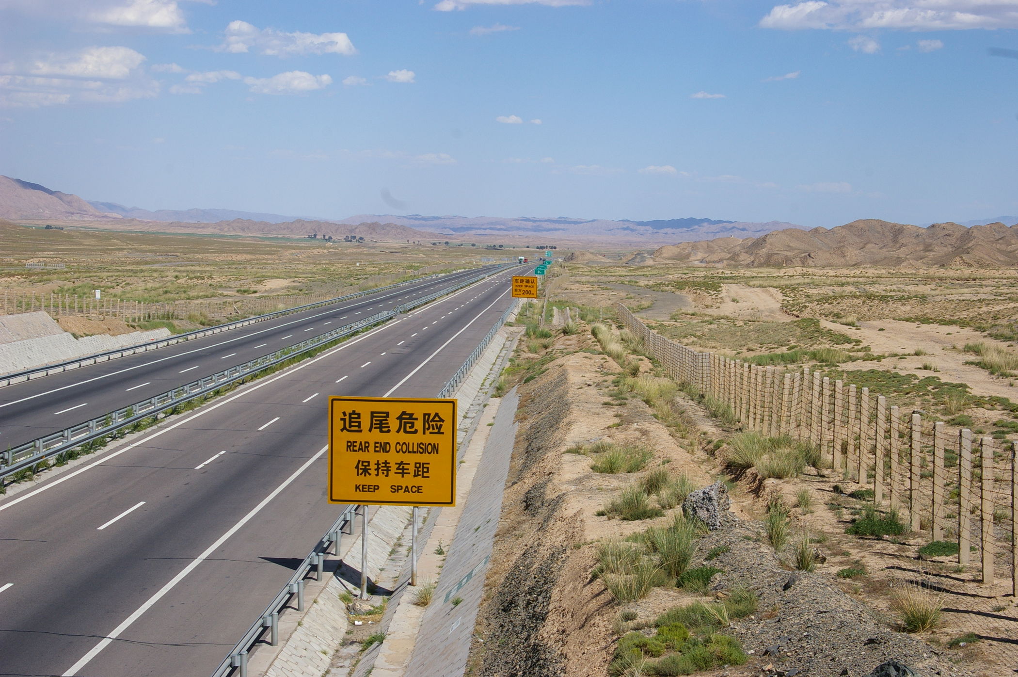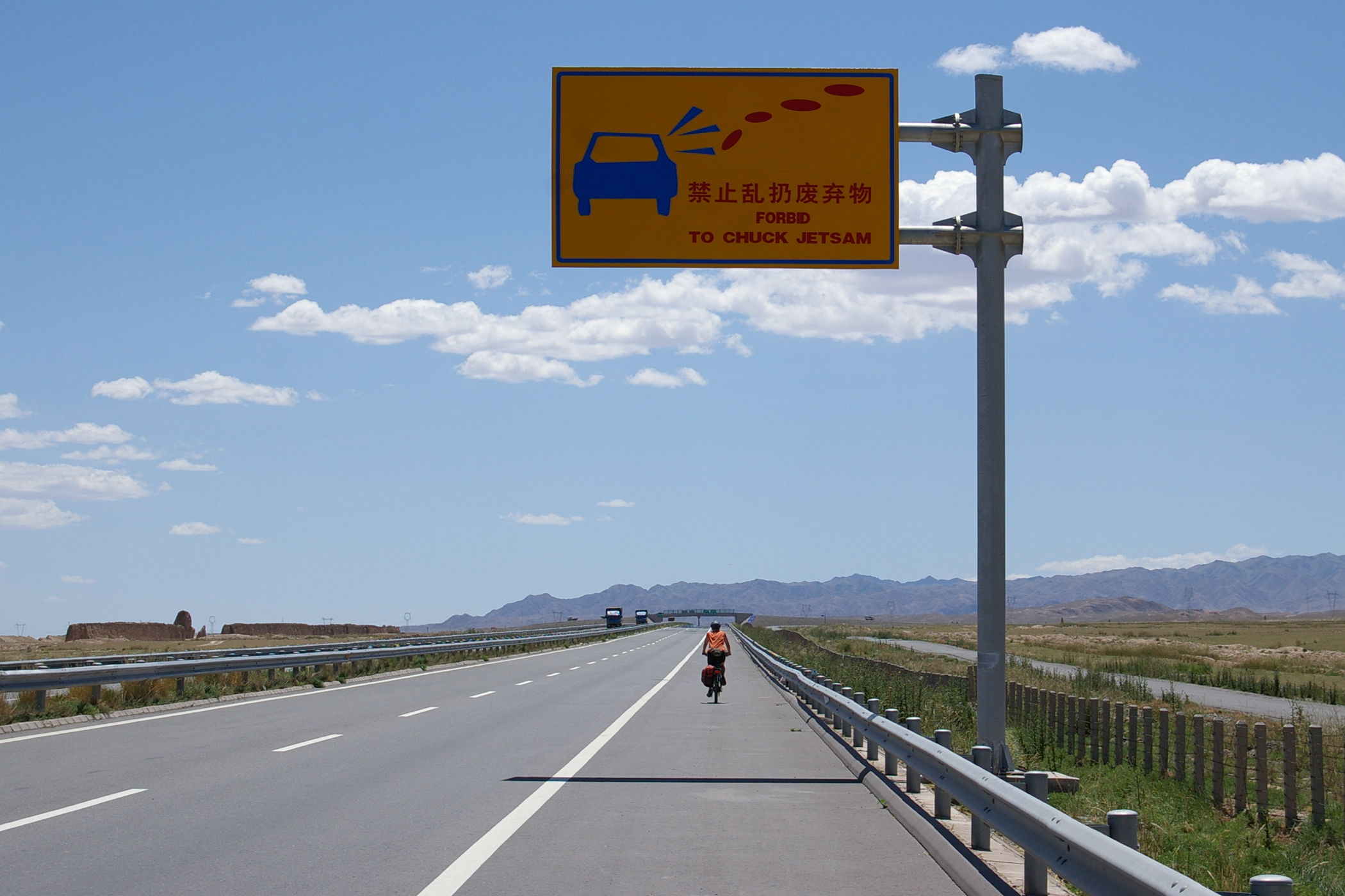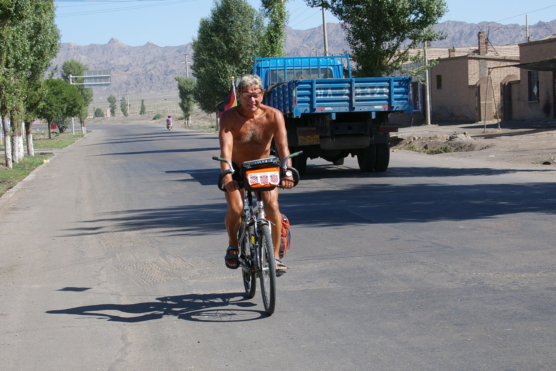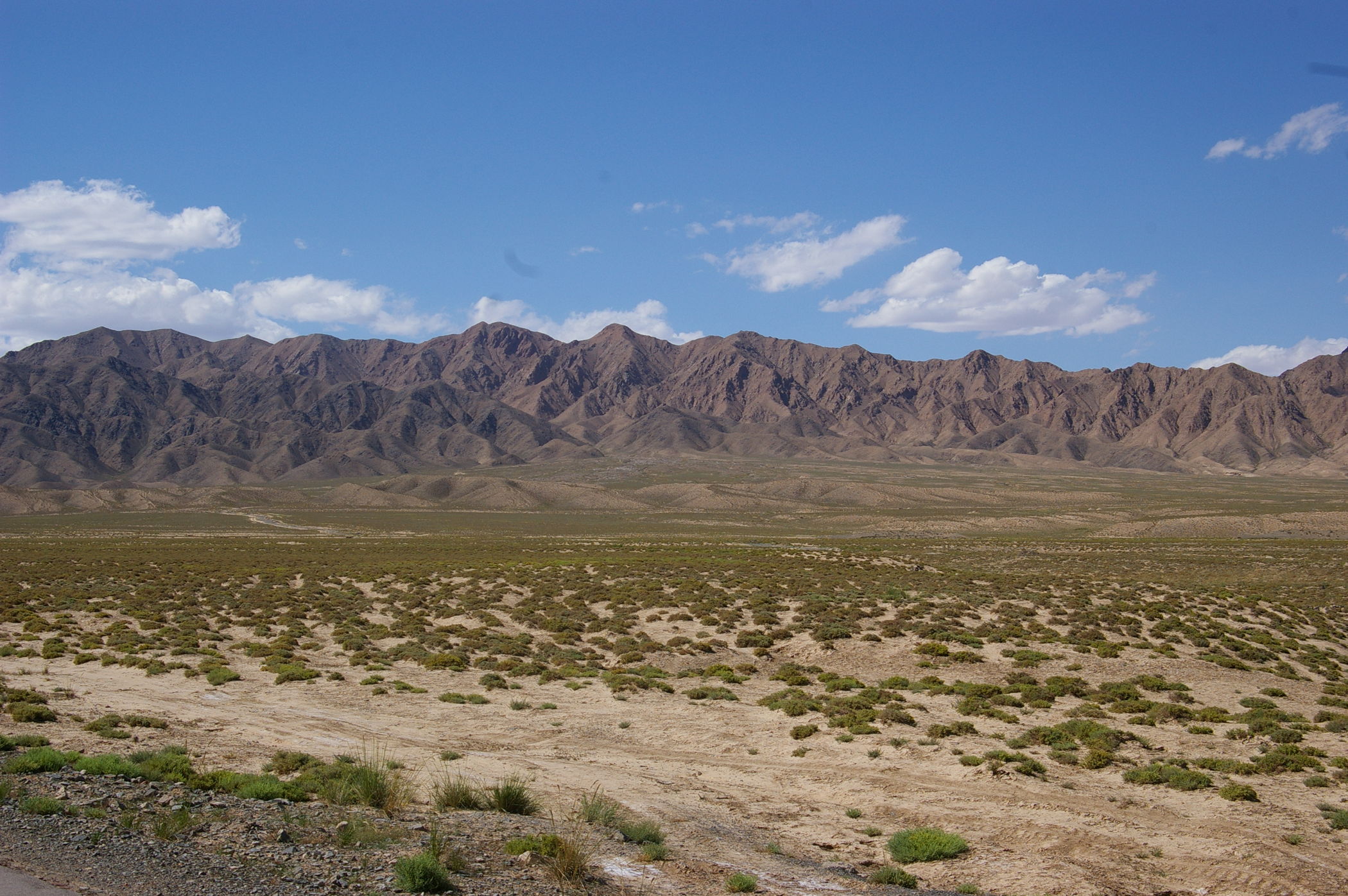 Die heutige Etappe führt uns über weite Strecken entlang der chinesischen Mauer. Genau genommen sind es nur die Überreste der Mauer, angesichts des Mythos um dieses Bauwerk ist das trotzdem recht beeindruckend. Die in regelmäßigen Abständen errichtetet Wachtürme sind teilweise noch ganz gut erhalten. Diese hatten aus militärischer Sicht größere Bedeutung als die Mauer selbst, denn es stellt eine Präsenz von ausreichender Stärke sicher und sie dienten auch der Informationsübertragung von Turm zu Turm. Die Fahrt selbst führt durch wüstenhaftes Gebiet, landschaftlich sehr schön und praktisch unbewohnt.