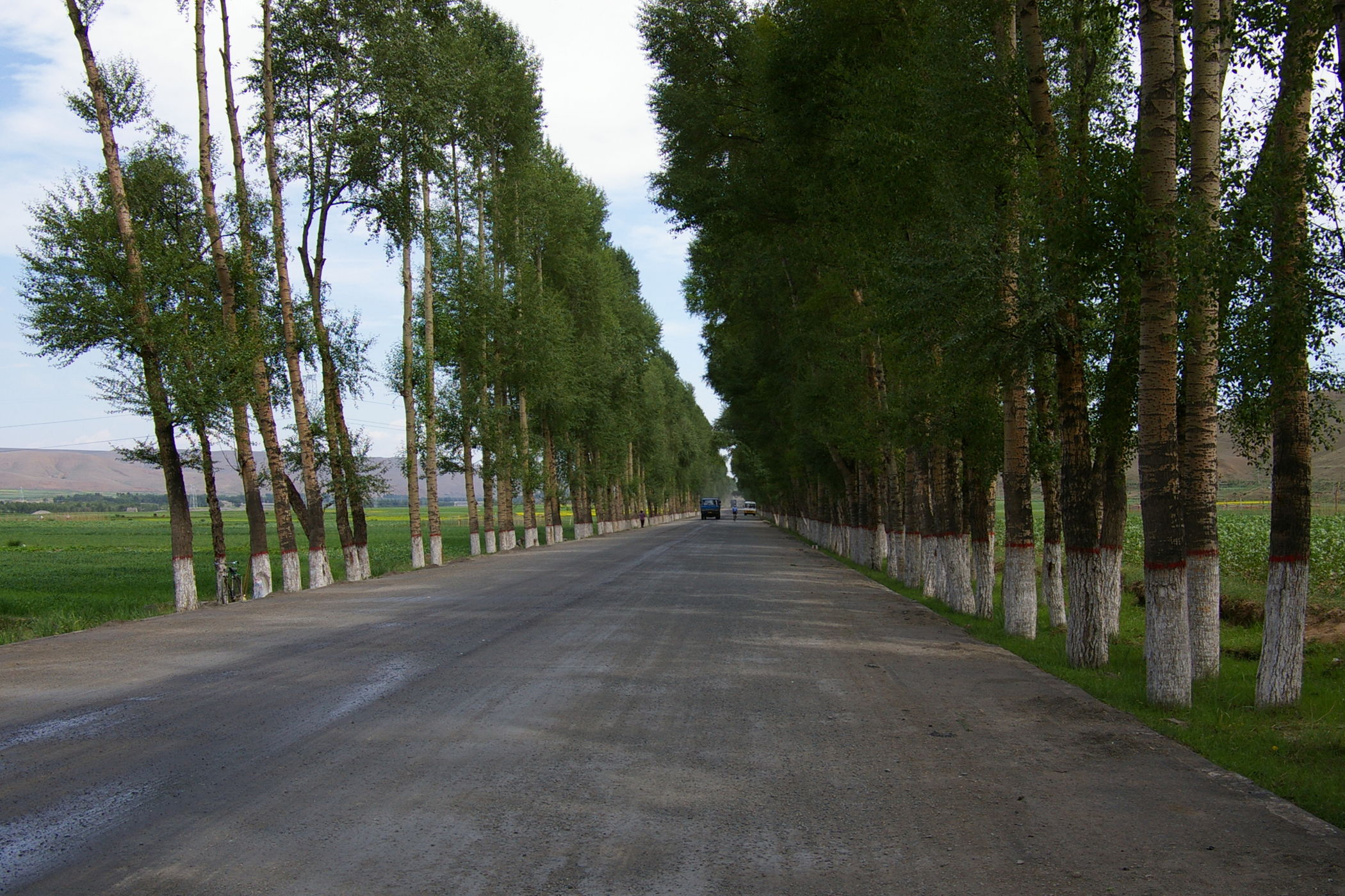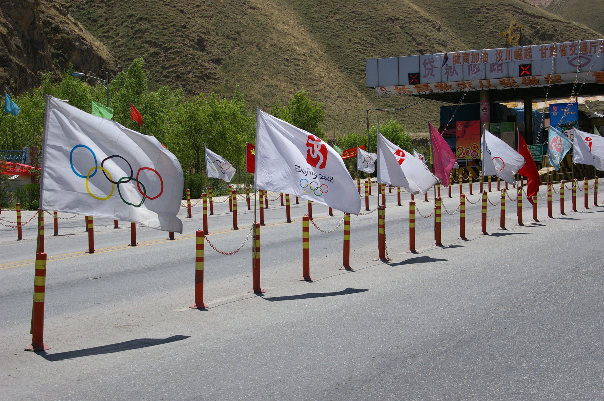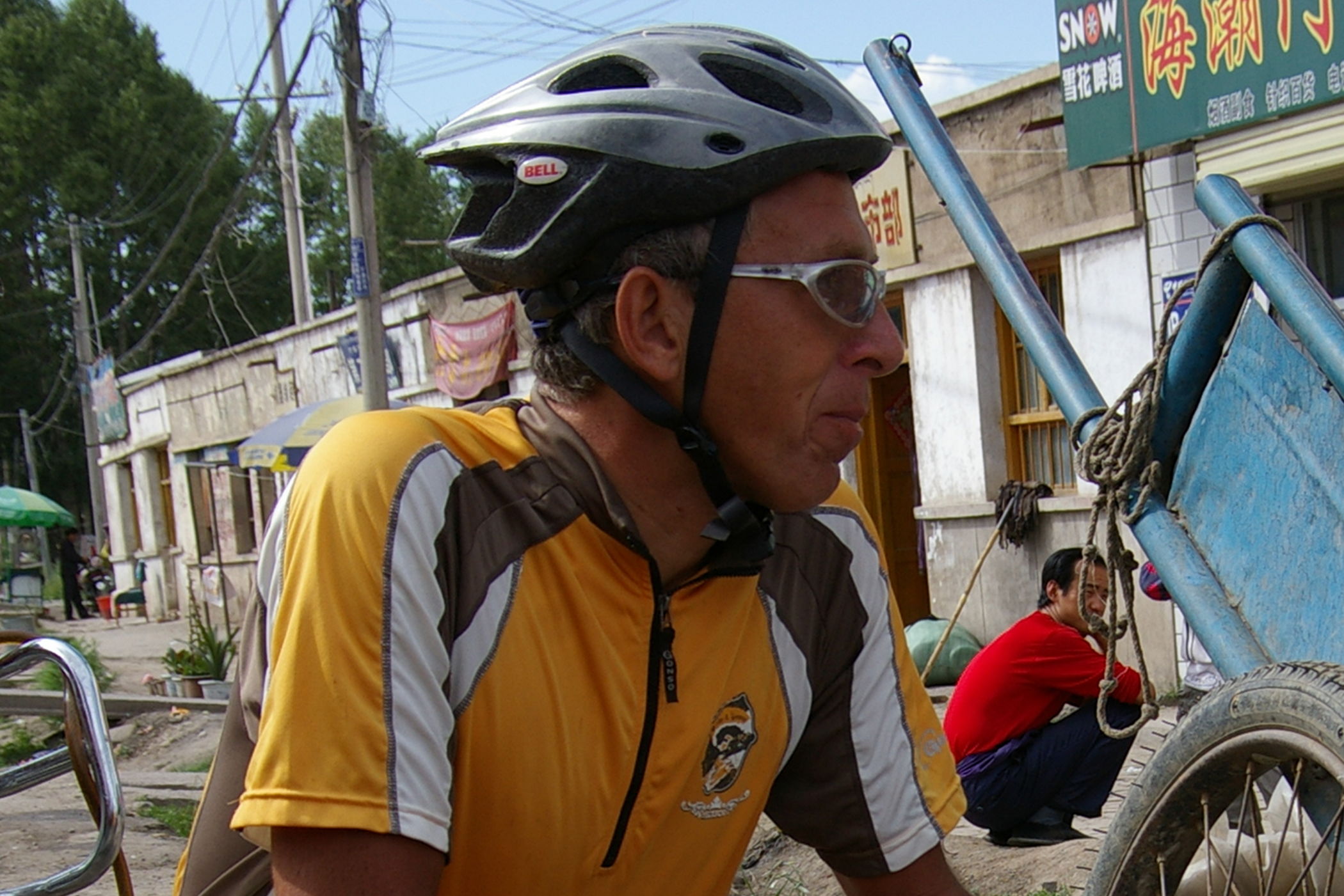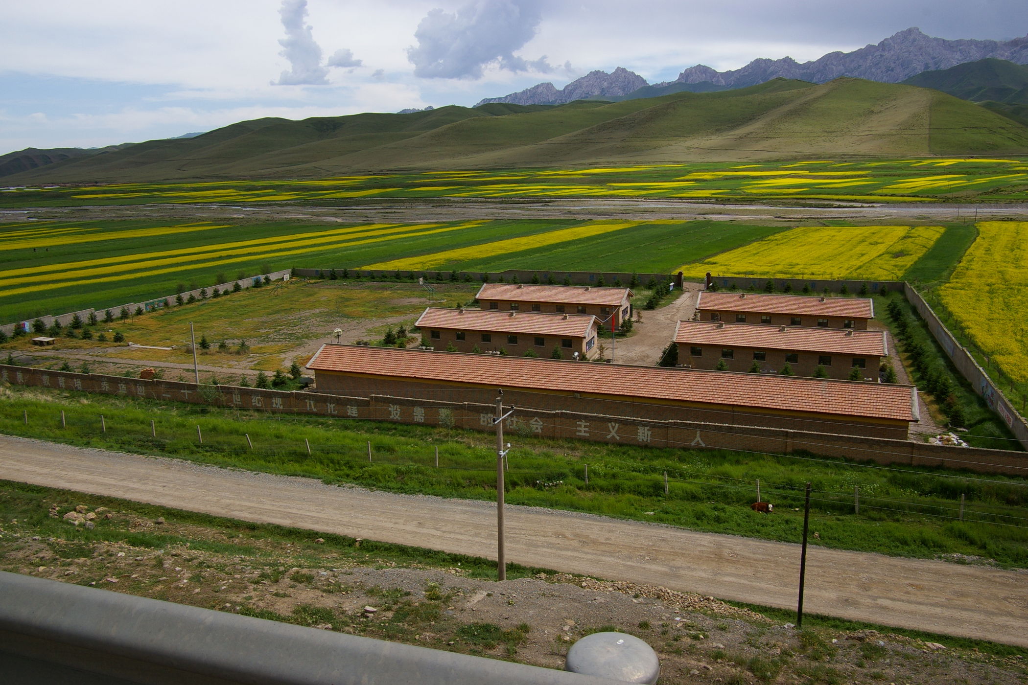 Eine lange Etappe über einen fast 3000 m hohen Pass durch tolle Landschaft gilt es heute zu bewältigen. Erst geht es ca. 100 km ständig bergauf, danach gehts es gleichmäßig bis ans Ziel. Unterwegs treffen wir die französische Gruppe, die im Ort Tianzhu ein grossen Hotel belegt haben. Die fahren eine etwas andere Route (siehe Bild) und sind ca 100 Teilnehmer. Weil die so viele sind wurde schon vorher unser Plan leicht abgeändert, wir übernachten im nächsten Ort damit es in den Gasthäusern keinen Engpass gibt.