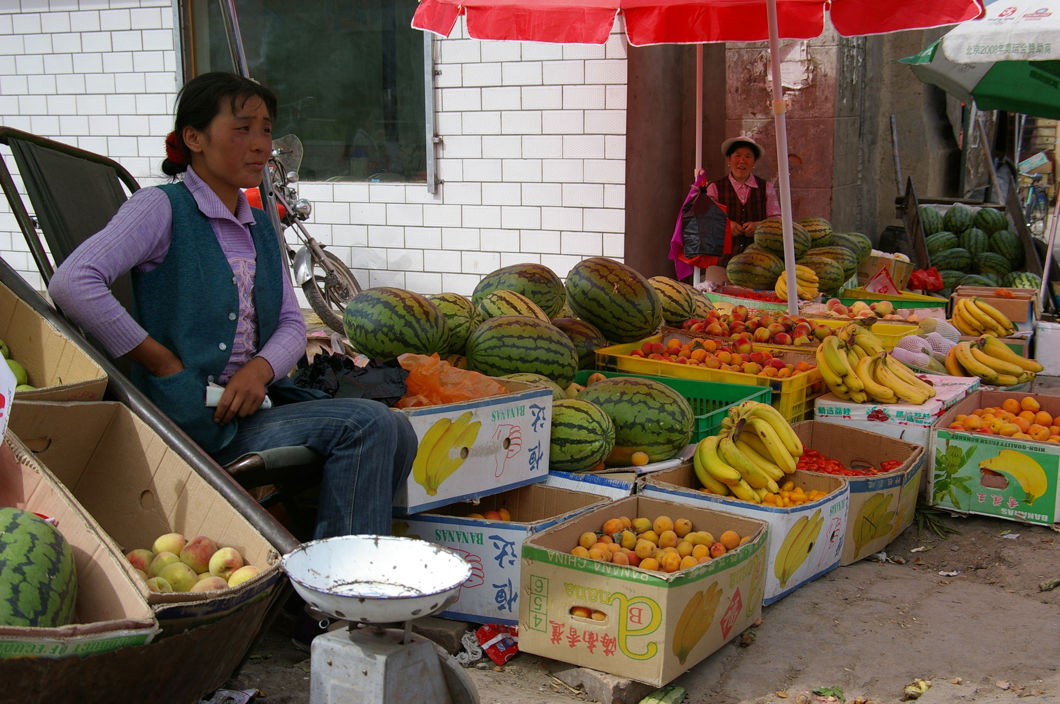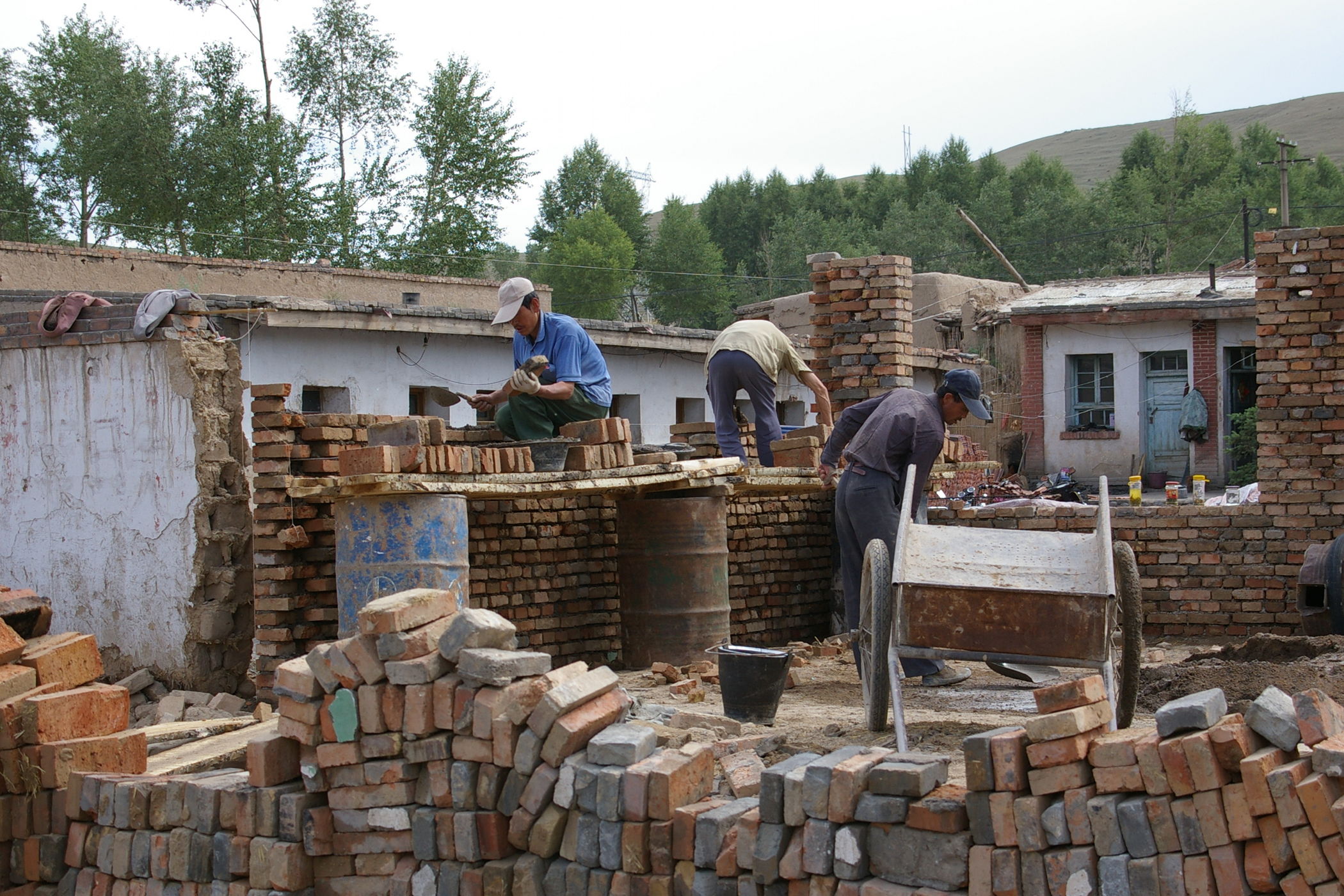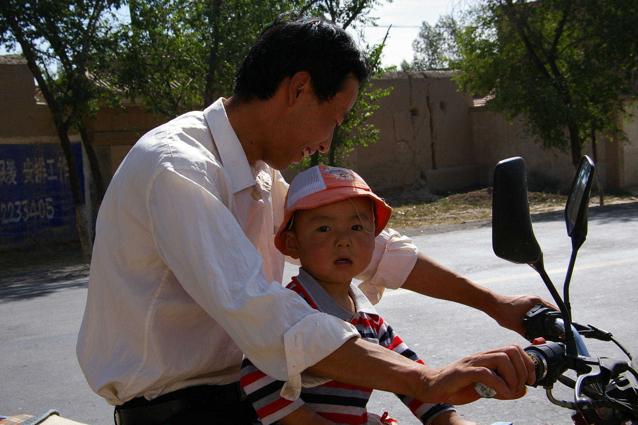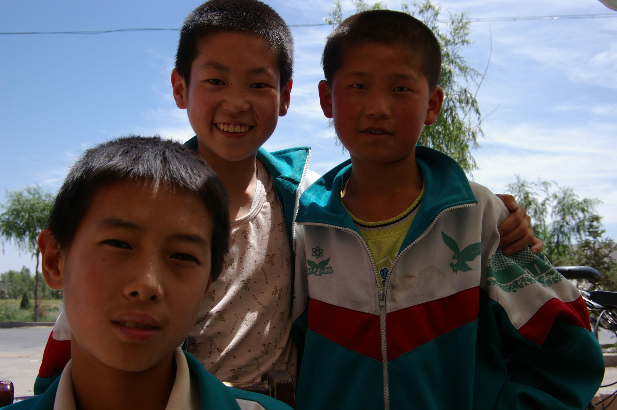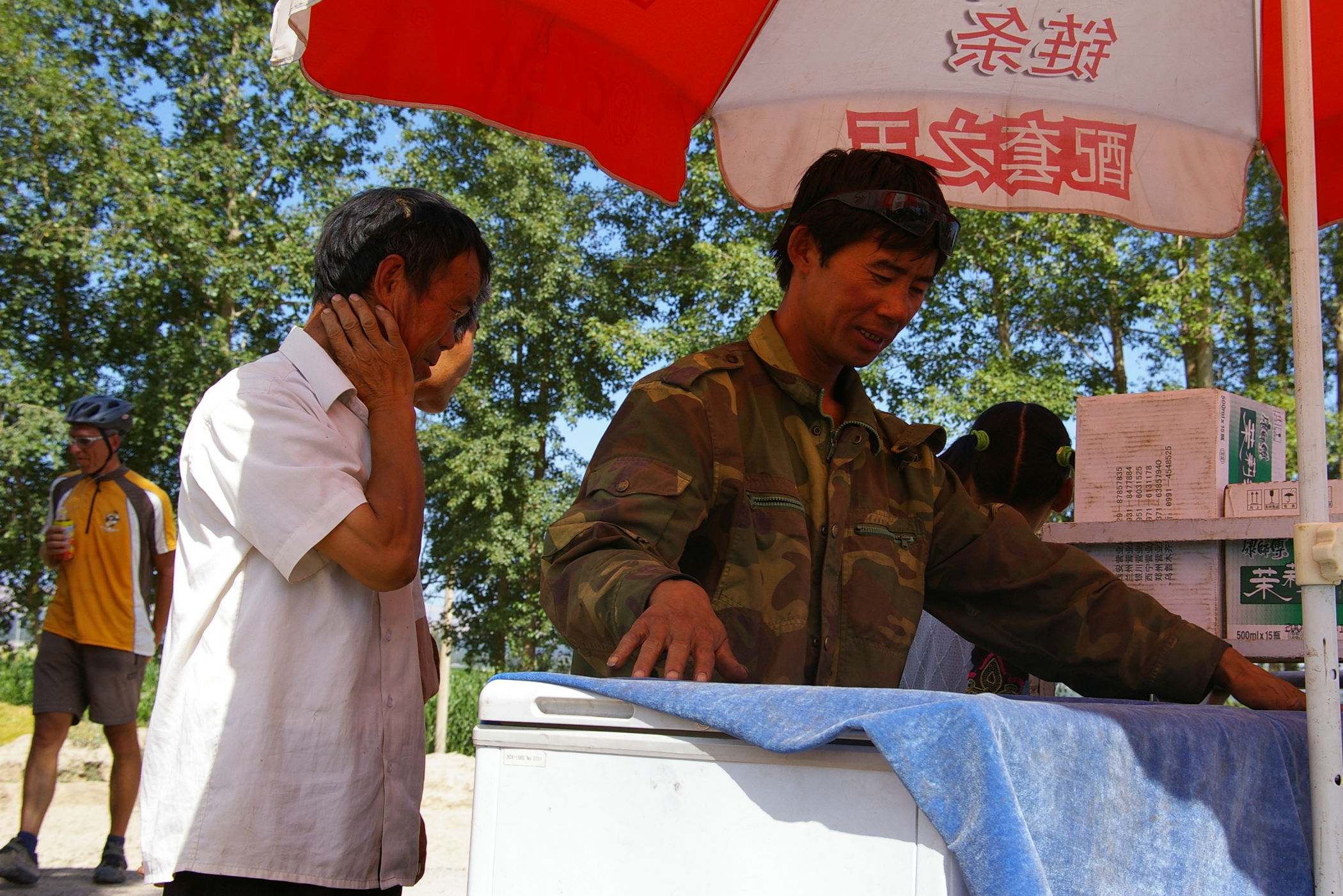 Eine lange Etappe über einen fast 3000 m hohen Pass durch tolle Landschaft gilt es heute zu bewältigen. Erst geht es ca. 100 km ständig bergauf, danach gehts es gleichmäßig bis ans Ziel. Unterwegs treffen wir die französische Gruppe, die im Ort Tianzhu ein grossen Hotel belegt haben. Die fahren eine etwas andere Route (siehe Bild) und sind ca 100 Teilnehmer. Weil die so viele sind wurde schon vorher unser Plan leicht abgeändert, wir übernachten im nächsten Ort damit es in den Gasthäusern keinen Engpass gibt.