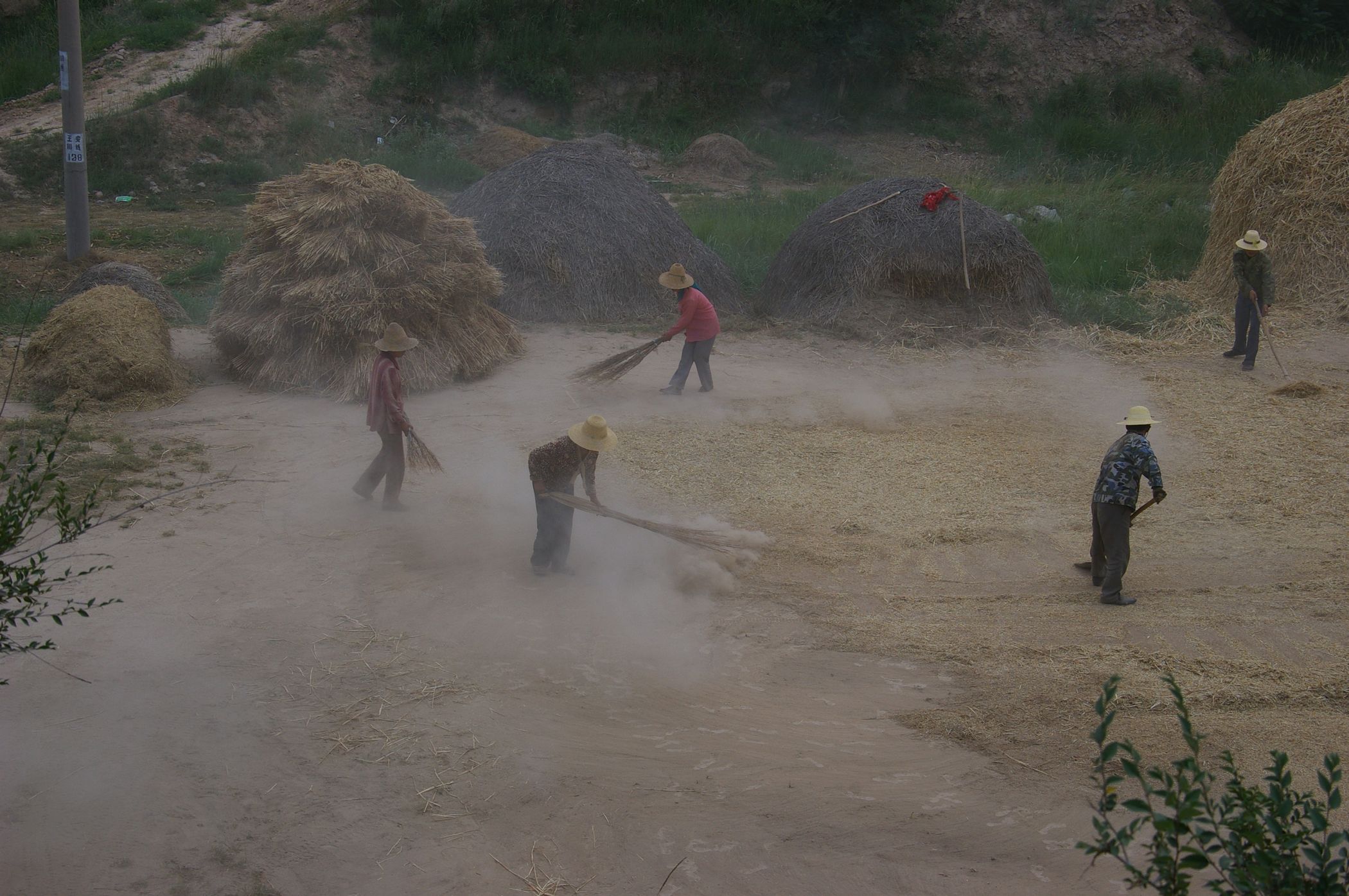 Nach dem Ruhetag ist das Wetter für uns sehr angenehm, es ist kühl. Das ist gut, weil es geht über einen Berg. Wir haben das Gefühl nun wirklich in China angekommen zu sein, viele Menschen, Dörfer Landwirtschaft auf flächenmäßigen kleinen Felder. Nach den vielen Tagen durch Wüste und Steppe durch den Westen Chinas ist mein Chinabild wieder in Ordnung. Die Vorstellung, China ist ein Land mit dichter Besiedelung ist nun wieder erfüllt. Die Dörfer sind aus meiner Sicht sehr schön, wenn auch alles etwas ärmlicher wirkt im Vergleich zum Westen Chinas. Jedenfalls gibt es sehr viel zu sehen, es gibt auch keinen Mangel an guten Fotos.