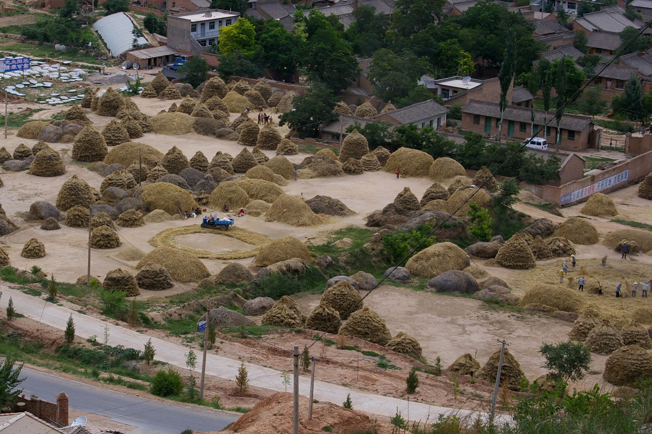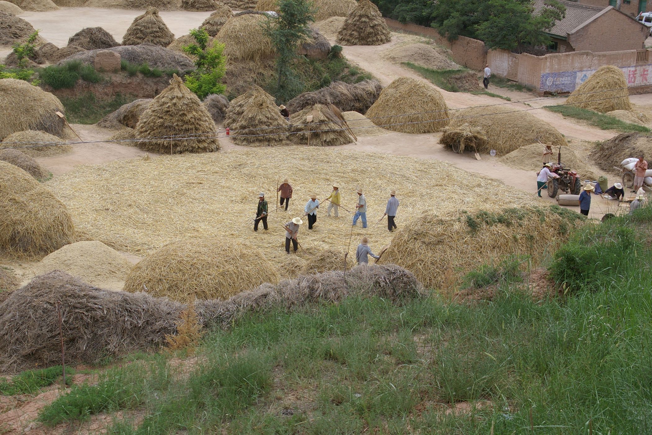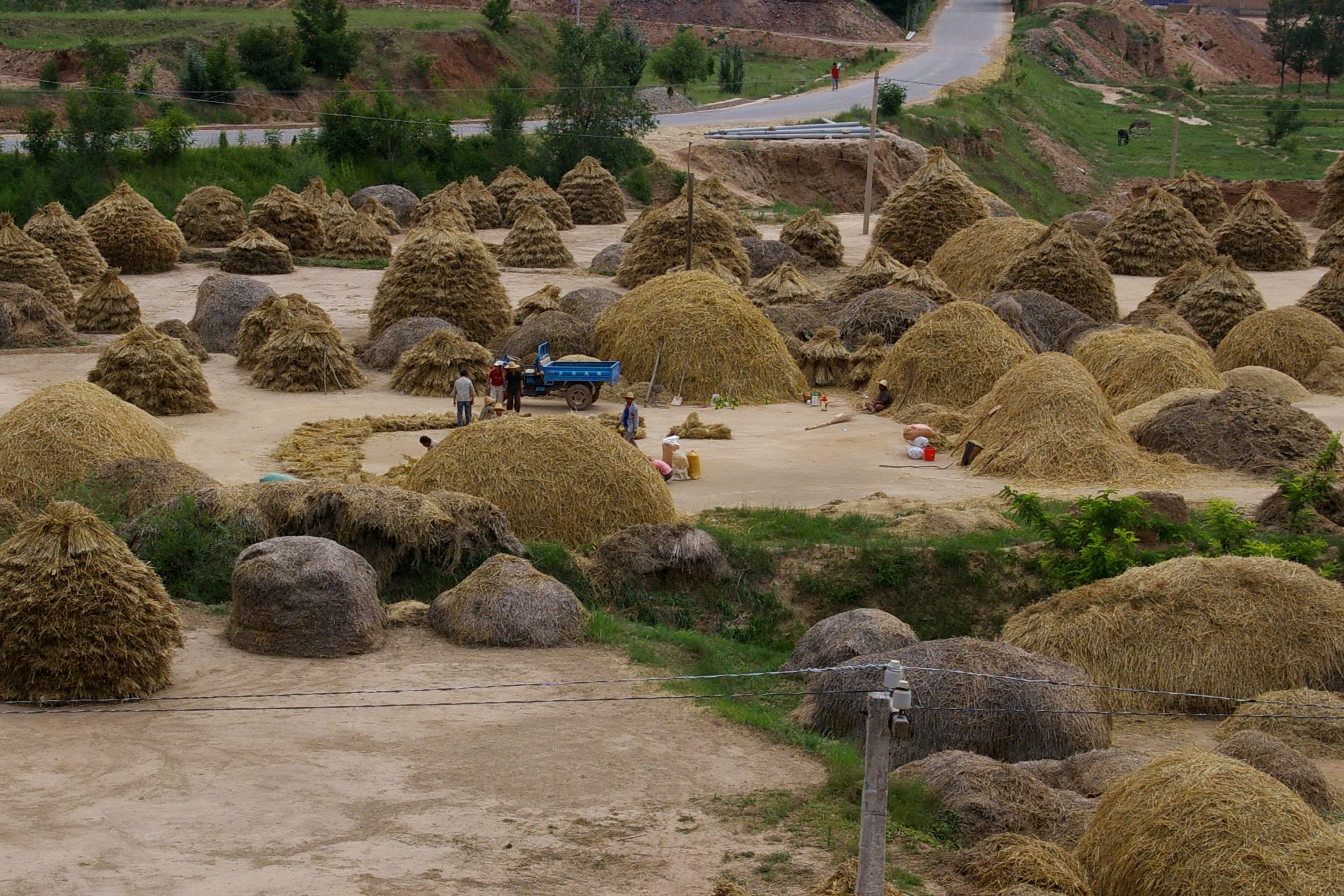 Am morgen ist es recht kühl. Es sieht ein bisschen nach Regen aus, aber letzten Endes bleibt es trocken und sehr angenehm zum Radfahren. Die Landschaft ist wieder grossartik, wir fahren durch das Lösgebiet mit tiefen Schluchten. Wir sind nun in Zentralchina, ein ganz anderer Menschenschlag als im Westen Chinas. Landwirtschaft auf Terassen wodurch in unvorstellbarer Arbeit den Bergen ebene Flächen abgerungen wurden, praktische ede Fläche ist hier genutzt. Die Dörfer sind sehr schön, voller Leben mit vielen Werkstätten und Geschäften. Dieser Radtag ist einer der eindruckvollsten für mich bisher in China, es ist eine Freude zu sehen, wie hier gelebt und gearbeitet wird. Am heutigen Tag wird auch an vielen Plätzen Getreide gedroschen. Die einfachste Art ist das Getreide einfach auf der Strasse auszubreiten und die darüberfahrenden Fahrzeuge zu nutzen. Wie sahen aber auch richtige Dreschplätze wo mit allen möglichen Mitteln das ganze Dorf sich an der Arbeit beteiligt.