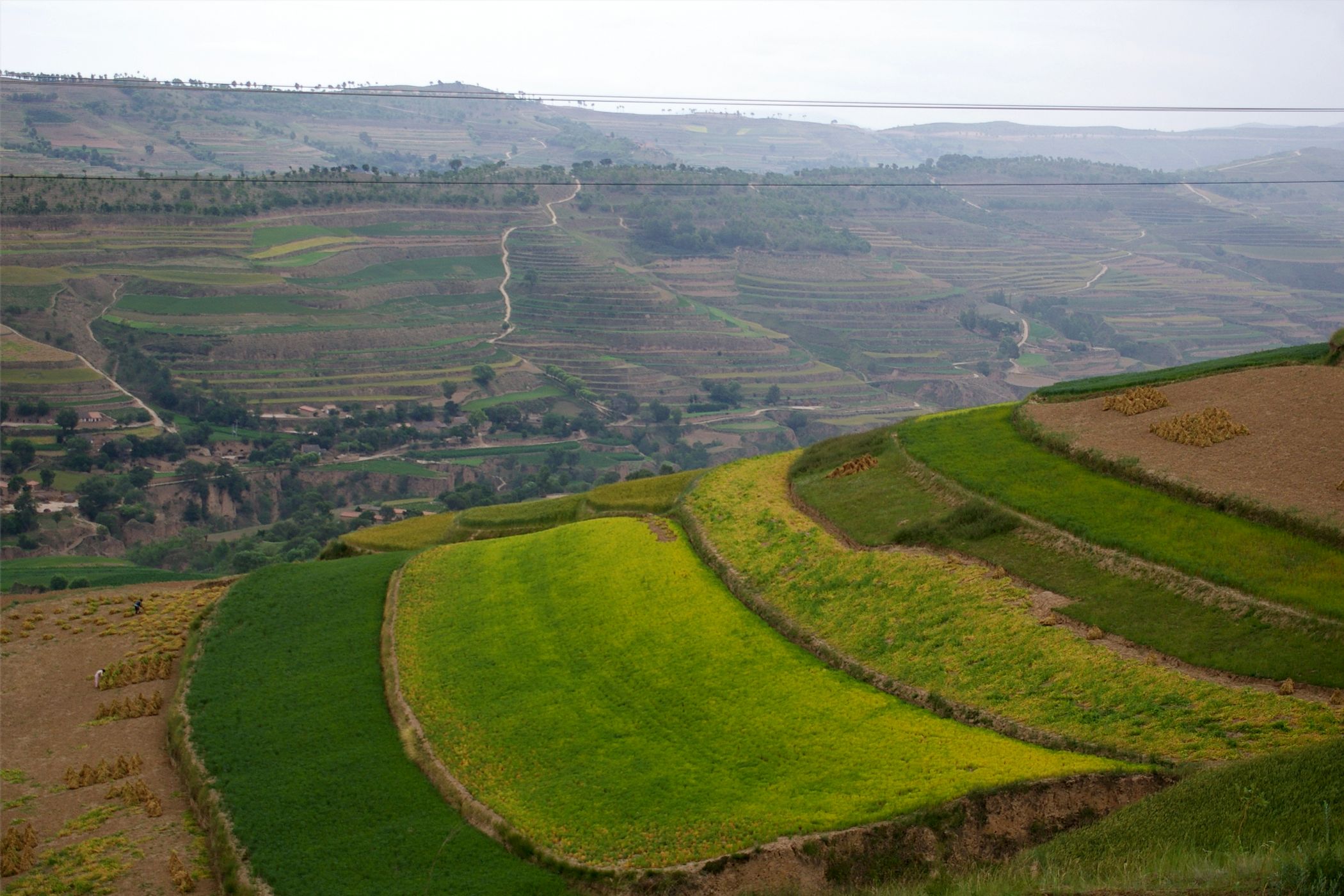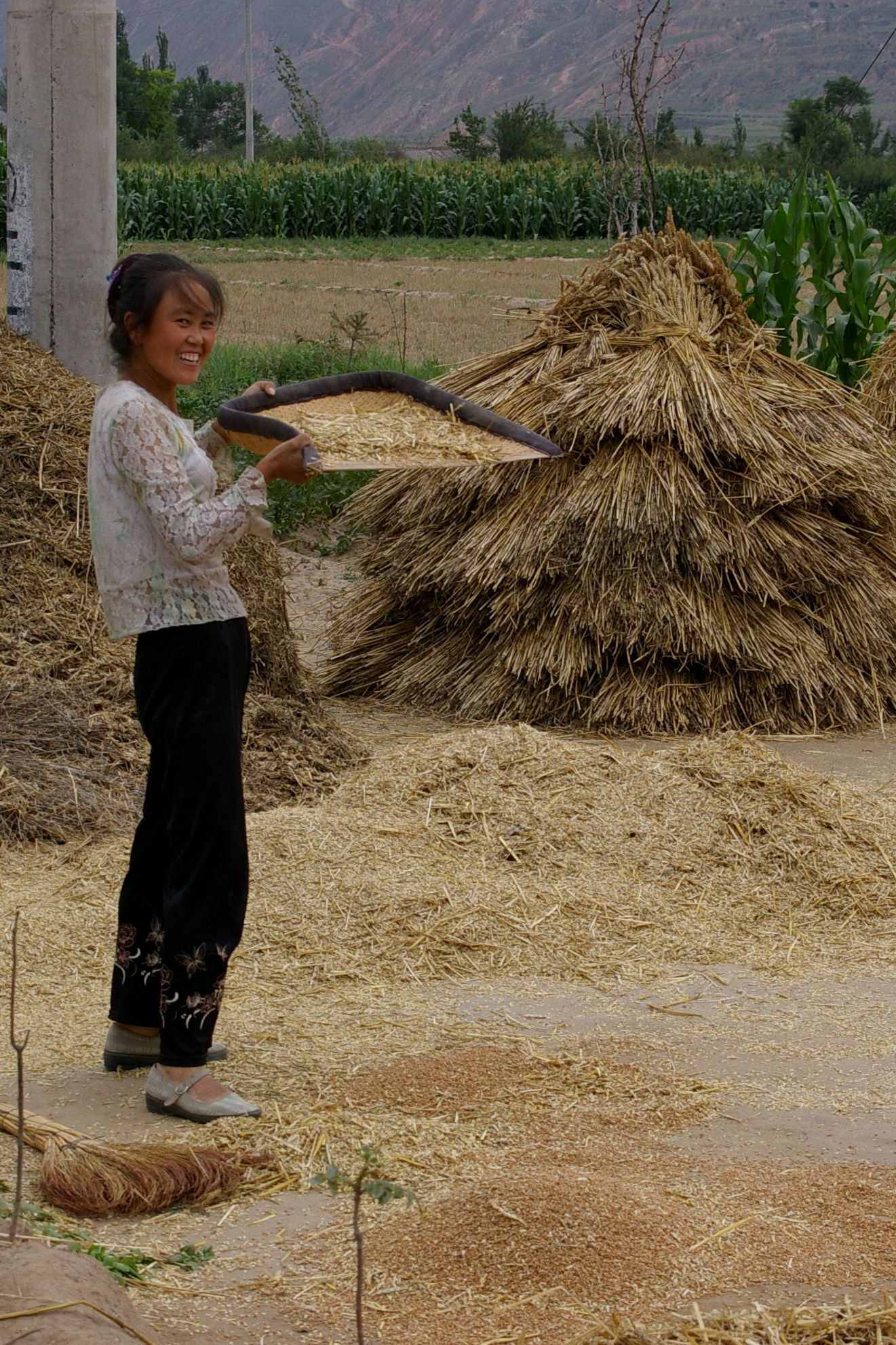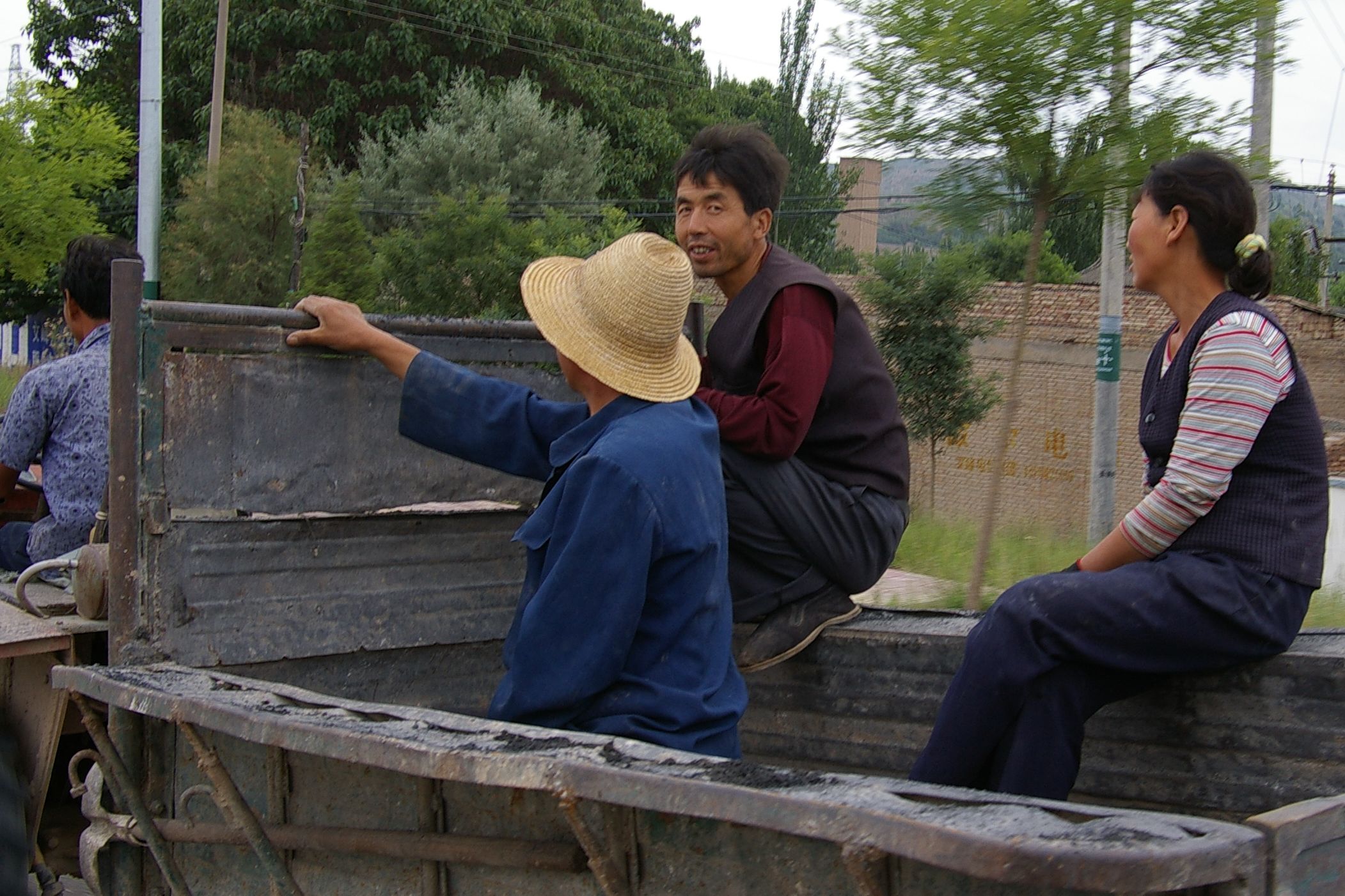 Am morgen ist es recht kühl. Es sieht ein bisschen nach Regen aus, aber letzten Endes bleibt es trocken und sehr angenehm zum Radfahren. Die Landschaft ist wieder grossartik, wir fahren durch das Lösgebiet mit tiefen Schluchten. Wir sind nun in Zentralchina, ein ganz anderer Menschenschlag als im Westen Chinas. Landwirtschaft auf Terassen wodurch in unvorstellbarer Arbeit den Bergen ebene Flächen abgerungen wurden, praktische ede Fläche ist hier genutzt. Die Dörfer sind sehr schön, voller Leben mit vielen Werkstätten und Geschäften. Dieser Radtag ist einer der eindruckvollsten für mich bisher in China, es ist eine Freude zu sehen, wie hier gelebt und gearbeitet wird. Am heutigen Tag wird auch an vielen Plätzen Getreide gedroschen. Die einfachste Art ist das Getreide einfach auf der Strasse auszubreiten und die darüberfahrenden Fahrzeuge zu nutzen. Wie sahen aber auch richtige Dreschplätze wo mit allen möglichen Mitteln das ganze Dorf sich an der Arbeit beteiligt.