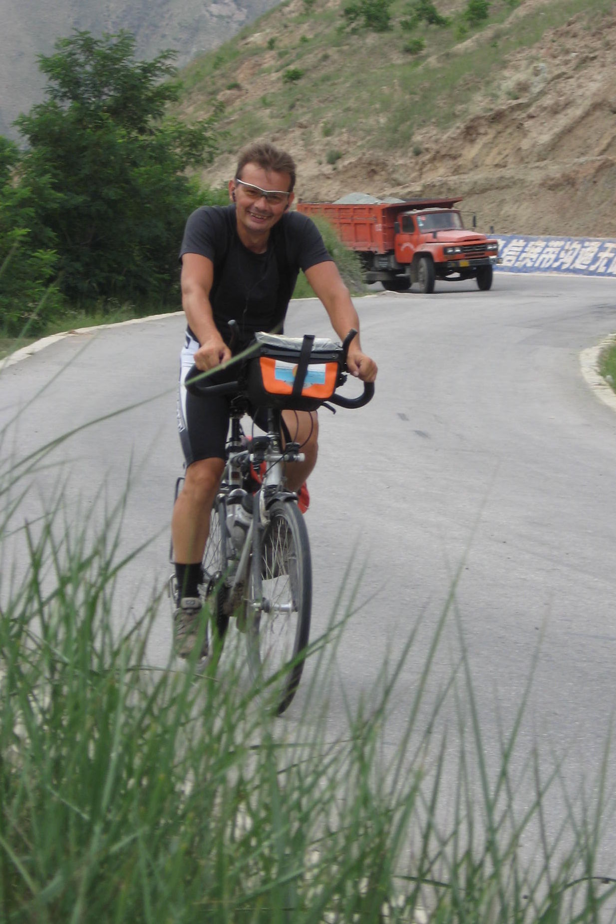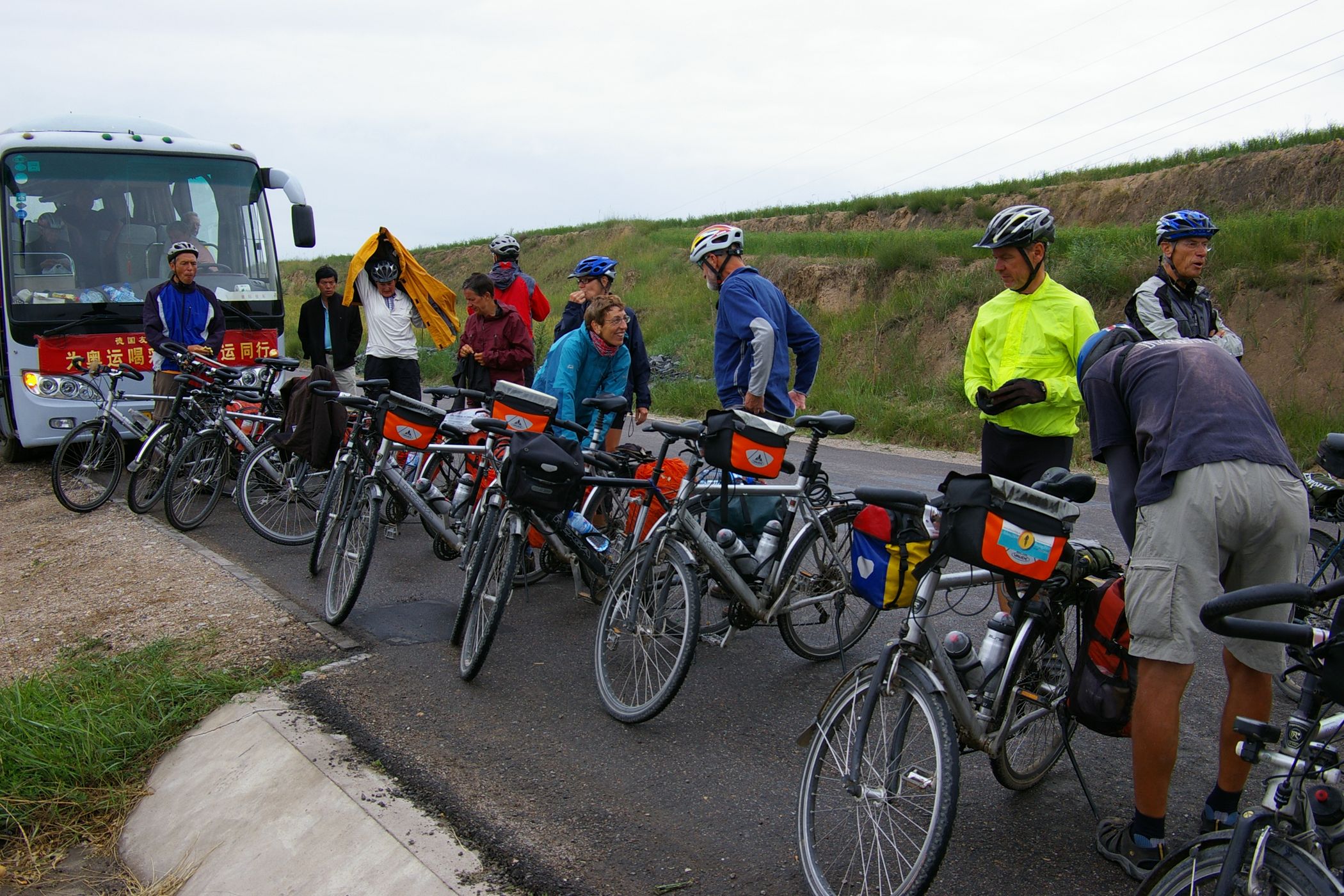 Am morgen ist es recht kühl. Es sieht ein bisschen nach Regen aus, aber letzten Endes bleibt es trocken und sehr angenehm zum Radfahren. Die Landschaft ist wieder großartig, wir fahren durch das Lösgebiet mit tiefen Schluchten. Wir sind nun in Zentralchina, ein ganz anderer Menschenschlag als im Westen Chinas. Landwirtschaft auf Terrassen wodurch in unvorstellbarer Arbeit den Bergen ebene Flächen abgerungen wurden, praktische jede Fläche ist hier genutzt. Die Dörfer sind sehr schön, voller Leben mit vielen Werkstätten und Geschäften. Dieser Radtag ist einer der eindrucksvollsten für mich bisher in China, es ist eine Freude zu sehen, wie hier gelebt und gearbeitet wird. Am heutigen Tag wird auch an vielen Plätzen Getreide gedroschen. Die einfachste Art ist das Getreide einfach auf der Strasse auszubreiten und die darüber fahrenden Fahrzeuge zu nutzen. Wie sahen aber auch richtige Dreschplätze wo mit allen möglichen Mitteln das ganze Dorf sich an der Arbeit beteiligt.