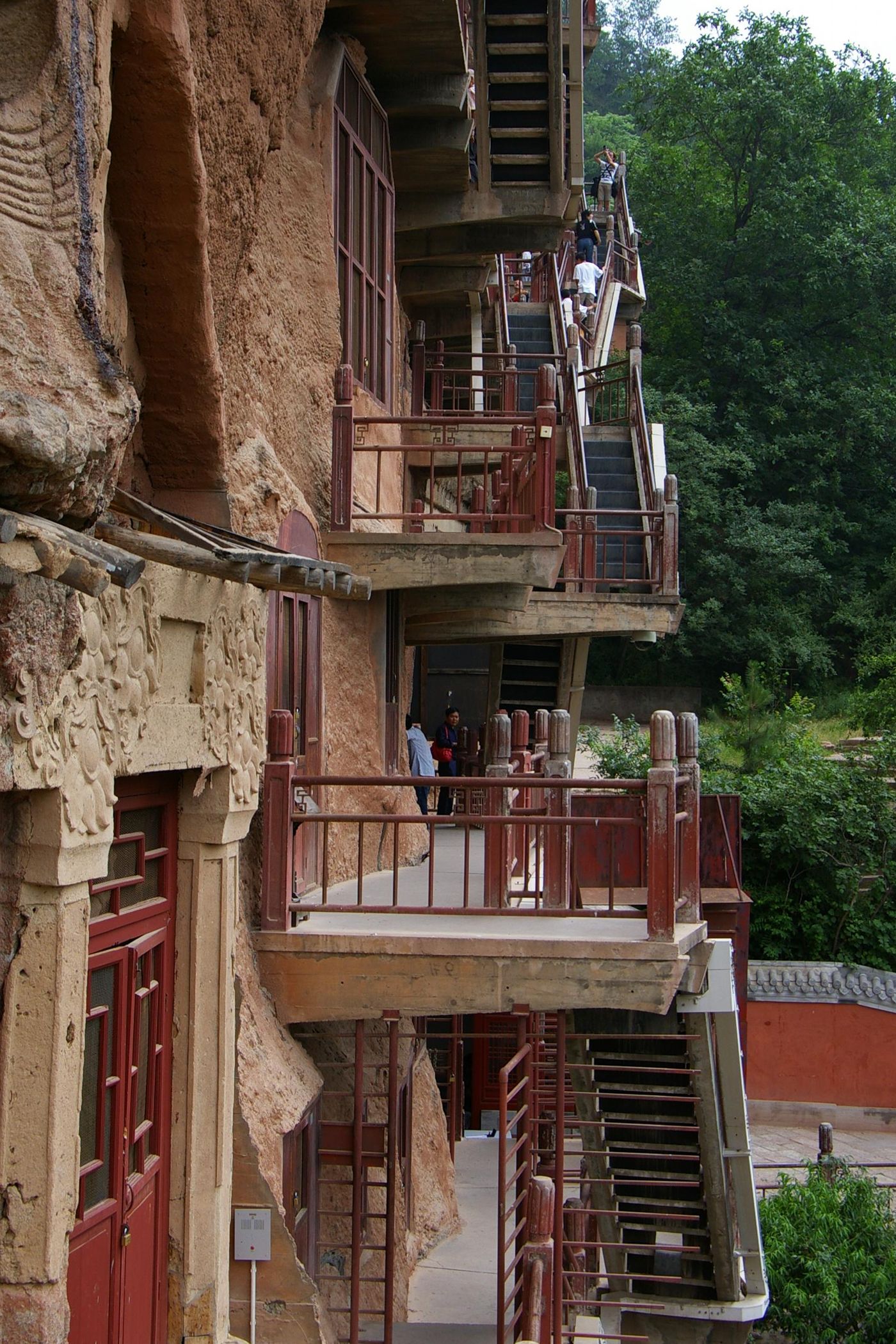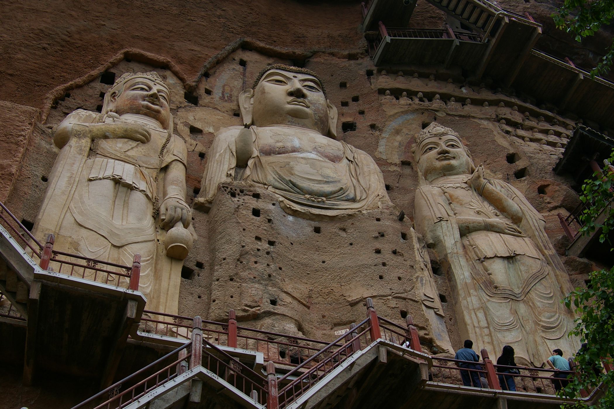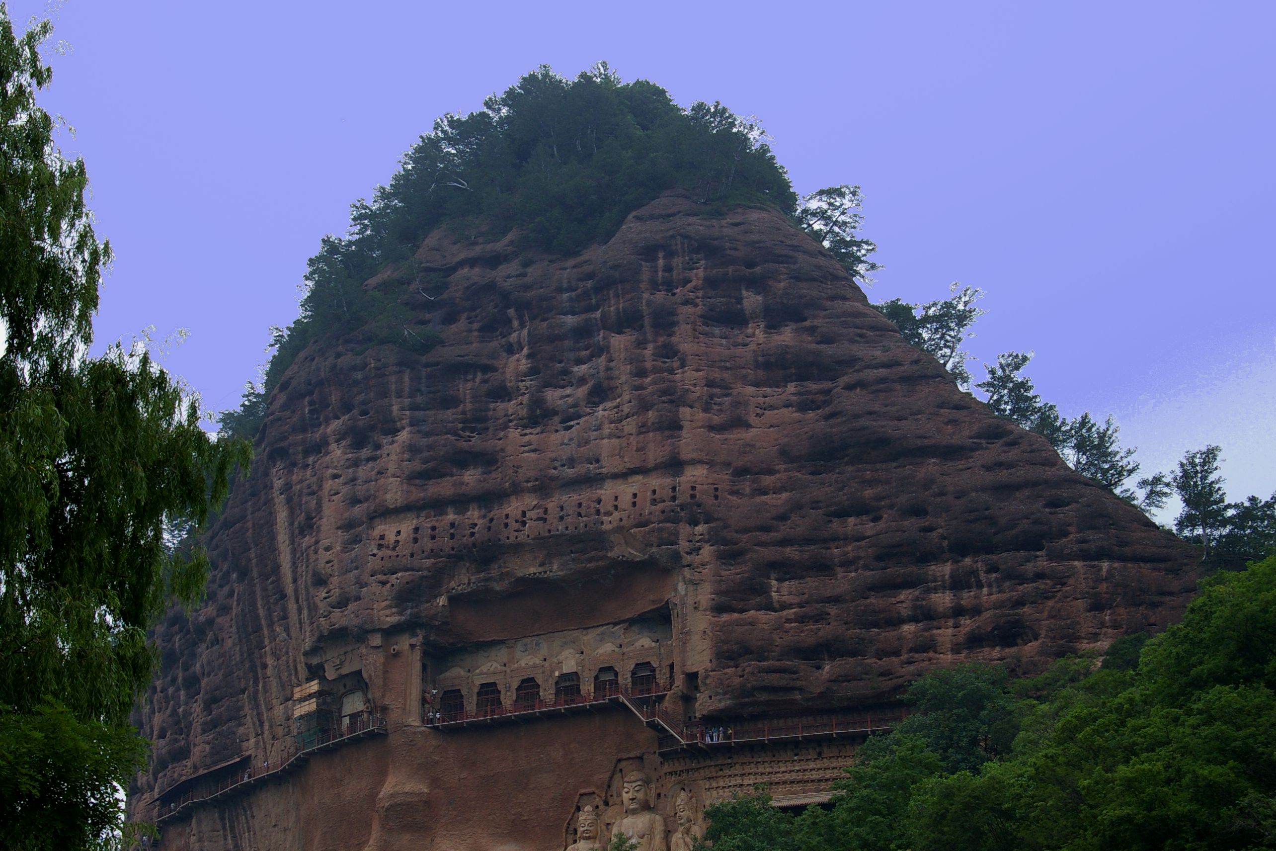 Auf unserem Program steht Besichtigung der Maijishan-Grotten. Die buddhistische Höhlentempel sind touristisch gut erschlossen, aber auch gut geschützt. So sind alle Grotten mit einen feinmaschigen Drahtgitter geschützt, das die Sicht erheblich einschränkt und das Fotografieren fast unmöglich macht.