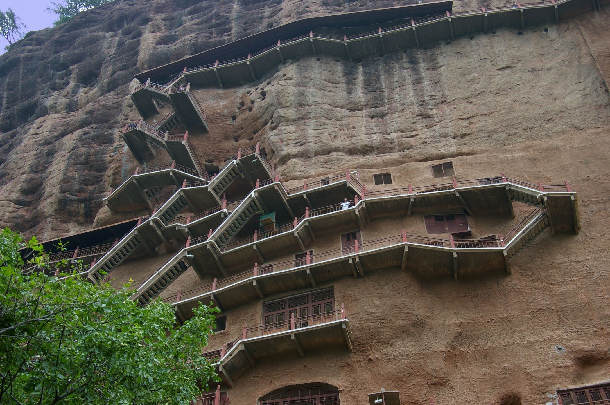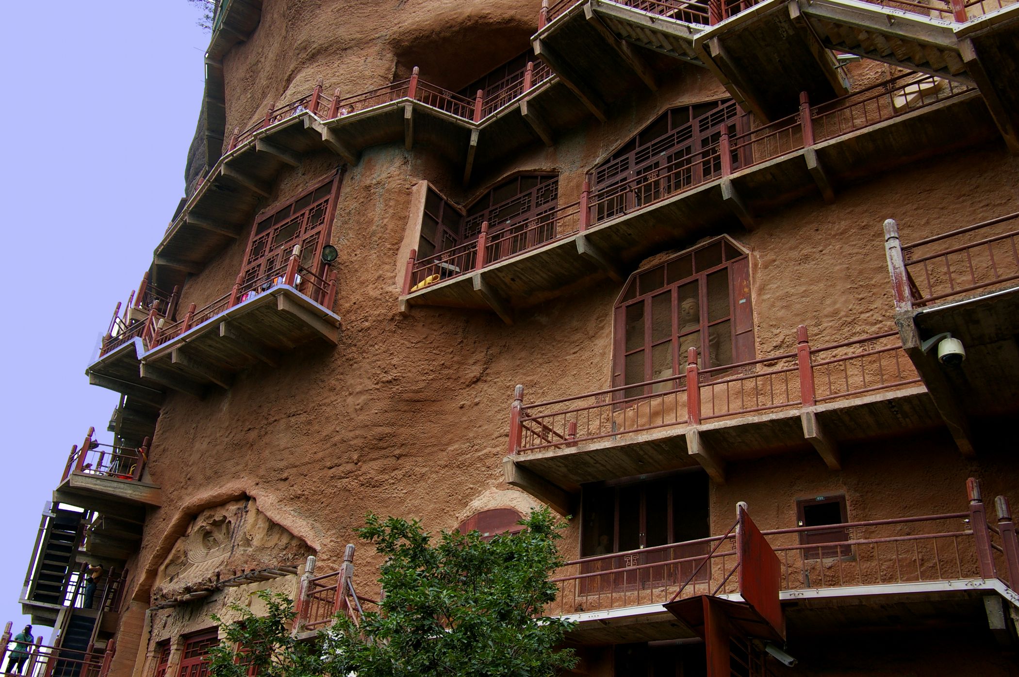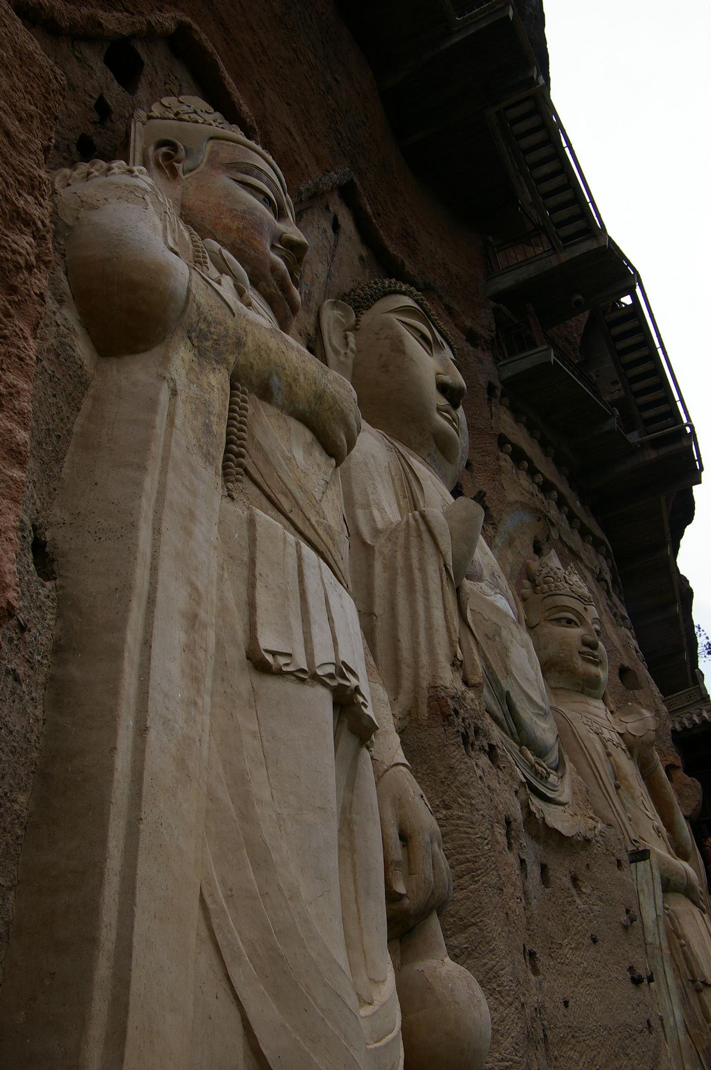 Auf unserem Program steht Besichtigung der Maijishan-Grotten. Die buddhistische Höhlentempel sind touristisch gut erschlossen, aber auch gut geschützt. So sind alle Grotten mit einen feinmaschigen Drahtgitter geschützt, das die Sicht erheblich einschränkt und das Fotografieren fast unmöglich macht.