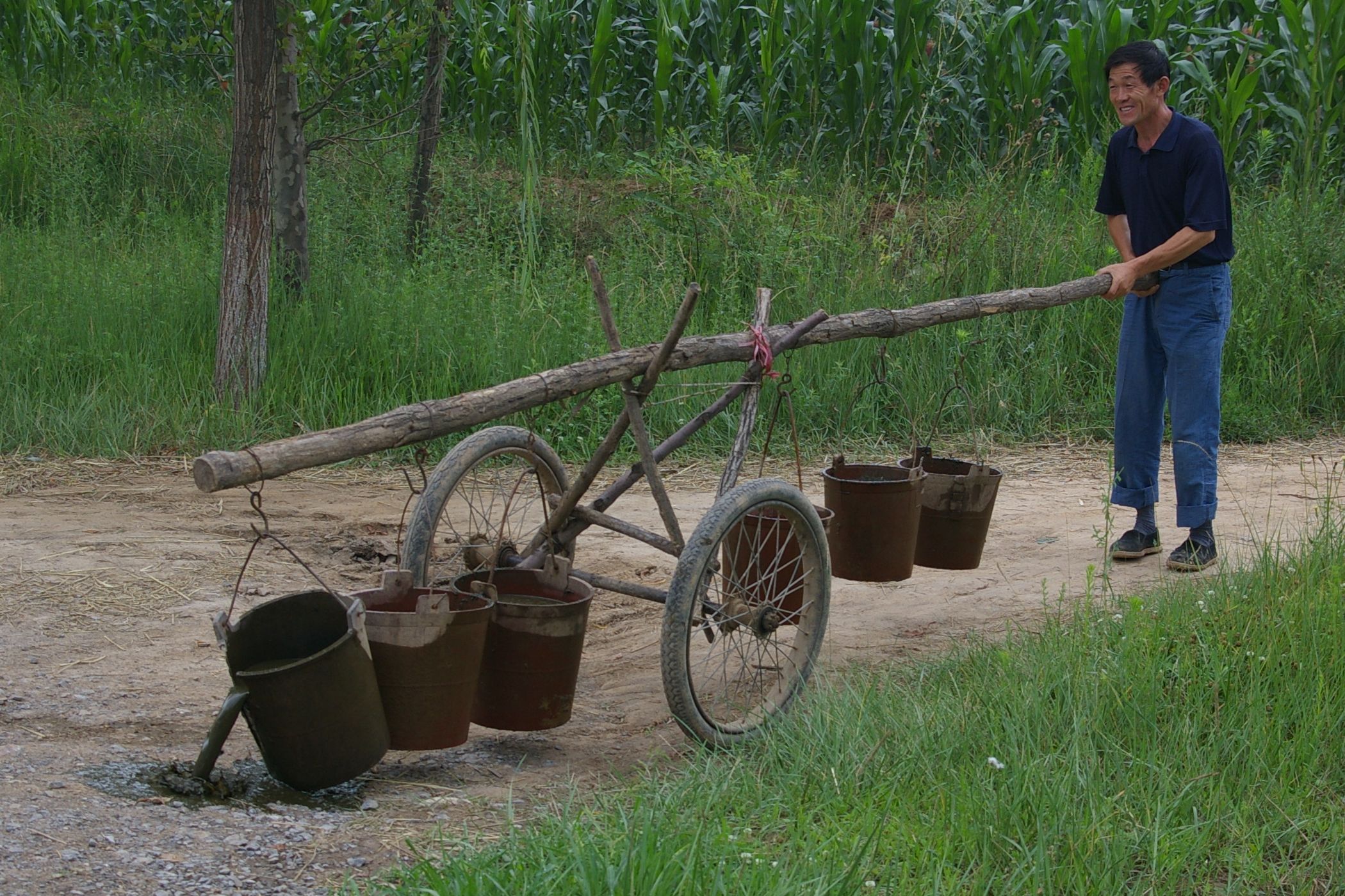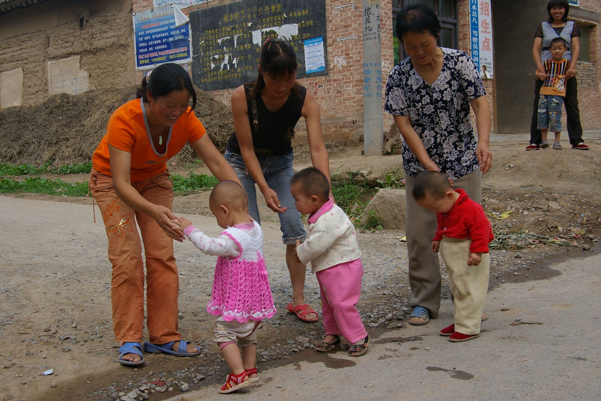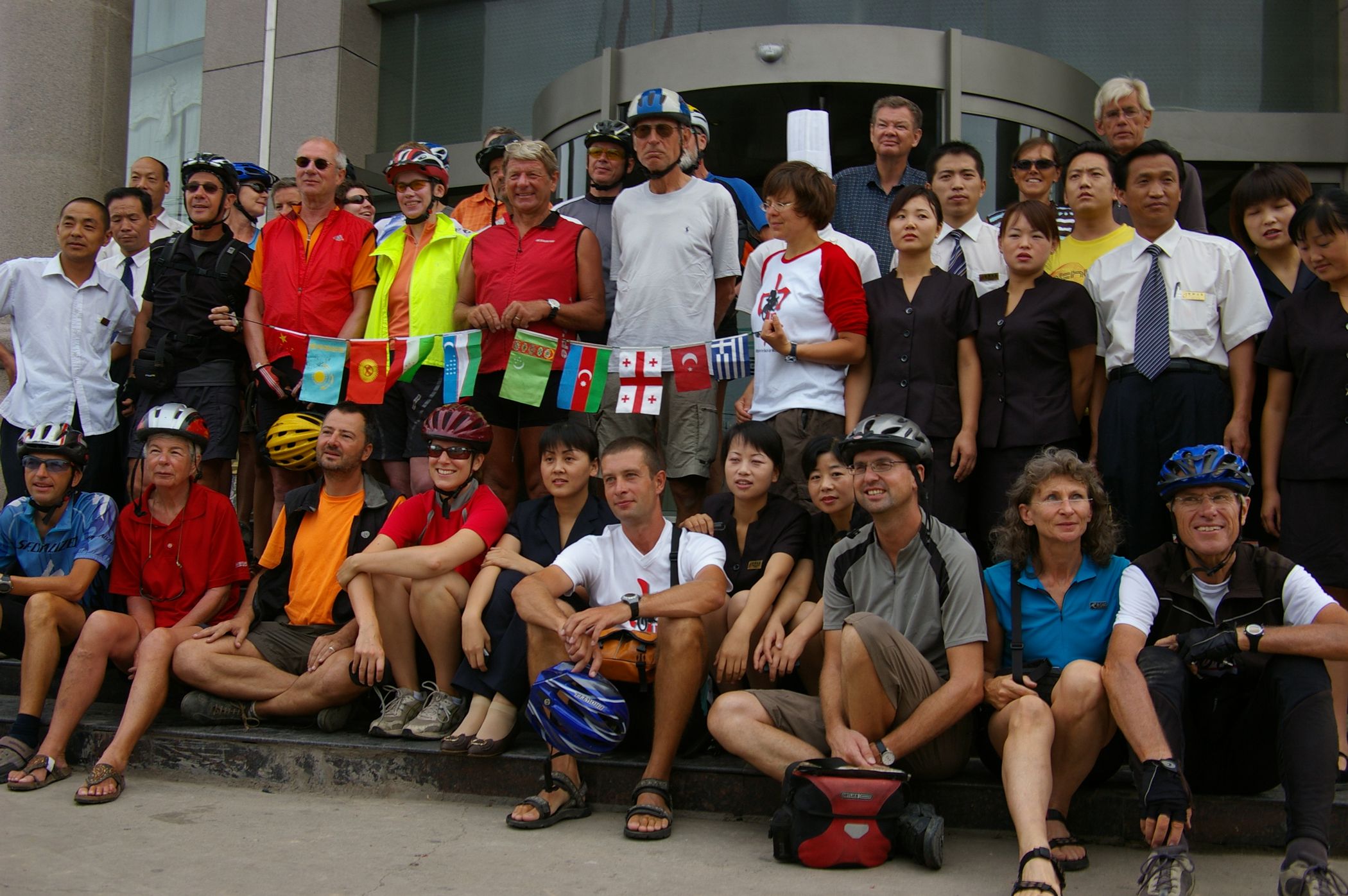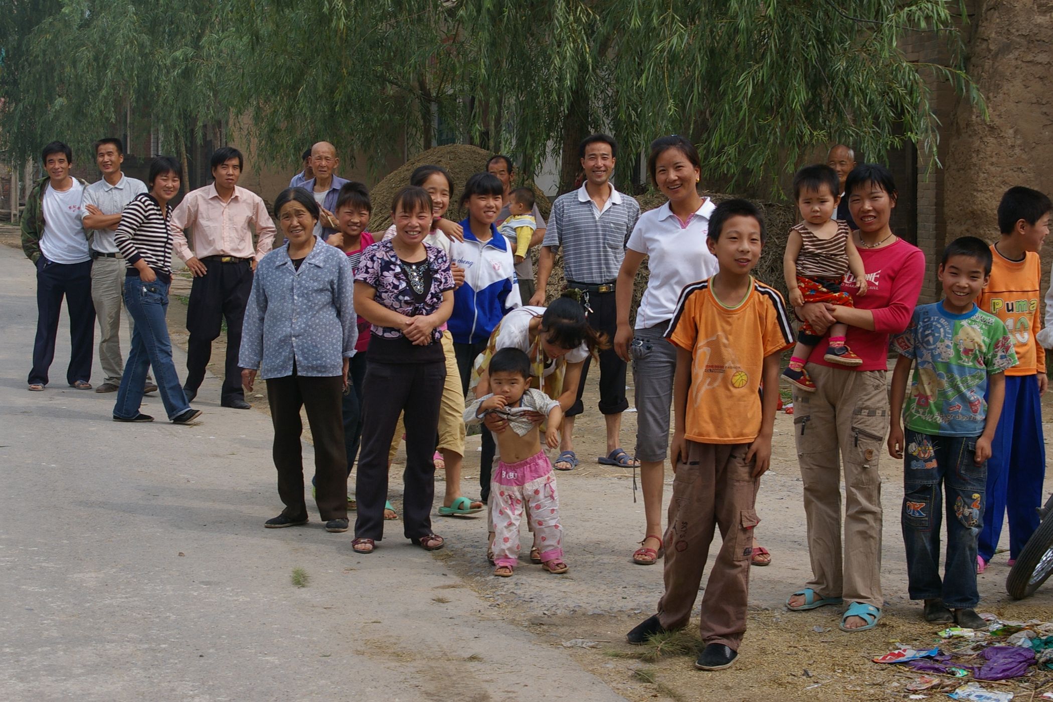 Das Höhenprofile dieses Tages hat von mir den Namen "Vier Berge Lauf" bekommen. Denn es ging auf vier Bergspitzen hoch, alle nicht sehr hoch aber wegen der drückende Hitze mit hoher Luftfeuchtigkeit richt mühsam zu fahren. Heute fuhren wir gemeinsam mit der Teilgruppe, die zum Teil neu gemsicht wurde, weil einige Teilnehmer neu hinzugekommen waren. Das war sehr nett, auch einmal mit neuen Leuten zu Plaudern. Zu Mittag hatten wir in einem kleinem Dorf nur eine Gasthaus zur Auswahl, das war dafür sehr gut und zum Glück auch gross genug für uns alle. Wenn wir als Gruppe zu ca. Leuten aufkreuzen ist das für die lokale Bevölkerung immer ein zimliches Ereigniss. Da sind wir nicht nur die Fotographierenden, sondern oft auch die Fotographierten.