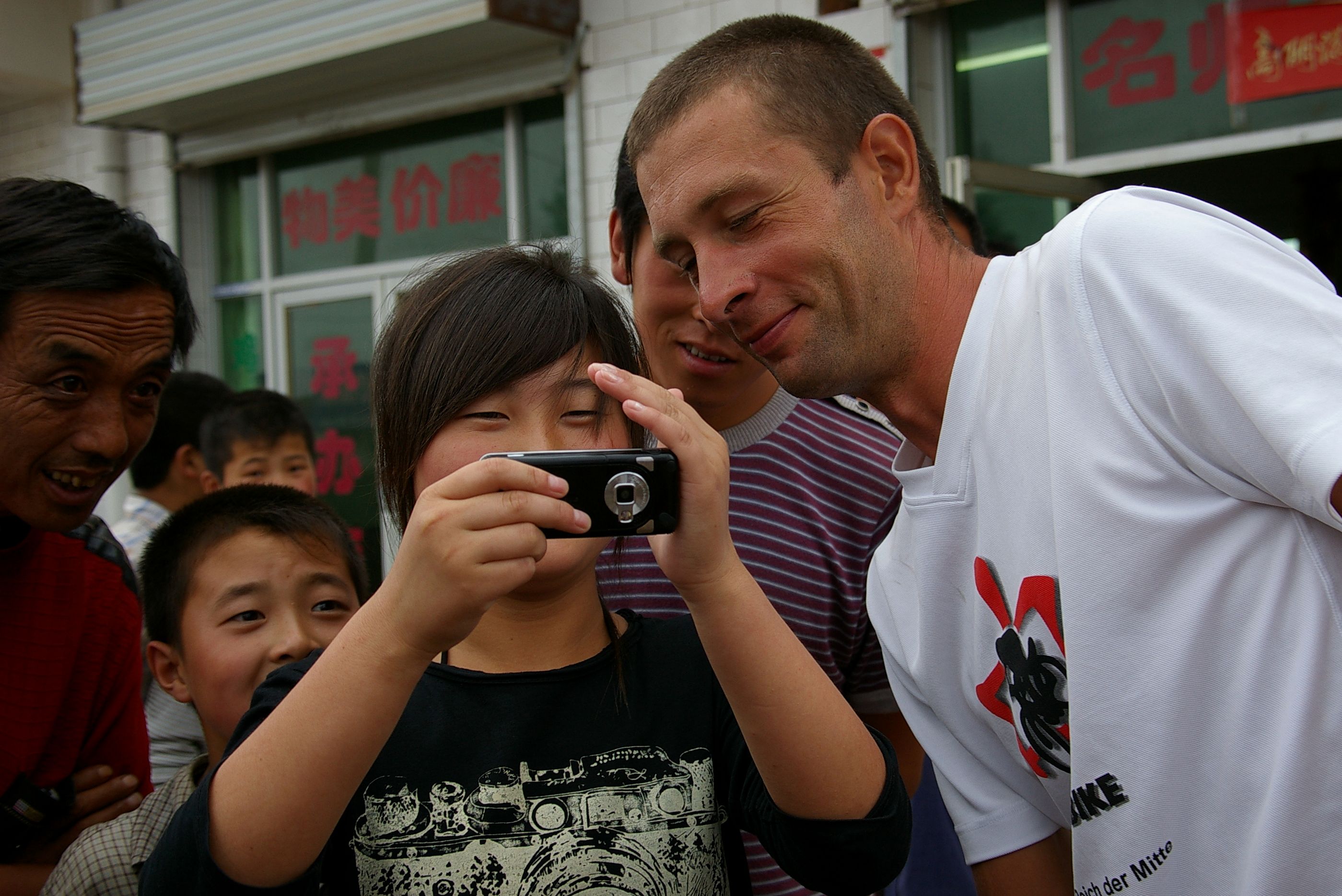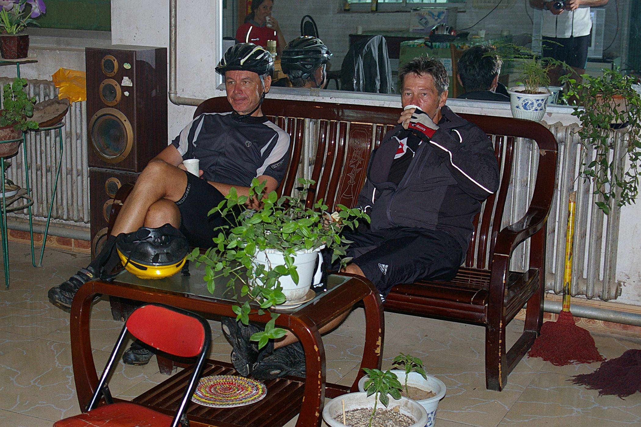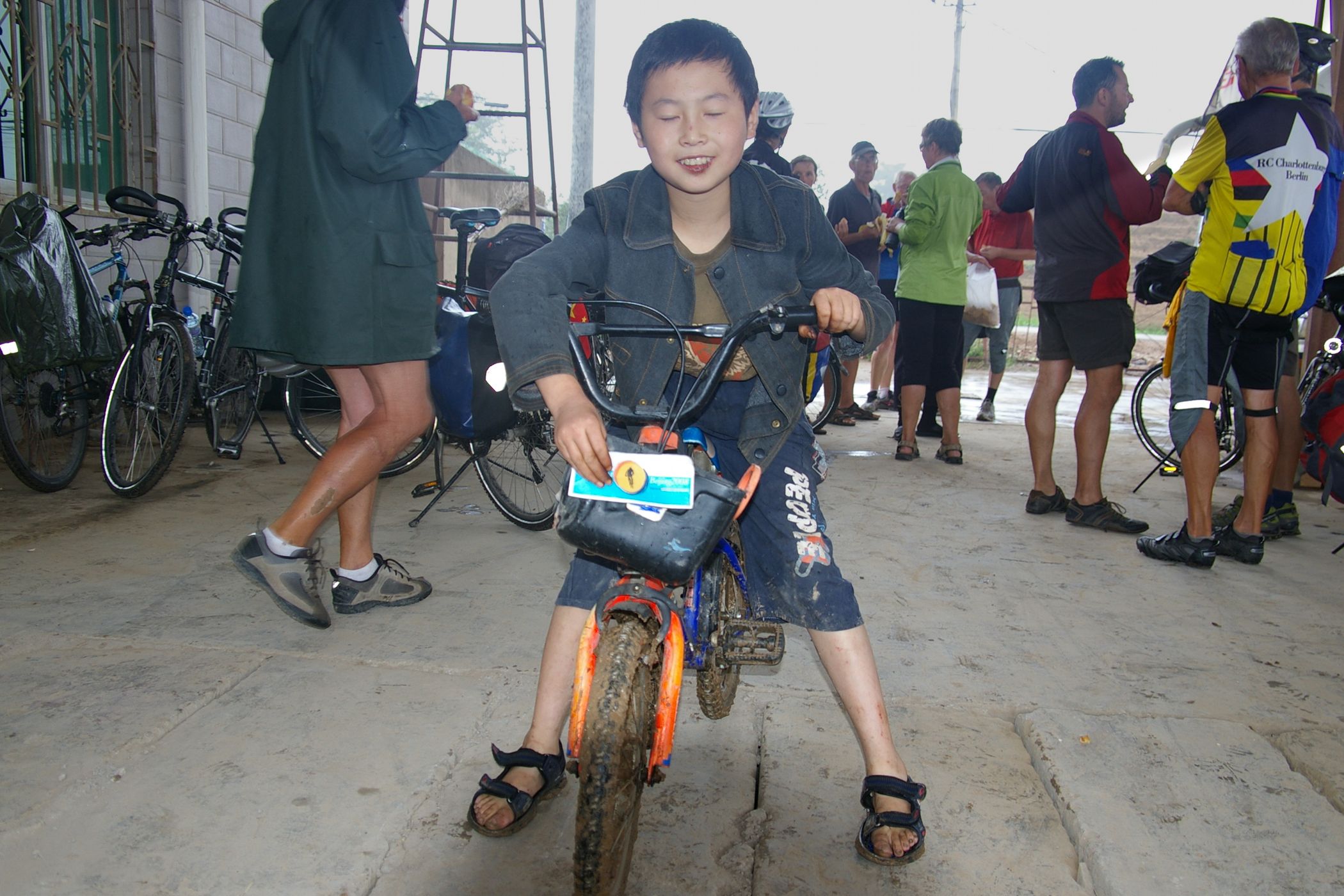 Regen und warscheinlich tolle Aussicht, wenn die Sicht nicht nur wenige Meter gewesen wäre. Damit ist der heutige Tag im wesentlichen beschrieben. Die Route führt über zwei kleine Berge, sehr wenig Verkehr und damit gut zu fahren. Überall wo wir stehen bleiben sammeln sich sofort viele Menschen und beobachten uns interessiert. Es ist angenehm kühl und wir erreichen das Hotel im Zielort Fuxian früh.