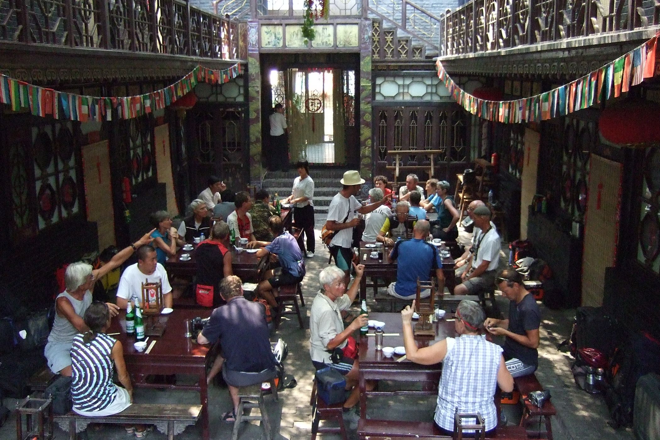 Wir erreichen nach einer kurzen Etappe die Stadt Pingyao, die als Wiege der chineschischen Kultur gilt. Am Weg dorthin besuchen wir einen Tempel. Pingyao ist touristisch erschlossen, es gibt zahlreiche stilvolle Hotels in der Innenstadt. Natürlich kann man hier auch jede Menge mehr oder wenig kitschige Soveniers kaufen. Auch wir ziehen in ein schönes altes Hotel ein, und lassen es uns bei Pizza und Capucino gut gehen.