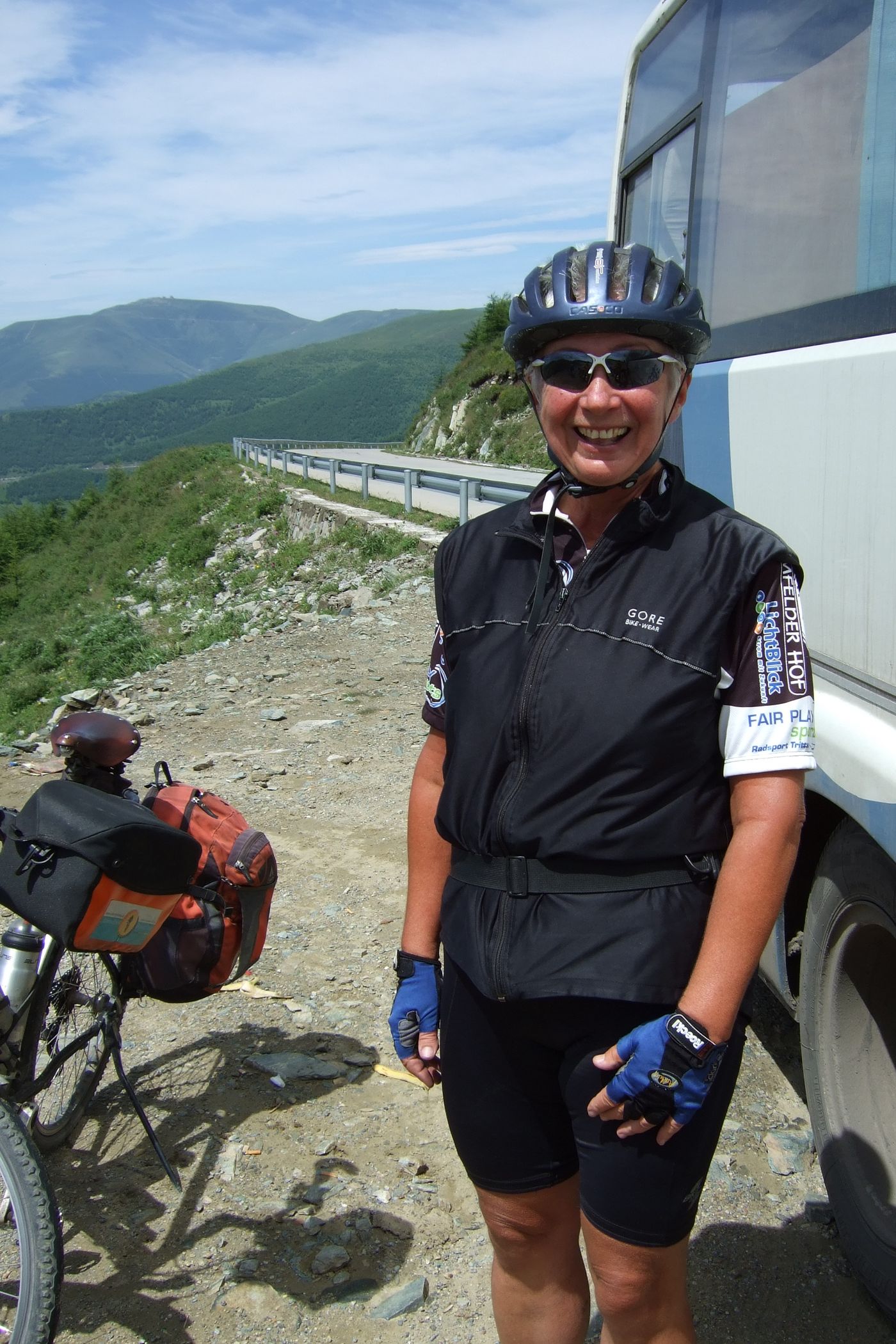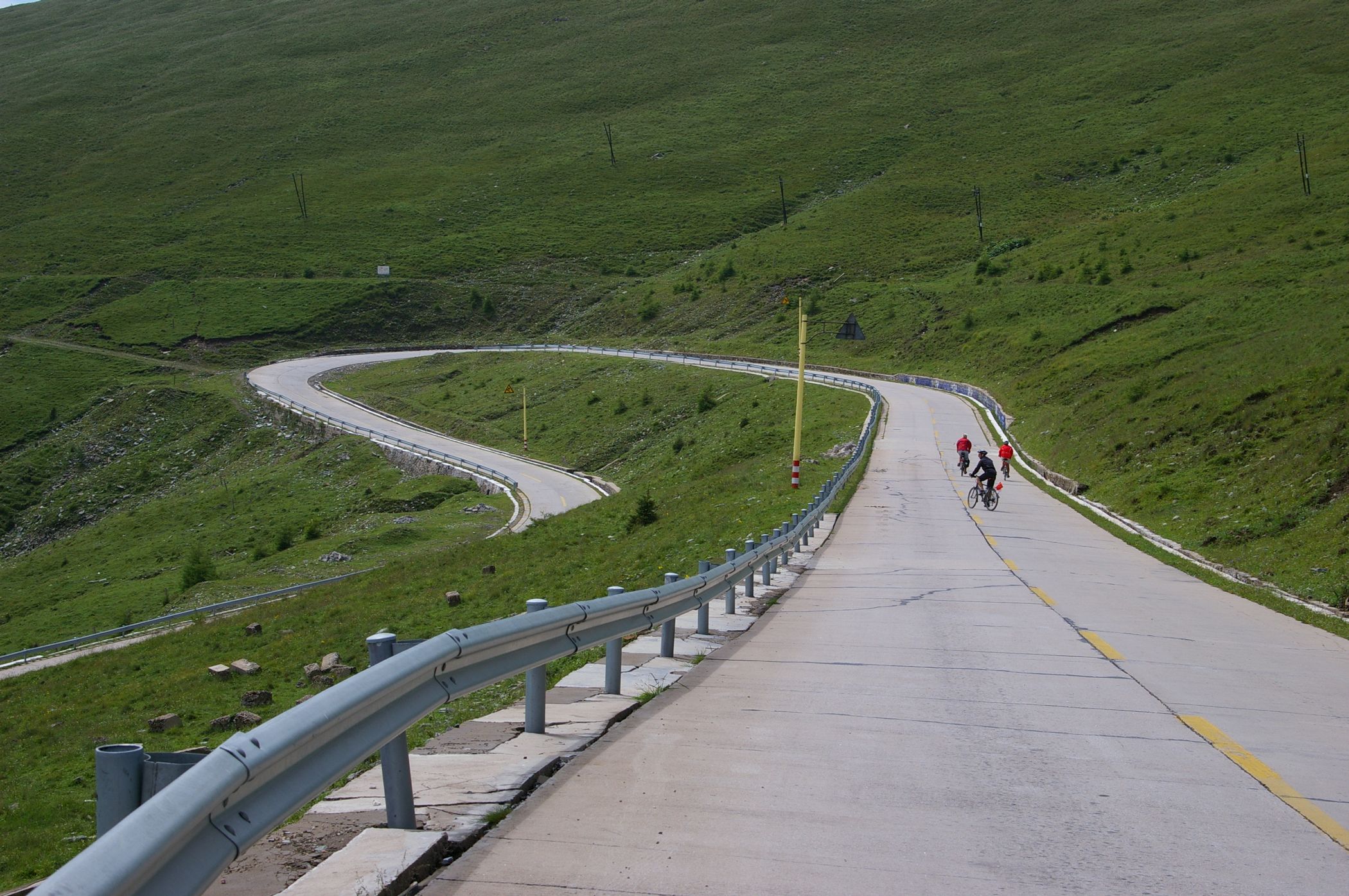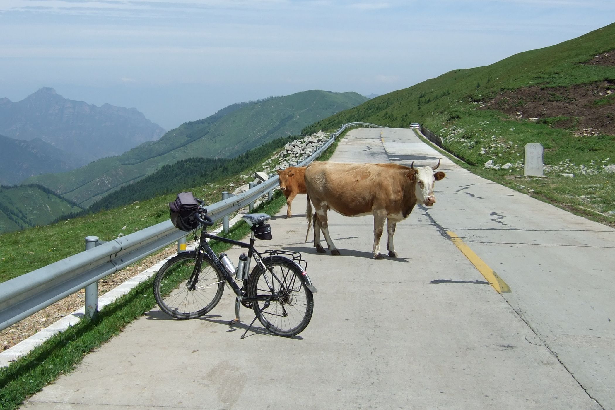 Da kamen heimische Gefühle auf: Der erste Pass führte uns durch eine Alpenlandschaft mit Edelweiss, Enzian, Tannen und Kuhherden. Starker Wind blies uns entweder förmlich den Berg hoch oder zwang uns zur Schrittgeschwindigkeit. Die ein oder andere wehte es sogar ganz vom Rad. Oben angekommenen sausten wir auch schon wieder 35 km ins nächste Tal. Dann wieder ein längerer Anstieg durch schönstes, terrassiertes und saftig grünes Lößgebiet.