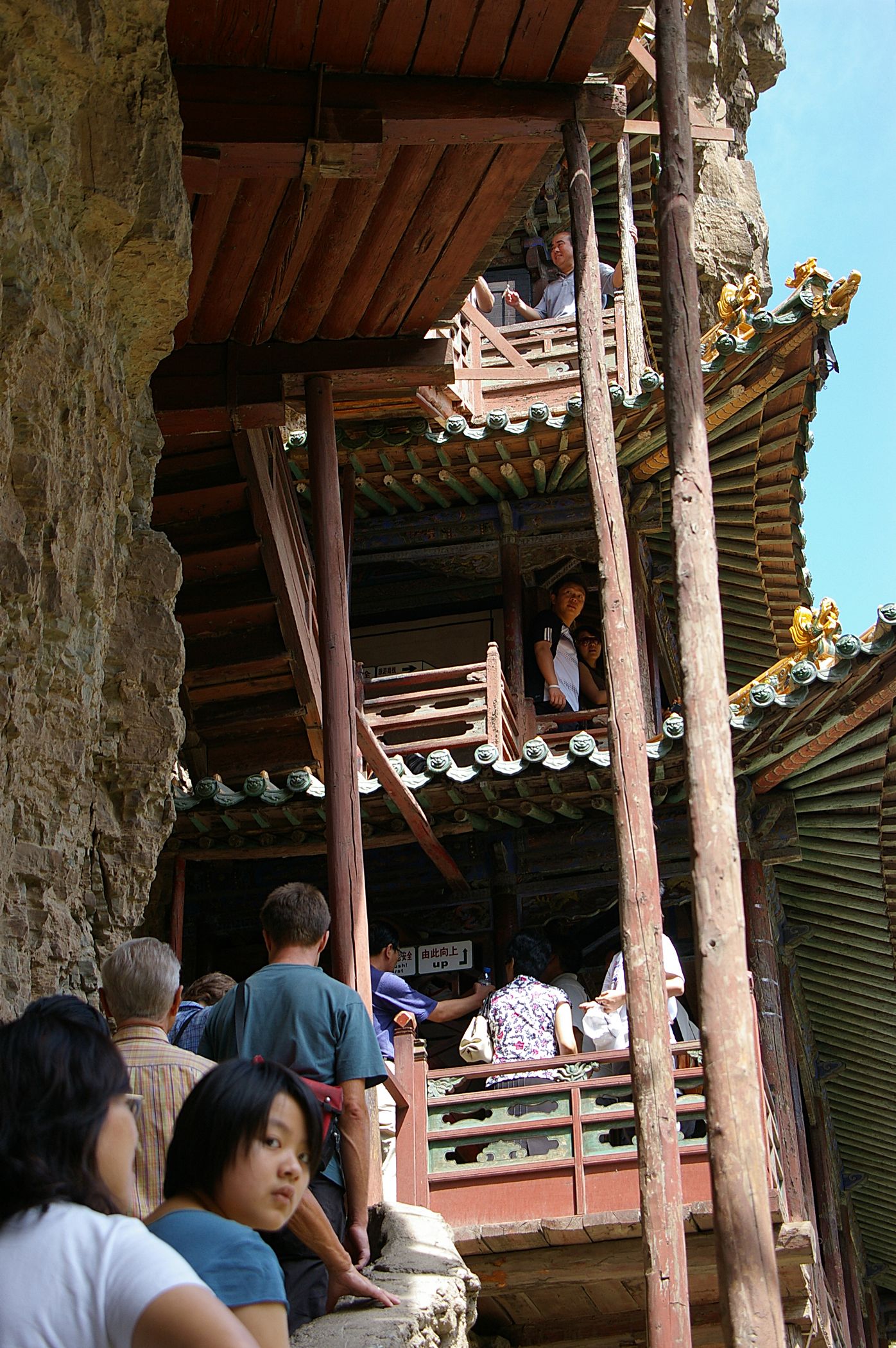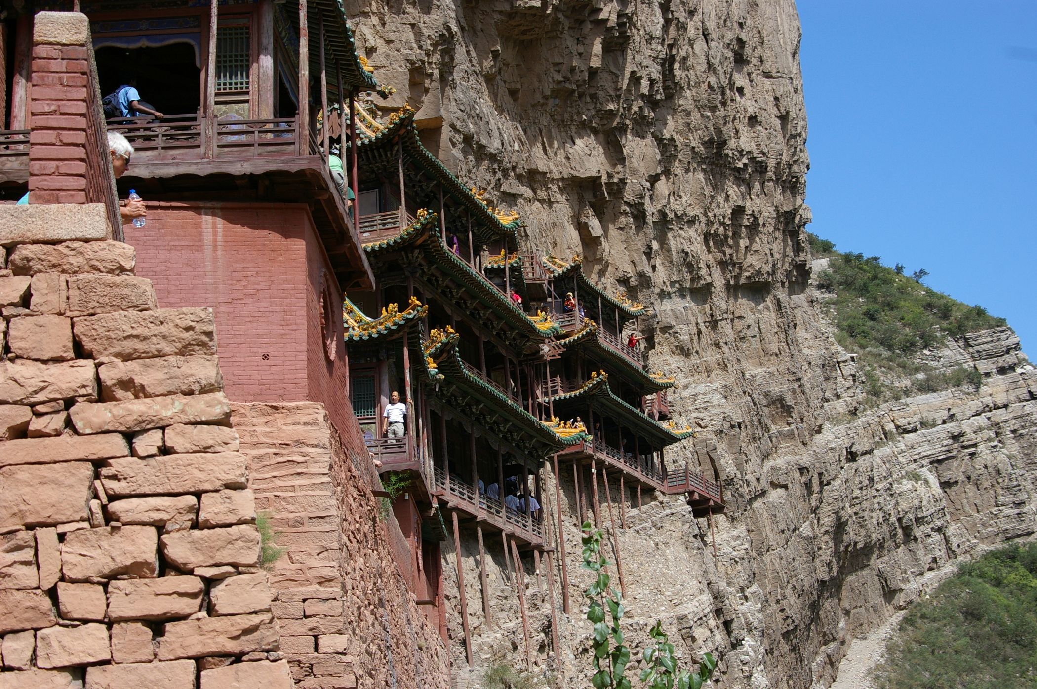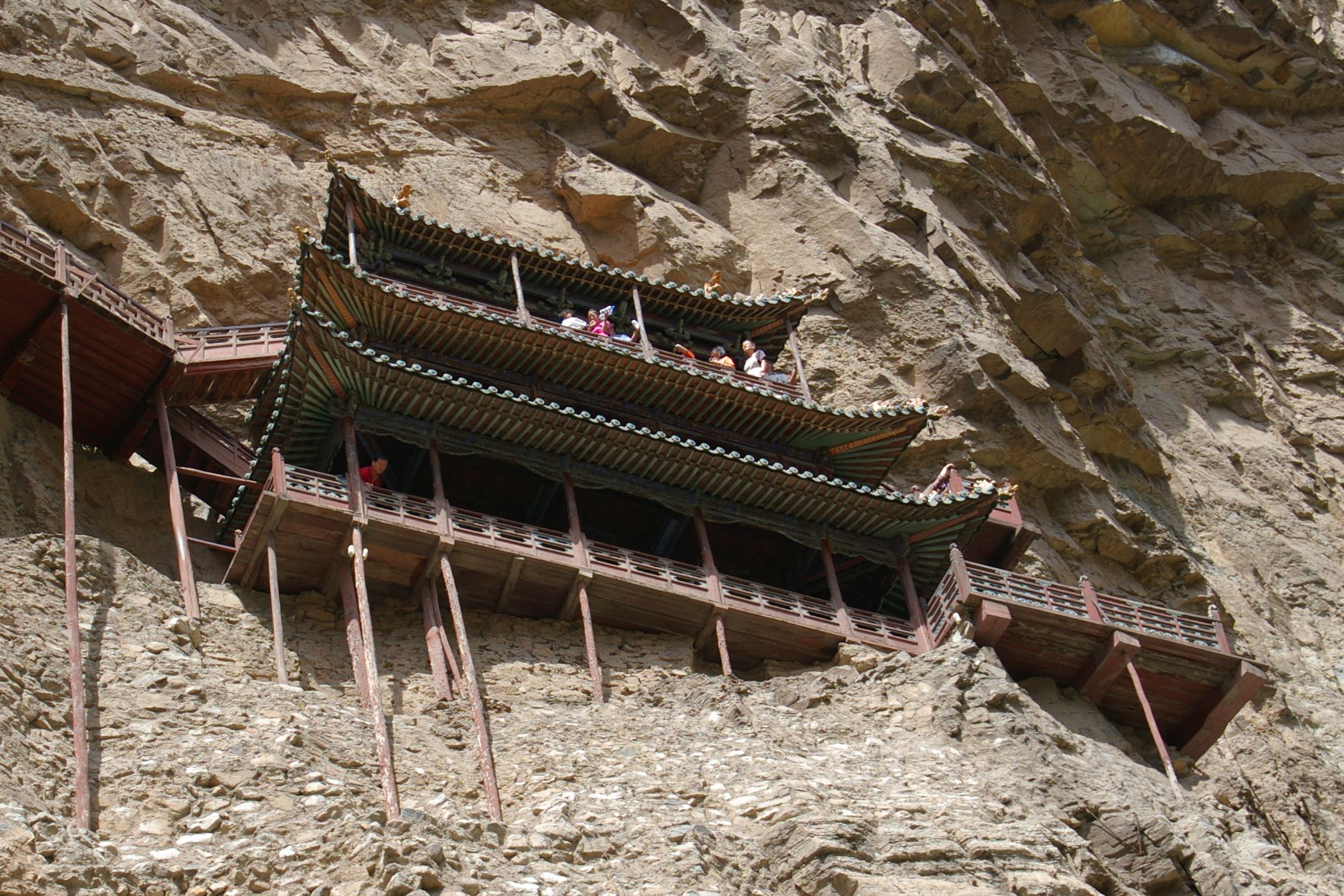 Nach der gestrigen Königsetappe wurde uns ein Ruhetag gegönnt, sogar ausschlafen durften wir: Frühstück gab´s erst um halb neun, dann ging es wahlweise per Rad oder Bus (letzterer war ziemlich voll ;)...) zu den "Hängenden Klöstern" - die nach mehrmaligen Überschwemmungen immer ein Stückchen höher wieder aufgebaut wurden, so dass sie nun auf der sicheren Seite sind. Die Besichtigung fand in schwindelerregender Höhe mit Geländer auf Kniekehlenhöhe statt - nichts für Leute mit Höhenangst. Mittags trieb uns (Helga, Peter, Anke und Hubert) der Hunger in die Stadt und wir bestellten per bebildeter Speisekarte unser Mahl. Heraus kamen undefinierbare Gerichte: Statt Auberginen gab es arme Wachteln, Statt Tintenfisch vermutlich Hammelpenis....mmmm, lecker!