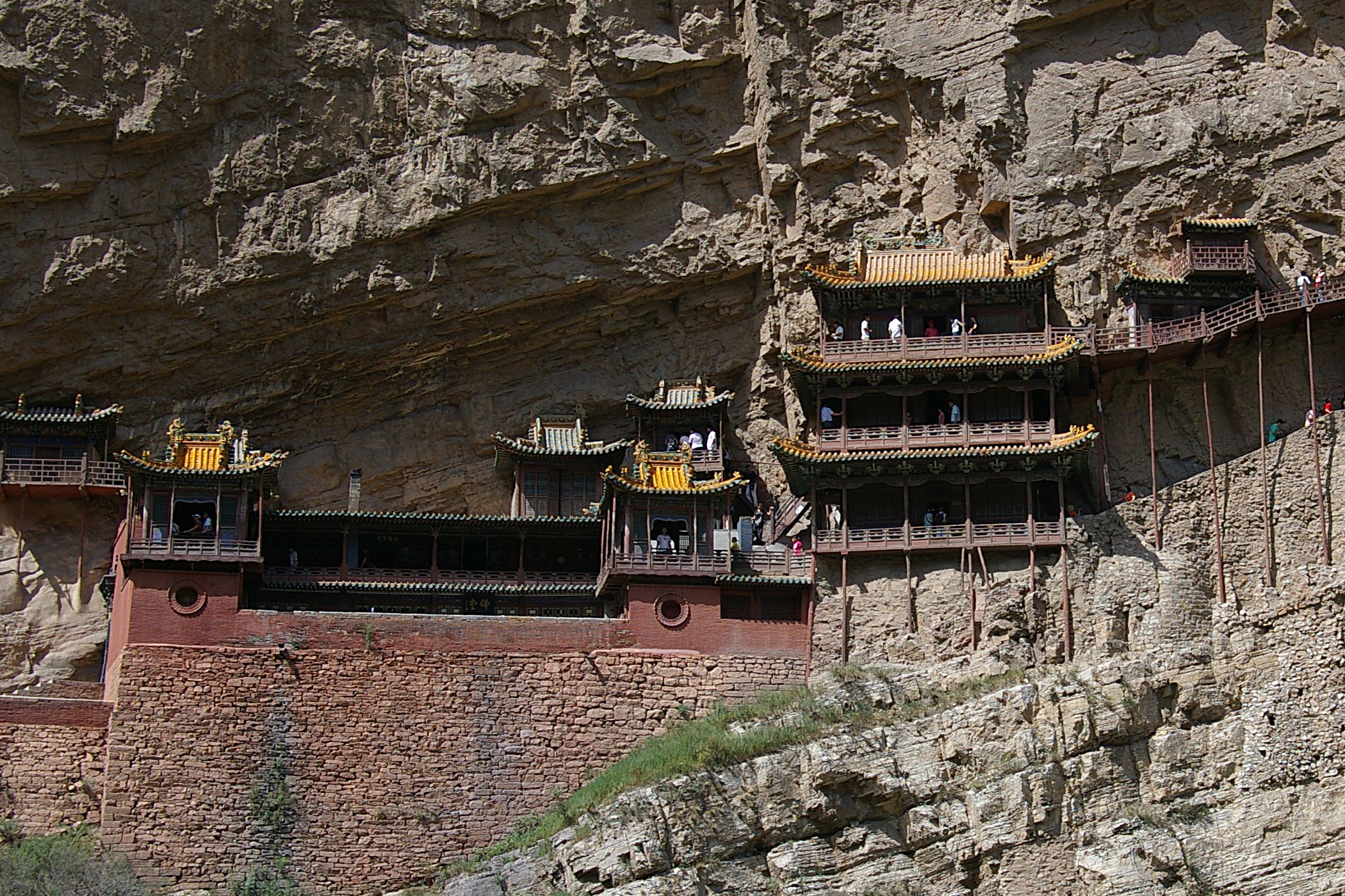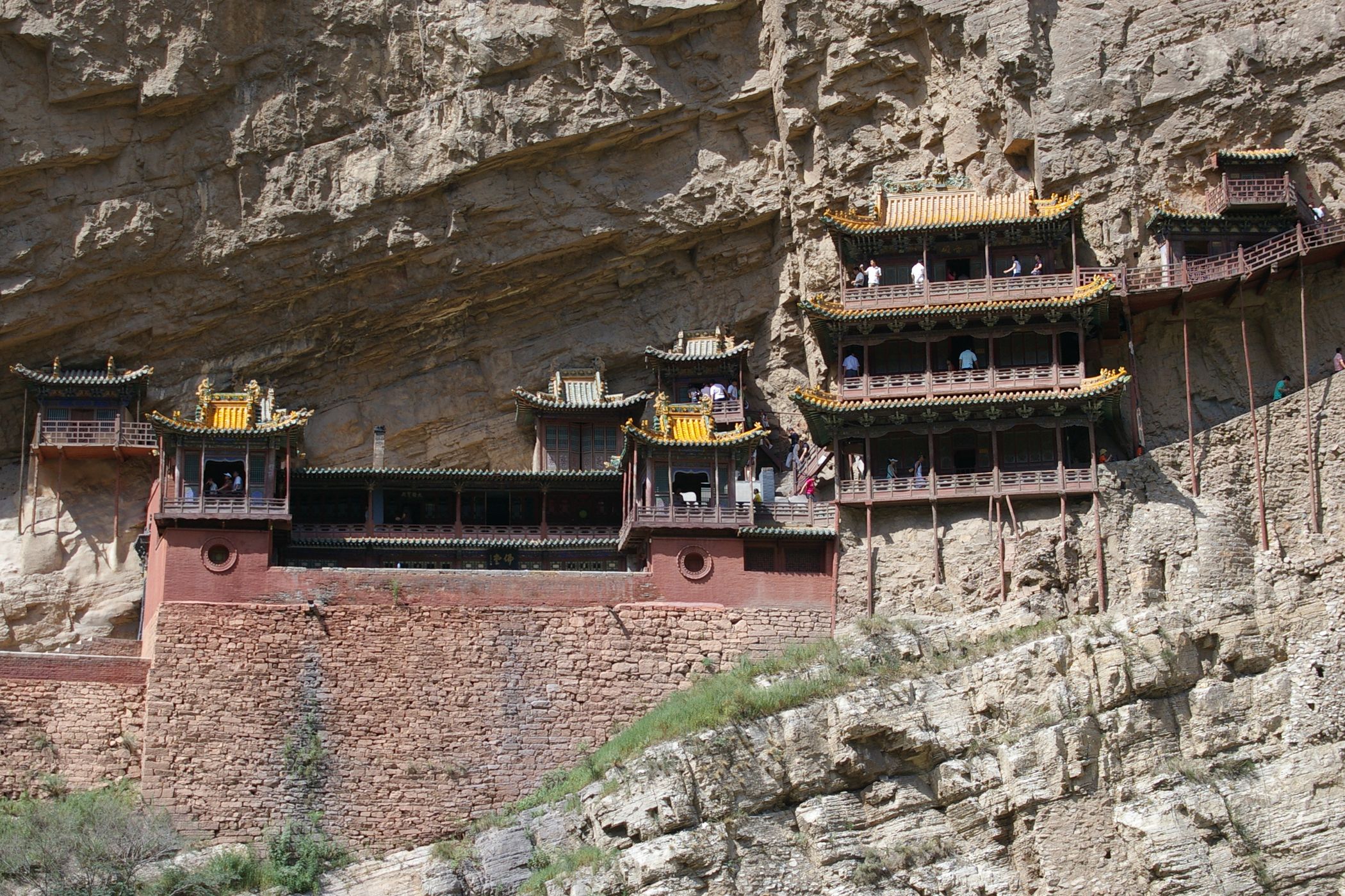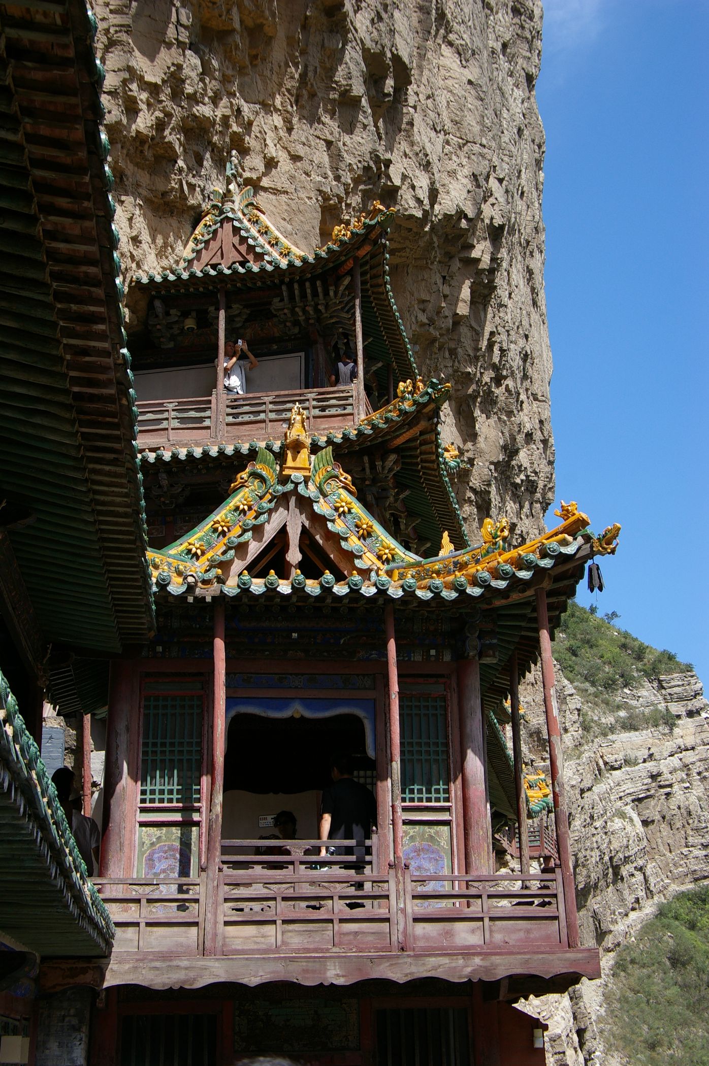 Nach der gestrigen Königsetappe wurde uns ein Ruhetag gegönnt, sogar ausschlafen durften wir: Frühstück gab´s erst um halb neun, dann ging es wahlweise per Rad oder Bus (letzterer war ziemlich voll ;)...) zu den "Hängenden Klöstern" - die nach mehrmaligen Überschwemmungen immer ein Stückchen höher wieder aufgebaut wurden, so dass sie nun auf der sicheren Seite sind. Die Besichtigung fand in schwindelerregender Höhe mit Geländer auf Kniekehlenhöhe statt - nichts für Leute mit Höhenangst. Mittags trieb uns (Helga, Peter, Anke und Hubert) der Hunger in die Stadt und wir bestellten per bebildeter Speisekarte unser Mahl. Heraus kamen undefinierbare Gerichte: Statt Auberginen gab es arme Wachteln, Statt Tintenfisch vermutlich Hammelpenis....mmmm, lecker!
