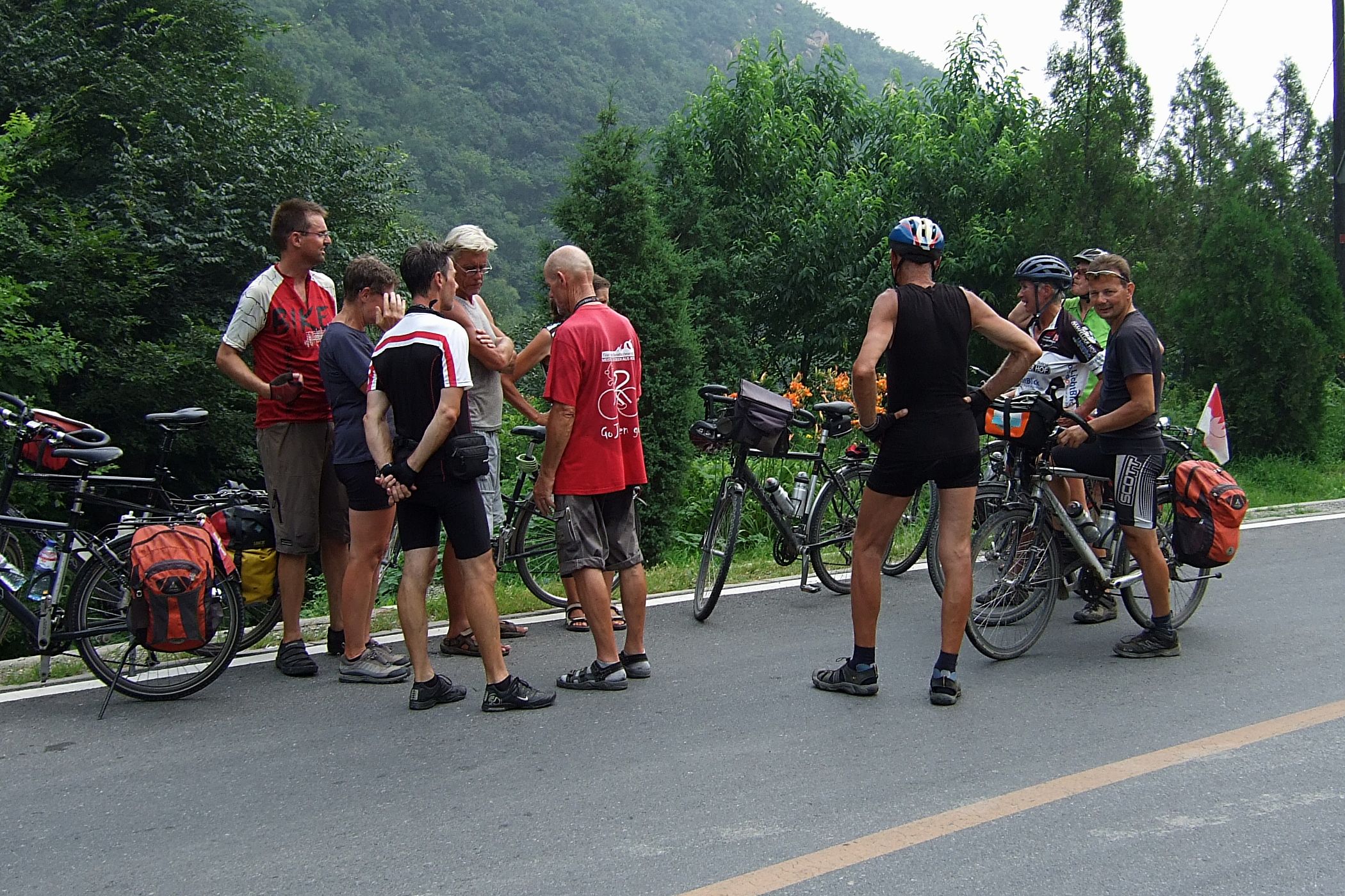 "Einfach nur Ausrollen", sagte Volker am morgen bei der Streckenbeschreibung. Ganz so einfach war es dann doch nicht, ein paar kleine Hügel und rund 80 Kilometer sind es doch geworden. Die erwarteten strengen Polizeikontrollen waren dann doch nicht ganz so schlimm, ganz im Gegenteil: Bis auf eine Kontrolle am Tagesanfang war dann nichts mehr. Das Weiterkommen unterbrechen wir nur durch eine Mittagspause in einem kleinem Gasthaus direkt an einem Fluss. Hier warten wir die größte Hitze ab und rollen unserem letzten Radtag entgegen.