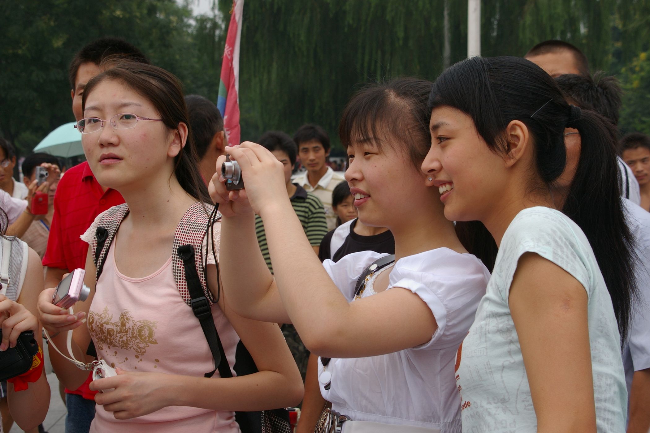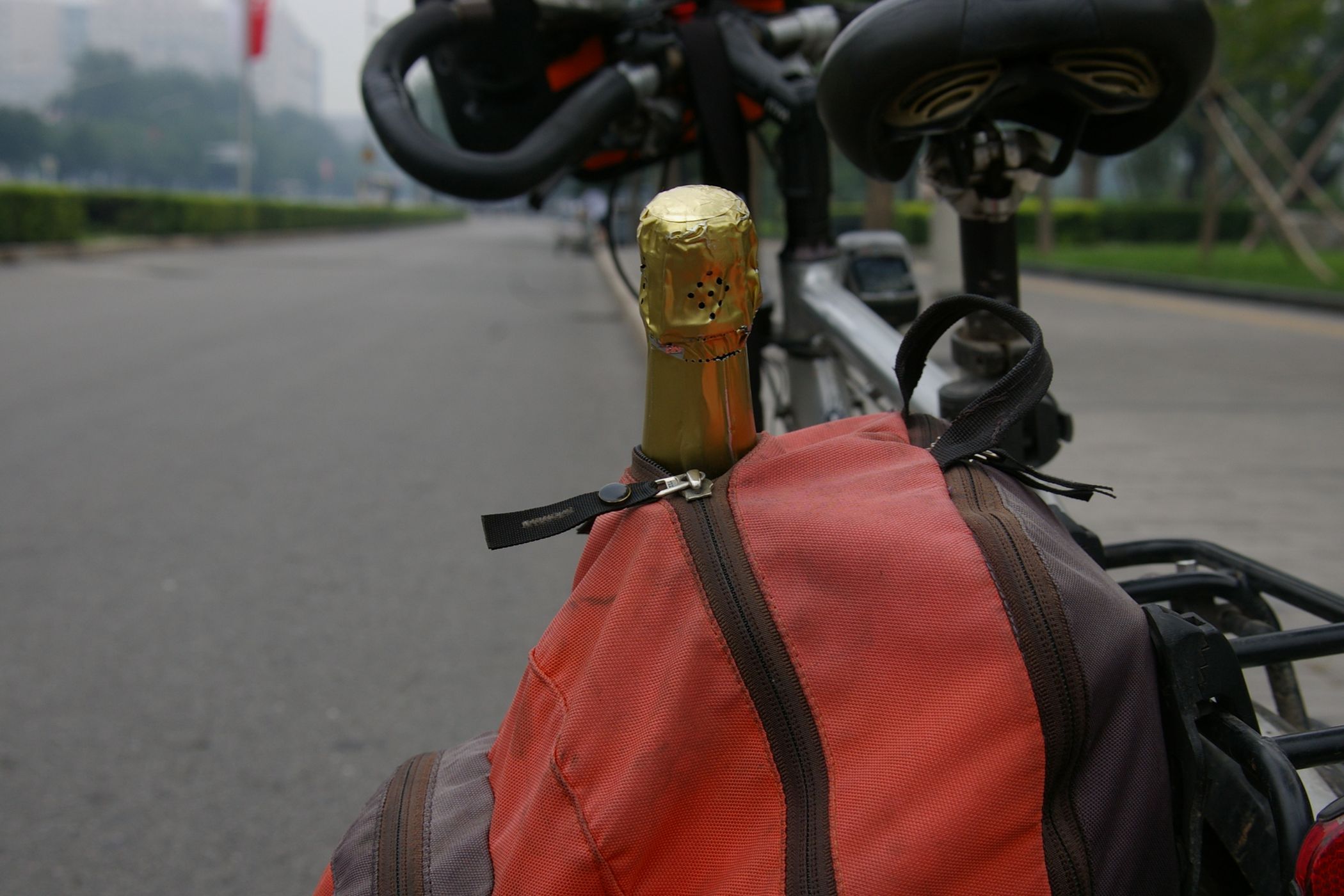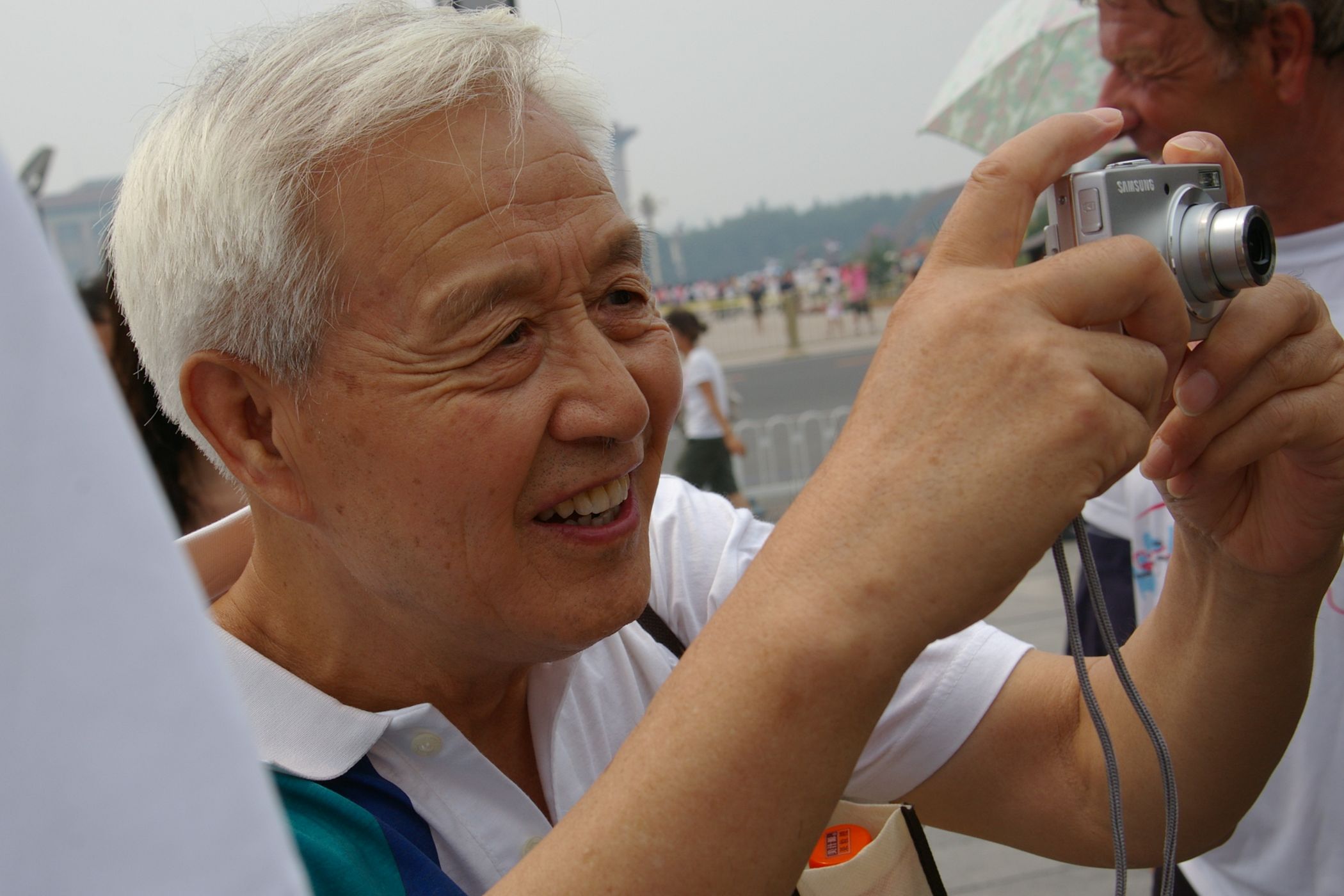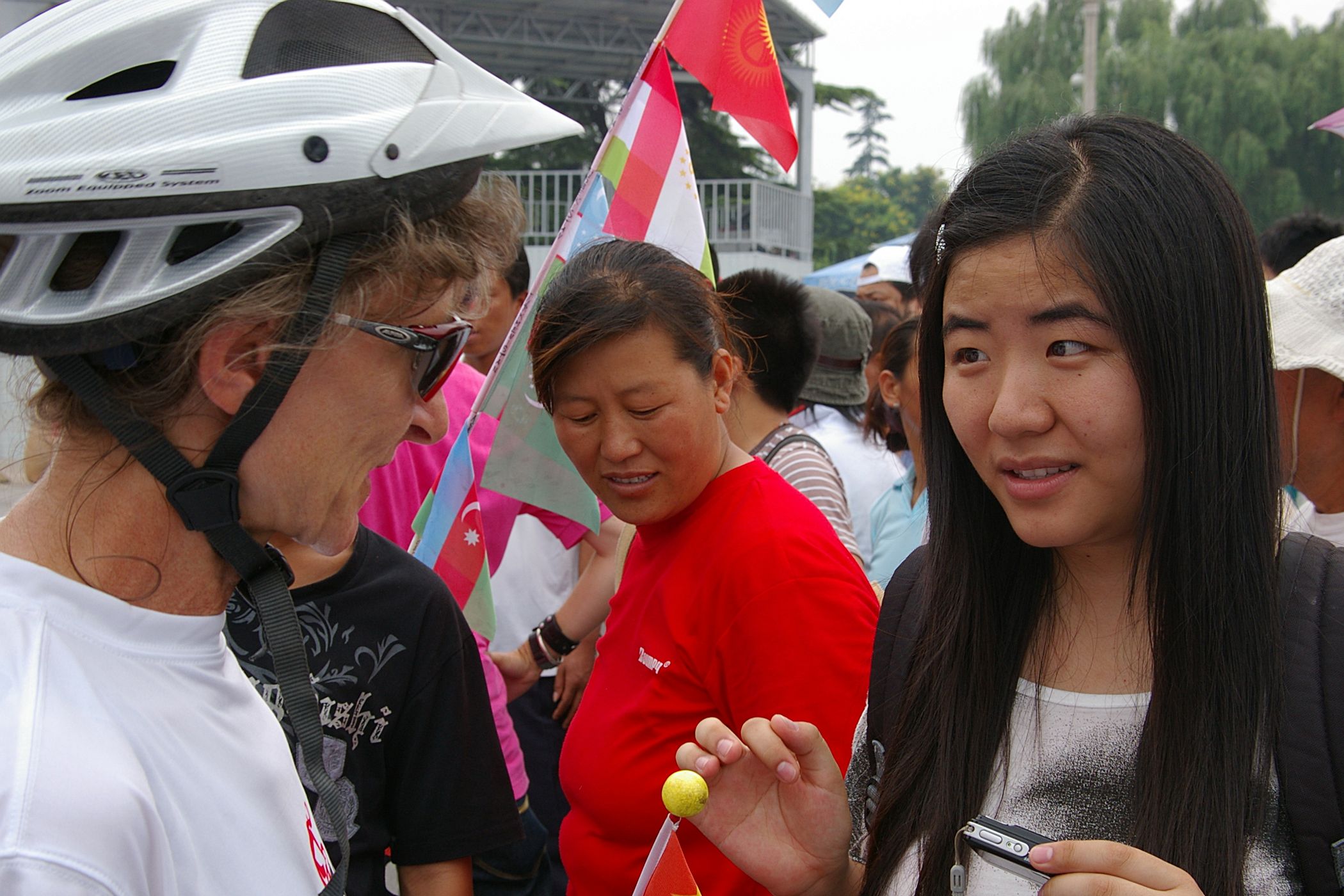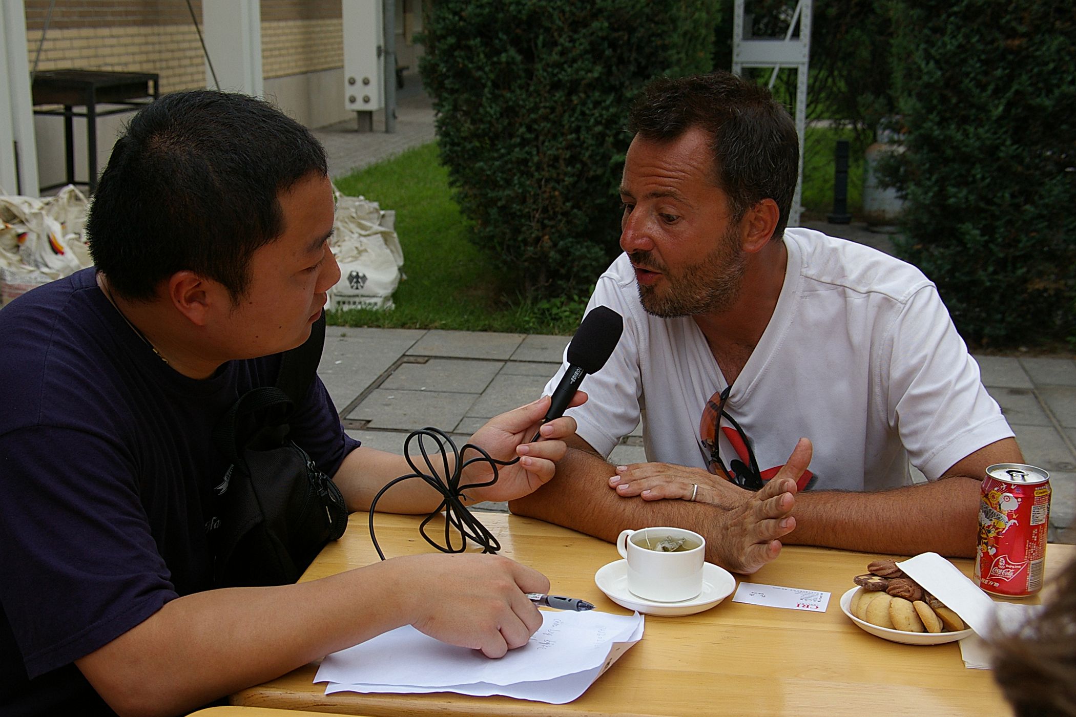 Tag der Ankunft in Peking. Nur ein kurzes Stück verbleibt noch bis zum Ziel. In unseren T-Shirts oder in einem weissen China-by-Bike machen wir als Radgruppe richtig was her. Wenig Verkehr, breite Straßen und das Gefühl es geschafft zu haben lassen uns die letzten Kilometern richtig genussvoll radeln. Wir fahren in unseren schönen T-Shirts durch die Straßen Pekings und erreichen als erstes am "Platz-des-himmlischen-Friedens" den Olympia-Count-Down. Dort stoßen wir neben dem ARD und NDR Team vor allem auf eine begeisterte und interessierte Menge. Zahlreiche Fotos werden geschossen, aber nicht nur von unseren Kameras: sehr viele Chinesen ziehen Ihre Handy-Kamera und lassen sich mit uns mit viel Spaß fotografieren. Der mitgebrachte Sekt wird aufgeschossen und wie bei einem Formel 1 Rennen in die Menge geschäumt. Jetzt haben wir unsere Ziel nun endgültig erreicht, die Freude ist groß. Aber die Begeisterung der Bevölkerung ist großartig und die Stimmung ist wirklich toll. Unsere nächster Punkt ist der Platz vor dem berühmten Mao Bild. Auch hier werden Fotos mit der begeisterten Menge geschossen. Wieder erwarten haben wir, trotz höchster Sicherheitsvorkehrungen seitens der Behörden, keinerlei Probleme dadurch, das wir hier einen gewaltigen Auflauf provozieren. Danach geht es zur deutschen Botschaft, wo auch die Leute der Busreise von Athen nach Peking eintreffen. Der Botschafter empfängt uns mit einer kurzen Rede und danach geht es in den Gastgarten mit Keksen und Getränken. Danach wollen wir nur noch ins Hotel, der Tag war anstrengend, weil es war nicht nur ein ereignisreicher sondern auch ein besonders heißer Tag.