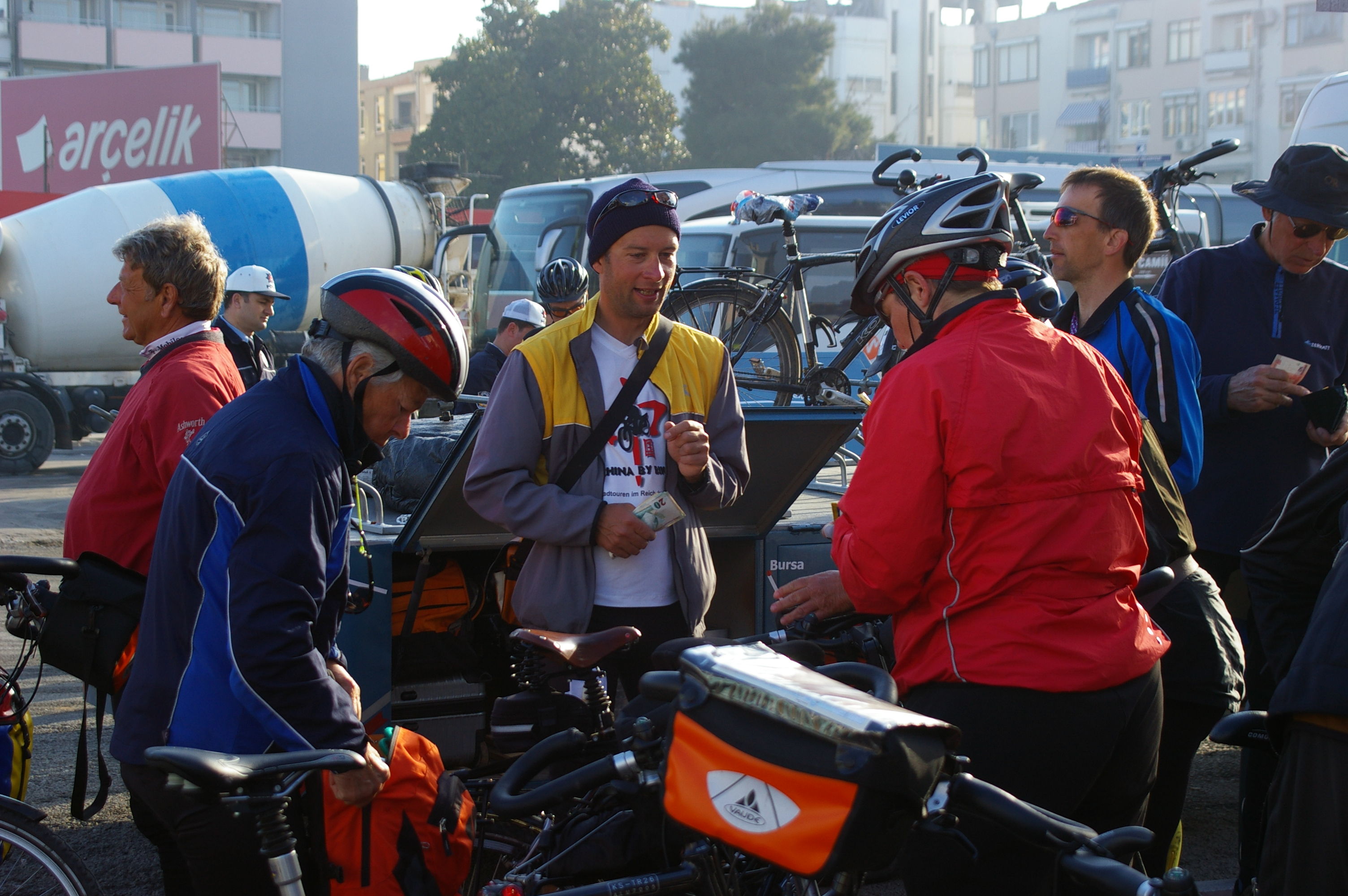 Am heutigen Tag steht hauptsächlich die Besichtigung von Troja am Programm. Von Canakkale geht's es ca. 30 km nach Süden, wo wir von einem erfahrenen Fremdenführer durch die 7 Schichten Troja's geleitet werden. Mittags lädt Cezmi Belik, unser türkischer Reiseleiter, uns zu seiner Familie in einem kleinen Bauernhof ein. Es werden hausgemachte türkische Spezialitäten aufgewartet, die wir bis zum letzten Stück verzehren, sie sind wirklich hervorragend. Am Rückweg fahren wir über kleine Nebenstraßen durch die Landschaft, da stört auch die Polizeibegleitung nicht. Zu Mittag machen wir wieder eine kleine Fragestunde, wo jeder seine Probleme mit der Reise darlegen sollte. Erfreulicherweise sind fast alle mit dem Verlauf der Reise recht zufrieden, Tom appelliert an mehr Gelassenheit um unnötigen Ärger zu vermeiden. Einer der gemeinsamen Kritikpunkte betrifft in erster Linie den Umgangston, Verbesserung ist hier wohl notwendig. Auf der letzten Etappe fahren wir mit einem lokalen Jugendradclub gemeinsam. Da der Sportsgeist mit Tom, Frank, Richard, Rene und mir durchgeht wird es eine kleine Wettfahrt. Wir fahren die hügelige Strecke von 37 km mit einem Schnitt von 33 km/h, es hat jedenfalls richtig Spaß gemacht.
