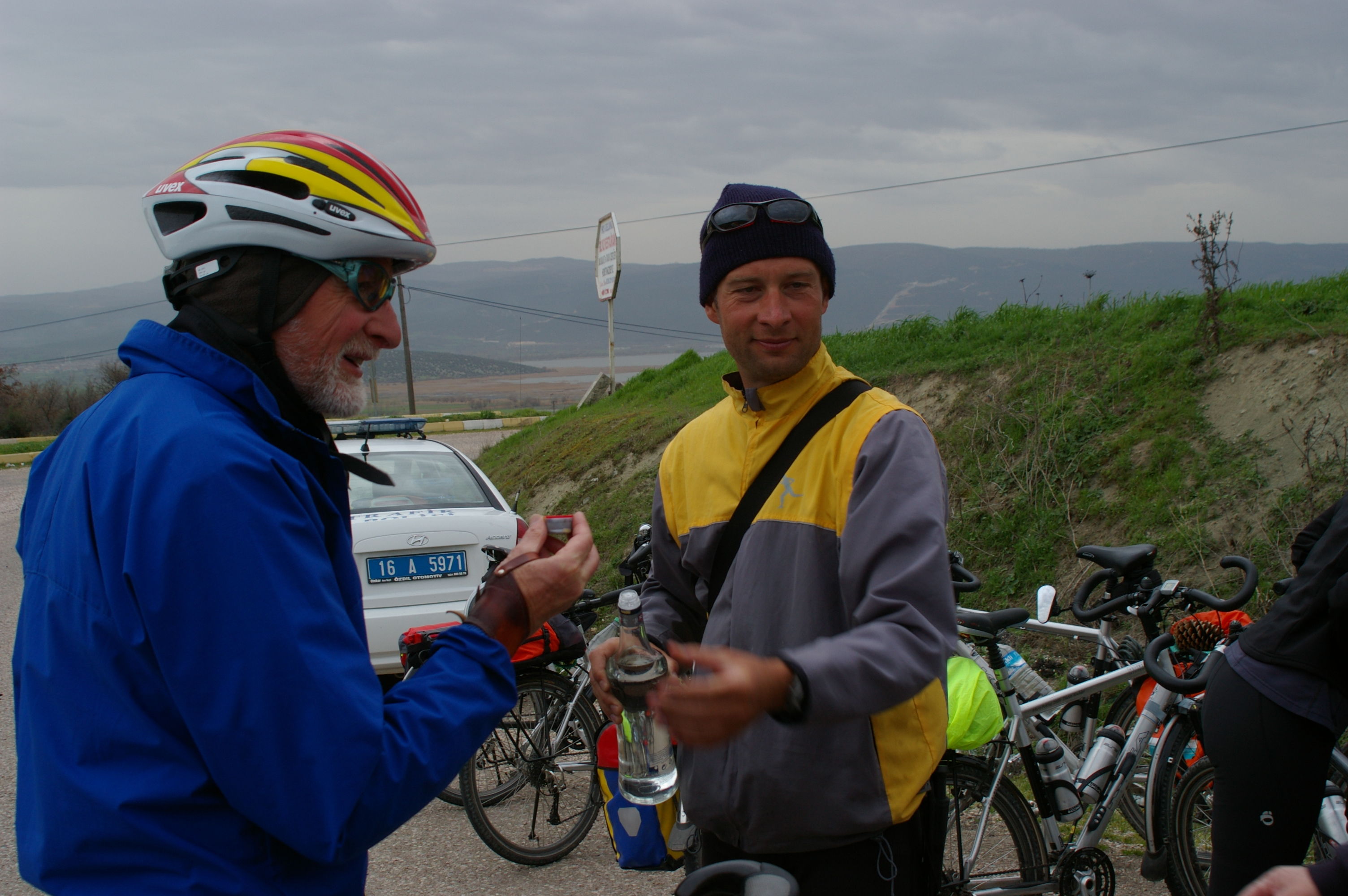 Weiter geht es Richtung Peking. Das Wetter sieht morgens nach Regen aus, es tröpfelt auch ein wenig, aber letzen Endes bleiben wir trocken. Auch der heutige Tag steht unter dem Motto "Kilometerfressen". Das Fahren auf der Hauptstrasse ist recht mühsam und eintönig, der Strassenbelag ist schlecht, man wird geschüttelt, die Trassen sind of schnurgerade, Hügel rauf, Hügel runter. Knapp vor dem Ziel gab es aber dennoch etwas zu feiern: Wir überschreiten die 2000 km Grenze. Die Stadteinfahrt von Bursa wird von zahlreichen Journalisten und Kamerateams belagert. Richard und Frank werden vom türkischen Fernsehen interviewt. Unser Hotel: Holyday Inn. Es erwartet uns im 5-Sterne Hotel ein reichhaltiges Buffet, schöne grosse Zimmer und saftige Minibar-Preise.