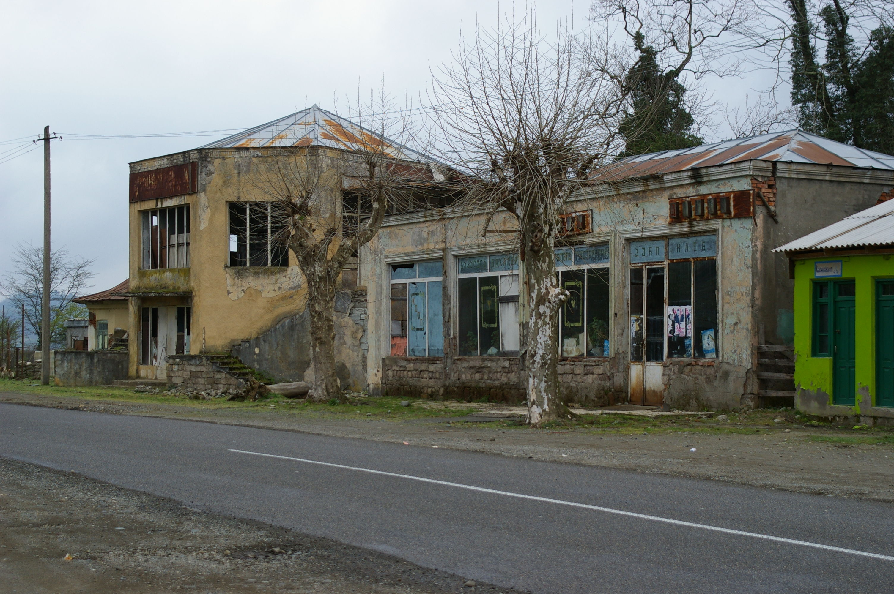 In dem Gästehaus gibt es ein gutes Frühstück, nicht alle von uns sind bester Laune weil es recht kalt war. Auf dem Weg nach Kutaissi fahren wir durch schöne Landschaft aber der gesamte Eindruck ist eher bedrückend, weil fast alle Gebäude, Infrastruktureinrichtungen, Reste von Fabriken in mehr oder weniger fortgeschrittenem Verfallszustand sind. Die Lebensituation der Menschen hier ist schwierig. Gestern hatte uns der Gastgeber erläutert, das seit der Unabhängigkeit der Hauptabnehmer Russland nichts mehr kauft, und damals ca 90% der Produktion exportiert wurden. Auf dem Weg ans Tagesziel sehen wir zahllose Indizien des Verfalls. Verwilderte Teeplantagen, leere verfallende Fabriken, schlechter Zustand der Wohnhäuser und vieles mehr. Hier ist wirklich viel zu tun, wie auch immer ein Neustart aussehen könnte. Unterwegs haben wir heute leider zu viel Zeit vertrödelt, so dass für die Stadtbesichtigung in Kutaisi keine Zeit bleibt.