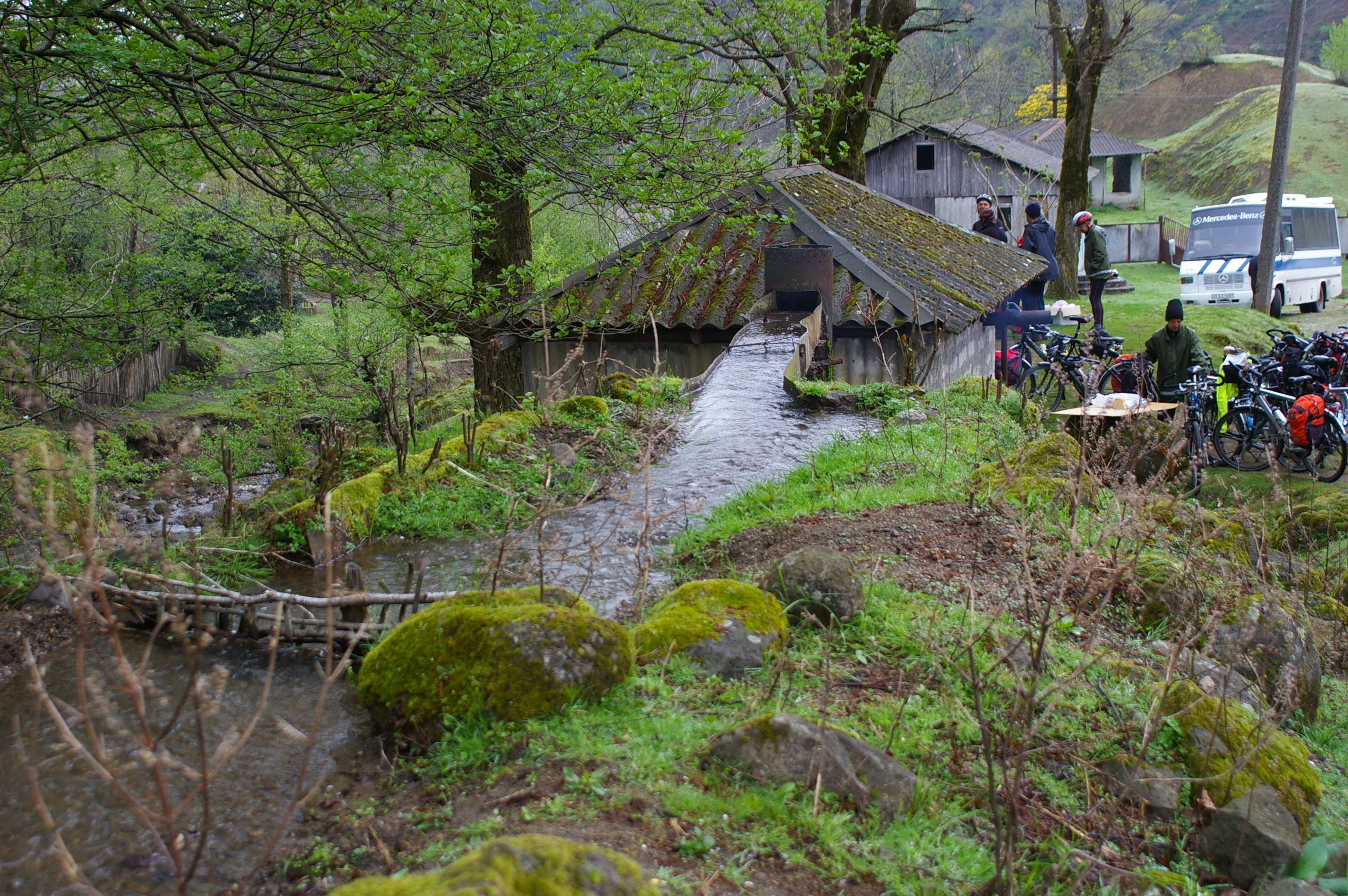 In dem Gästehaus gibt es ein gutes Frühstück, nicht alle von uns sind bester Laune weil es recht kalt war. Auf dem Weg nach Kutaissi fahren wir durch schöne Landschaft aber der gesamte Eindruck ist eher bedrückend, weil fast alle Gebäude, Infrastruktureinrichtungen, Reste von Fabriken in mehr oder weniger fortgeschrittenem Verfallszustand sind. Die Lebensituation der Menschen hier ist schwierig. Gestern hatte uns der Gastgeber erläutert, das seit der Unabhängigkeit der Hauptabnehmer Russland nichts mehr kauft, und damals ca 90% der Produktion exportiert wurden. Auf dem Weg ans Tagesziel sehen wir zahllose Indizien des Verfalls. Verwilderte Teeplantagen, leere verfallende Fabriken, schlechter Zustand der Wohnhäuser und vieles mehr. Hier ist wirklich viel zu tun, wie auch immer ein Neustart aussehen könnte. Unterwegs haben wir heute leider zu viel Zeit vertrödelt, so dass für die Stadtbesichtigung in Kutaisi keine Zeit geblieben ist.