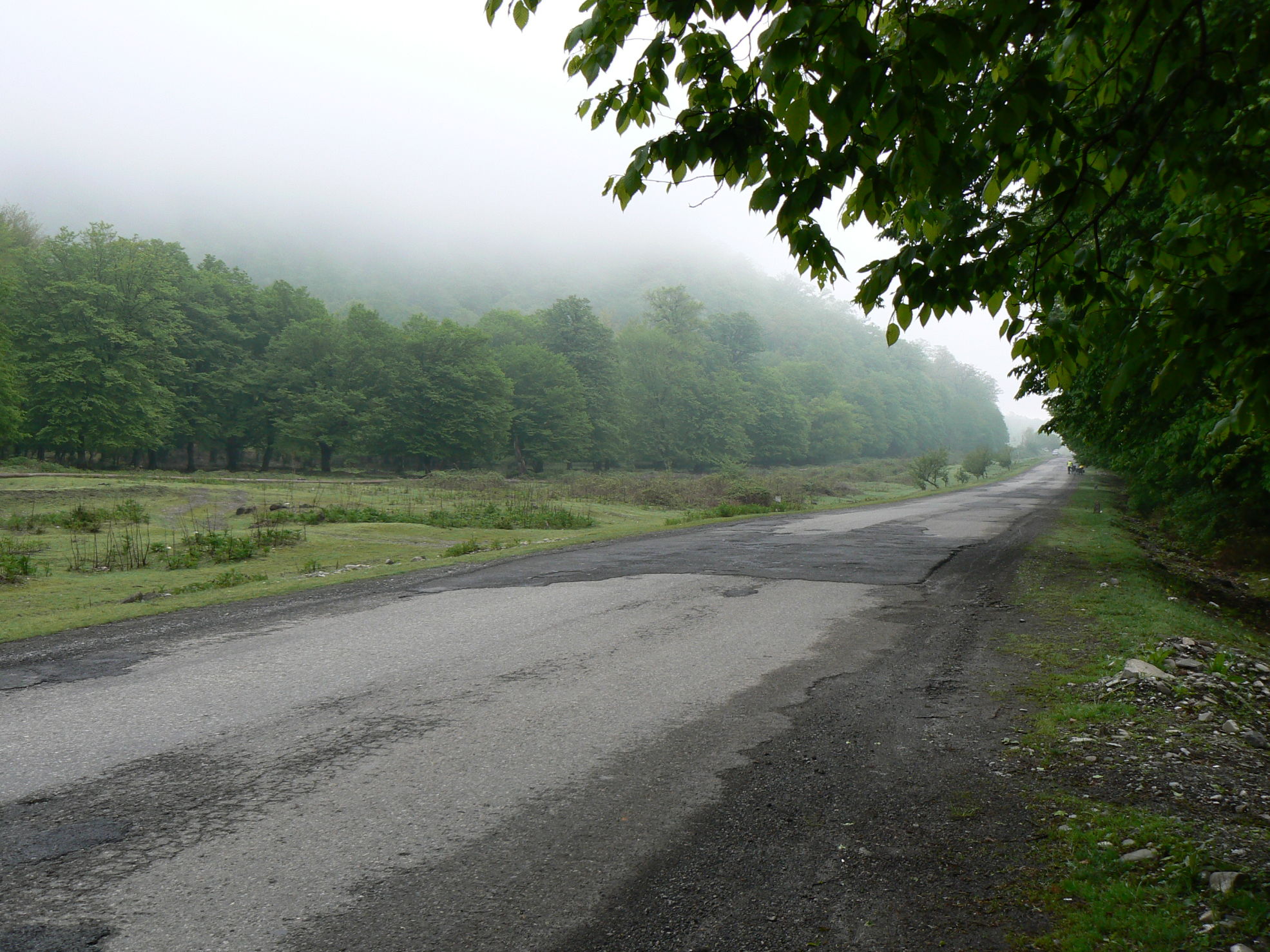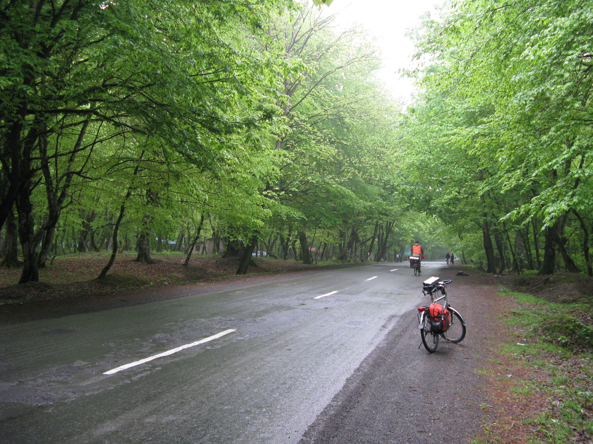 Abfahr im Nebel, der Nebel löst sich auf aber es bleibt wolkig. Durch Heinbuchenwälder und über zwei Pässe haben wir einen anstrengenden Tag. Wir treffen unterwegs eine Schwedin, die alleine von Schweden nach Baku mit dem Fahrrad reist, und sich bis Baku unserer Gruppe anschloss. Wir übernachten im Olympic Center, das passt gut zu unserem Motto.
