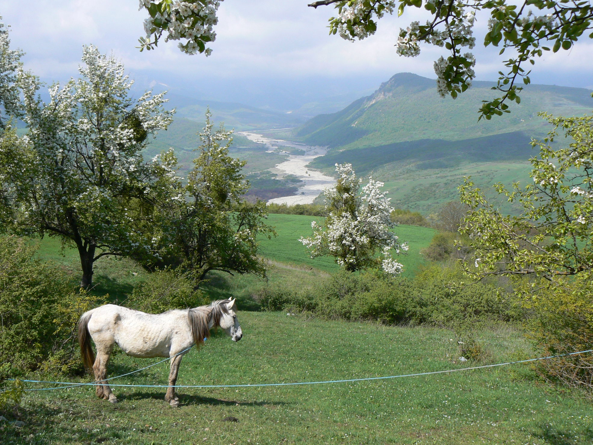 Abfahr im Nebel, der Nebel löst sich auf aber es bleibt wolkig. Durch Heinbuchenwälder und über zwei Pässe haben wir einen anstrengenden Tag. Wir treffen unterwegs eine Schwedin, die alleine von Schweden nach Baku mit dem Fahrrad reist, und sich bis Baku unserer Gruppe anschloss. Wir übernachten im Olympic Center, das passt gut zum Motto unsere Reise.
