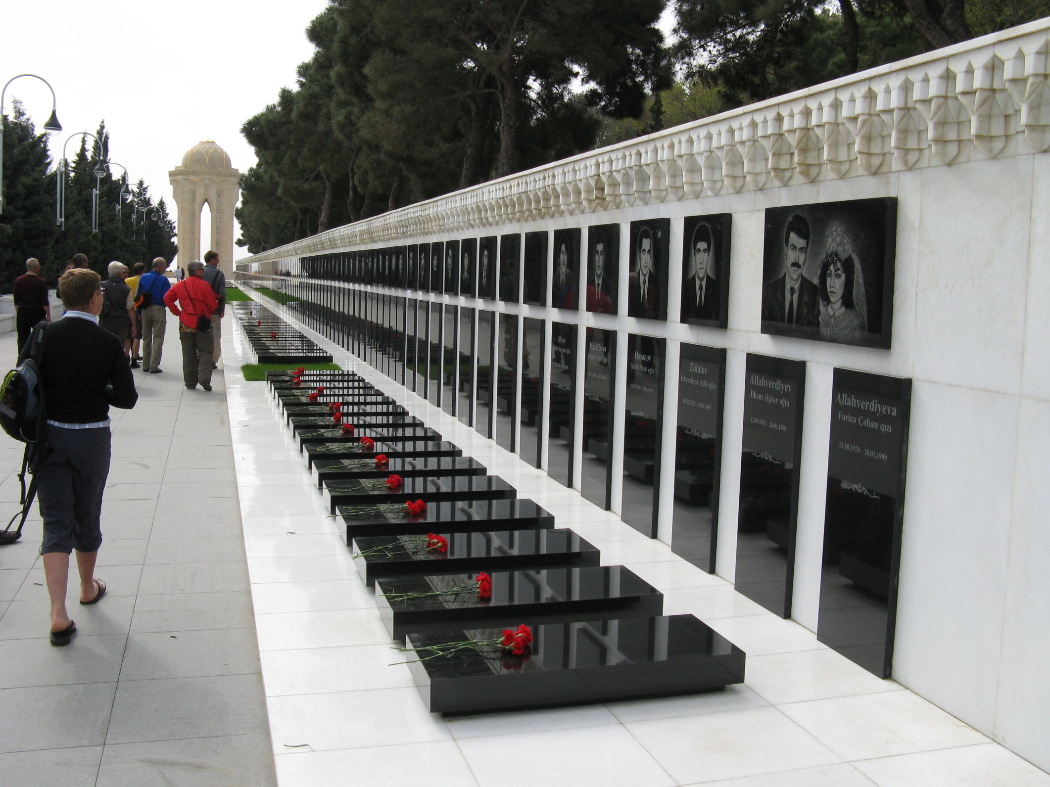 Der heutige Ruhetag steht im Zeichen der Stadtbesichtigung. In der Früh ist es noch kühl, später zieht Nebelfetzen vom Kaspischen Meer über die Stadt. Am Besichtigungsprogramm stehen die Unabhängikeitsgedächtnisstätte, die Altstadt mit Stadtmauer, Museum, die Altstadt und der Basar. Im Basar wurde Kaviar für das Abendessen gekauft.
