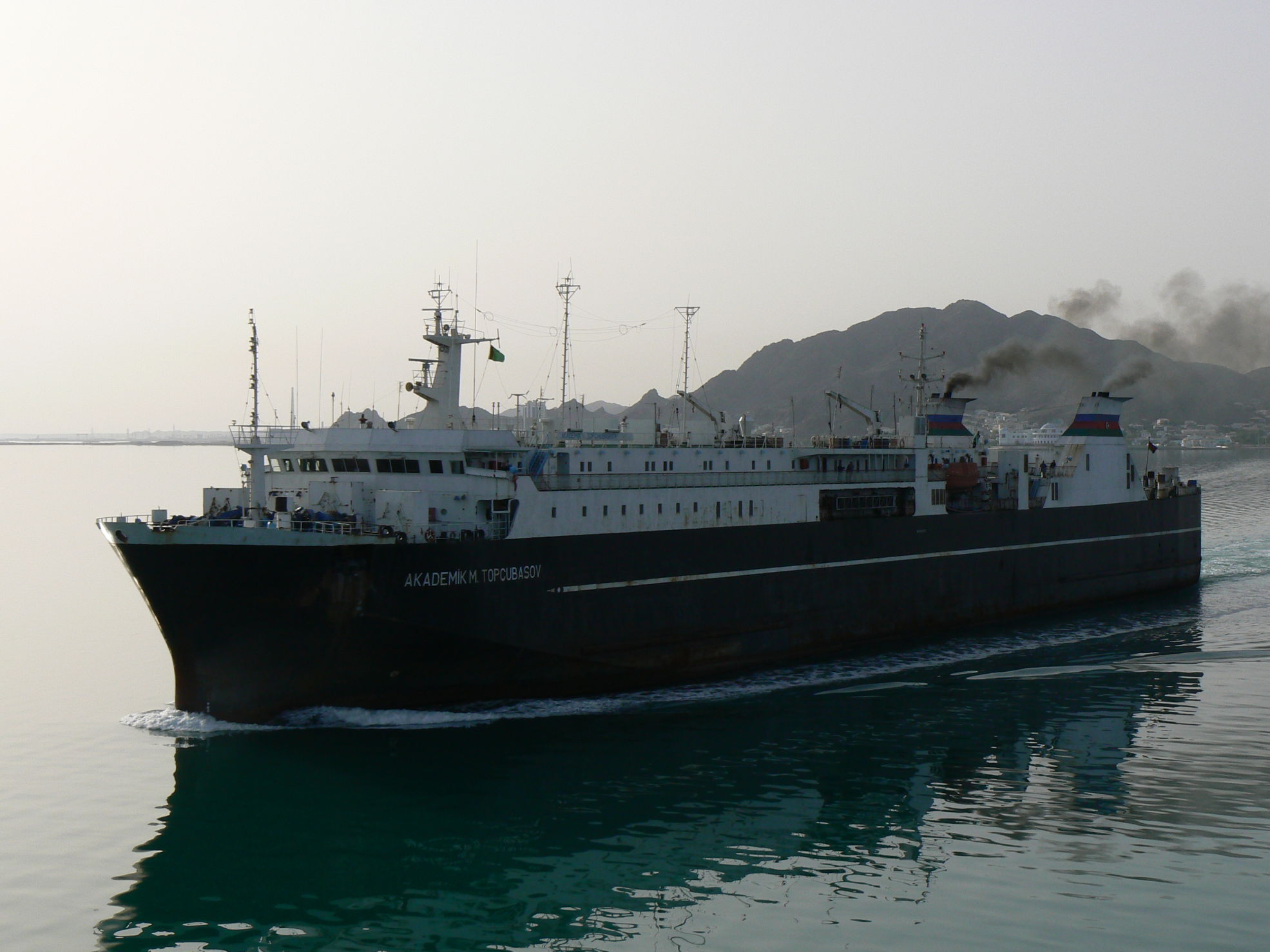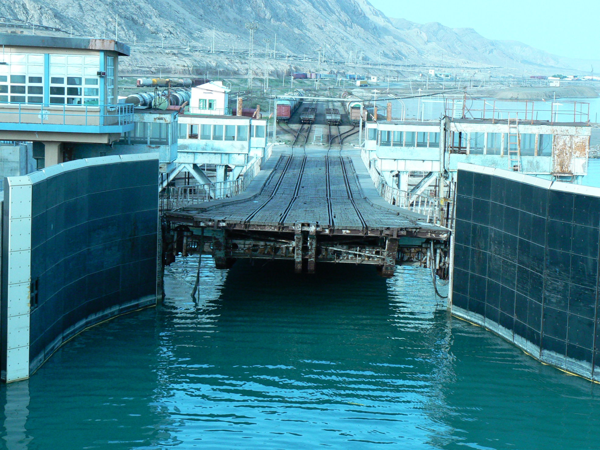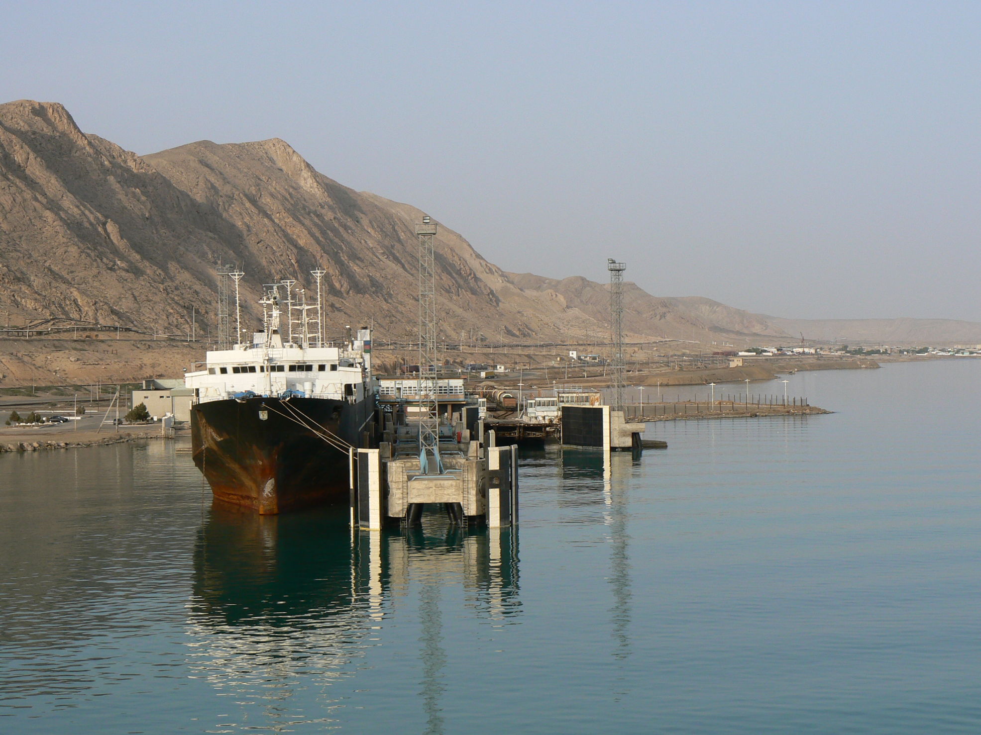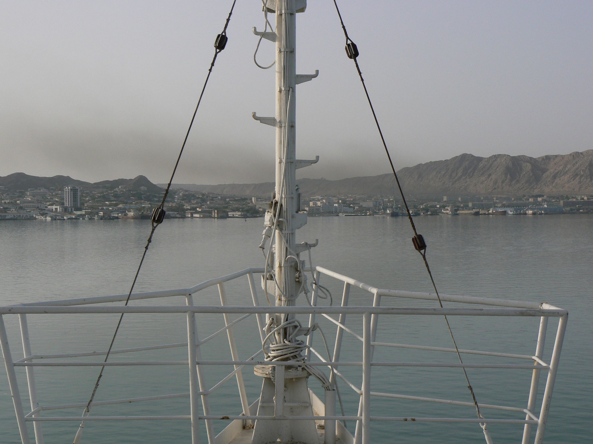 Ankunft in Turkmenbashi um 14 Uhr, Einfahrt in den Hafen um 19:00, eine lange Wartezeit weil die abgehende Fähre noch nicht starten konnte. Die Zollabfertigung dauert noch bis 23:30 dann noch 9 km bis zum Hotel in Dunkelheit aber mit Polizeibegleitung, im Hotel dann noch eine lange Eincheckprocedure.