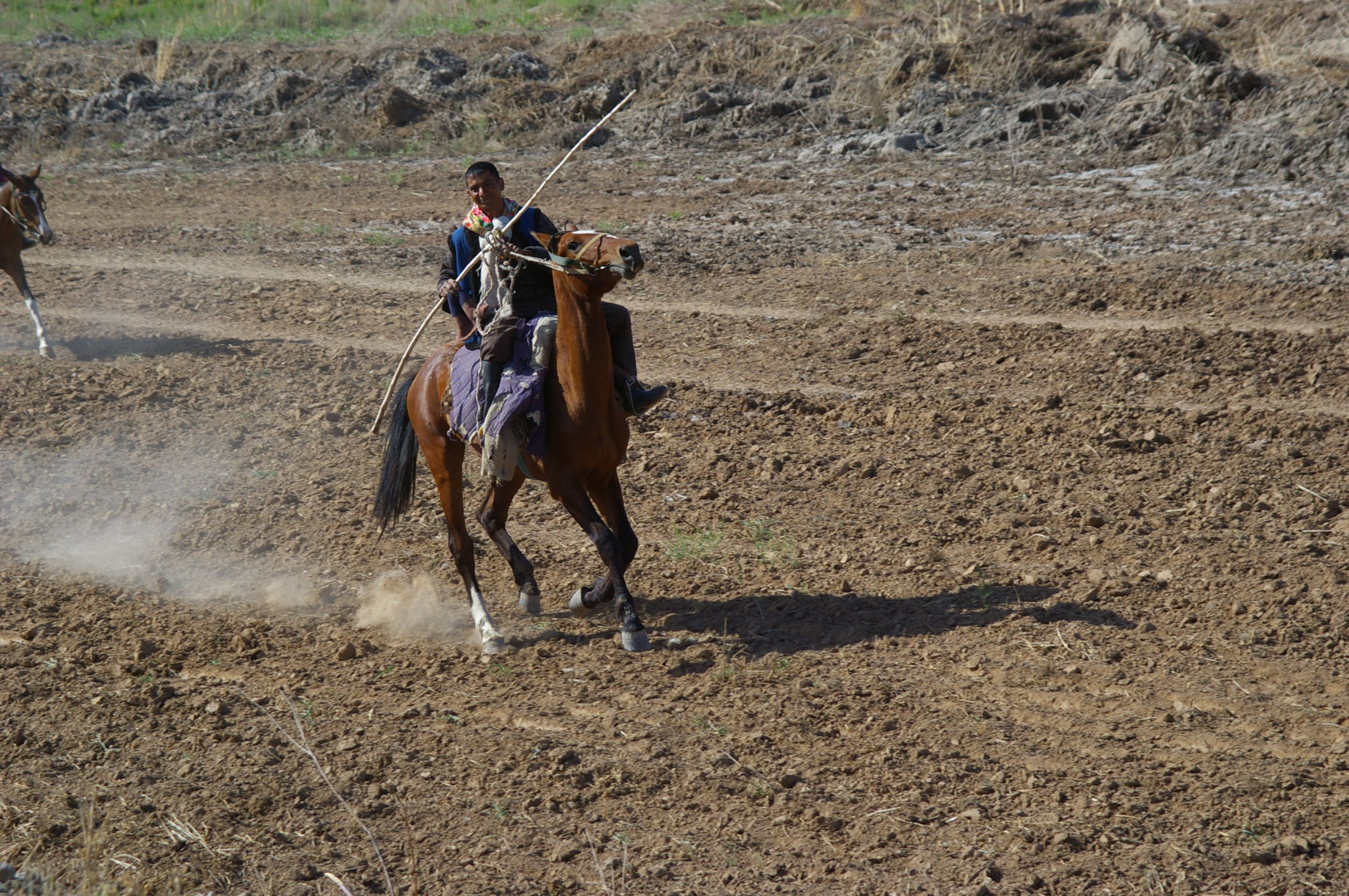 Der Bericht von gestern passt am Tagesanfang auch auf heute, das heisst: Rechts hohe Berge in Richtung Iran, links nichts als Wüste. Später drehen wir nach Westen ab, die Berge verschwinden aus unserem Gesichtsfeld. Am Abend wieder ein Zeltcamp, diesmal aber in der Nähe eines Wasserkanals. Der Vorteil ist, es gibt Wasser für ein Bad, aber es gibt auch viele Gelsen (Stechmücken auf Deutsch).