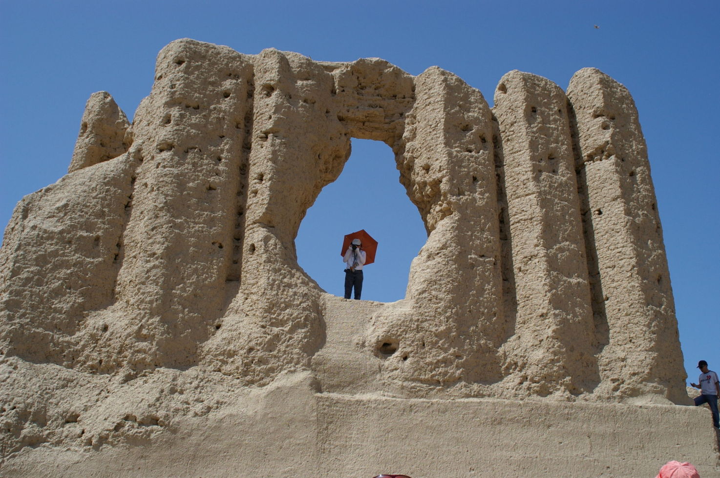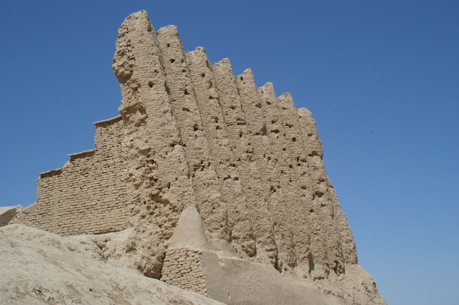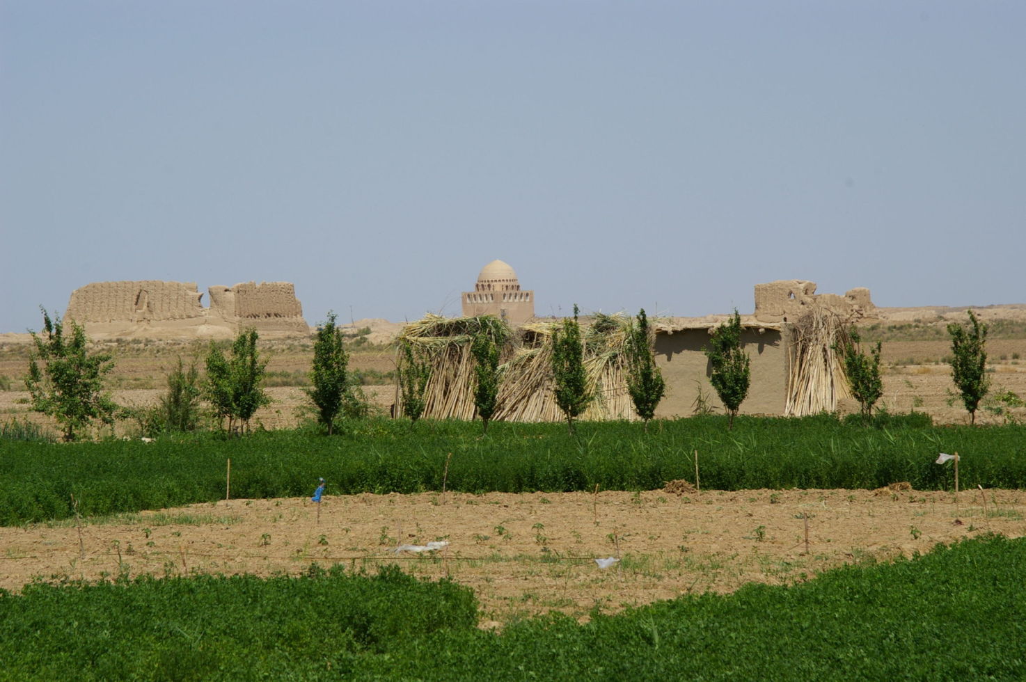 Nach drei anstrengenden Radtagen durch die Wüste kommt uns ein Ruhetag gerade recht. Mit unserem Bus fahren wir 25 km in Richtung Osten und besichtigen dort das Weltkulturerbe Merv. Merv ist deswegen besonders interessant, weil die Stadt im Laufe der Geschichte mehrfach wieder aufgebaut wurde, aber im Gegensatz zu vielen anderen alten Städten nicht übereinander sondern nebeneinander. So ist vieles erhalten geblieben, zumindest aus der Sicht eines Archäologen. Nach der Besichtigung besuchen wir noch einen Basar, die Leute sind sehr freundlich hier, der Markt ist sehr einfach und ursprünglich. Da Turkmenistan kein Tourismusland ist werden wir von der Bevölkerung mit Interesse registriert, weil viele Touristen waren hier bestimmt noch nicht.