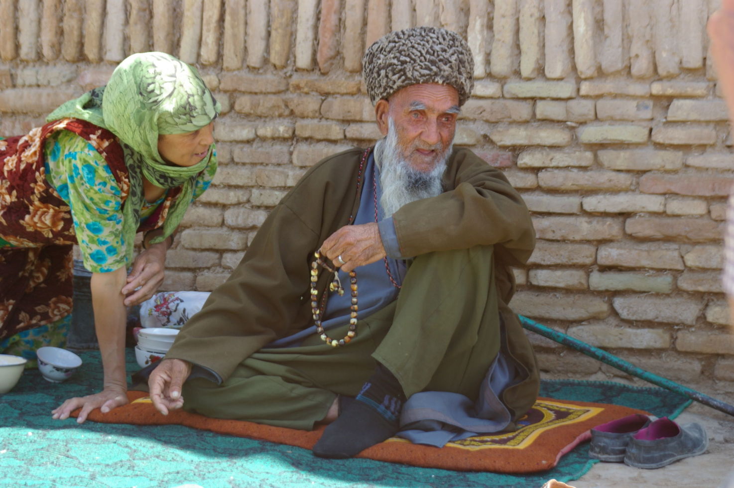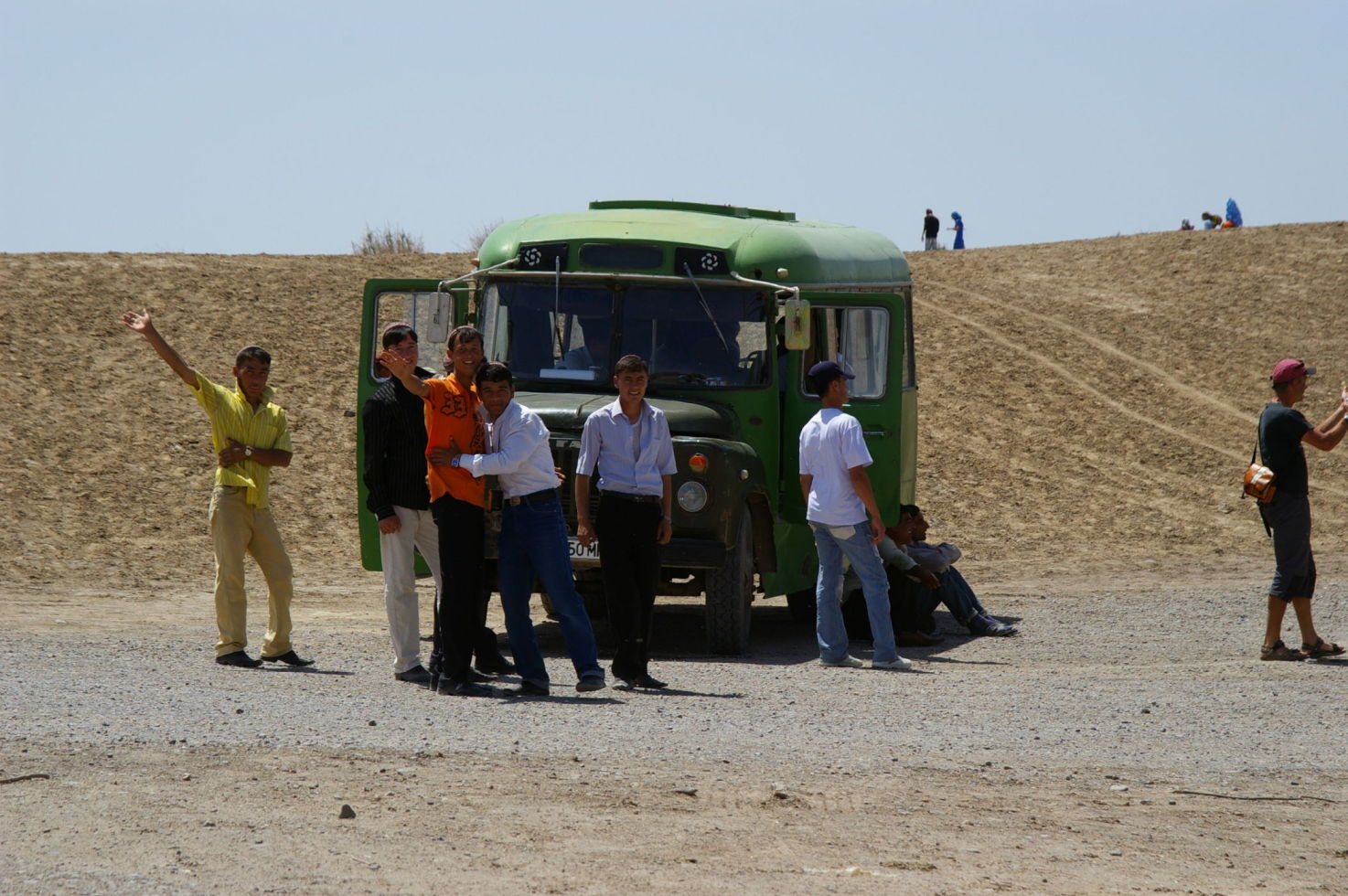 Nach drei anstrengenden Radtagen durch die Wüste kommt uns ein Ruhetag gerade recht. Mit unserem Bus fahren wir 25 km in Richtung Osten und besichtigen dort das Weltkulturerbe Merv. Merv ist deswegen besonders interessant, weil die Stadt im Laufe der Geschichte mehrfach wieder aufgebaut wurde, aber im Gegensatz zu vielen anderen alten Städten nicht übereinander sondern nebeneinander. So ist vieles erhalten geblieben, zumindest aus der Sicht eines Archeologen. Nach der Besichtigung besuchen wir noch einen Basar, die Leute sind sehr freundlich hier, der Markt ist sehr einfach und ursprünglch. Da Turkmenistan kein Tourismusland ist werden wir von der Bevölkerung mit Interesse registriert, weil viele Touristen waren hier bestimmt noch nicht.
