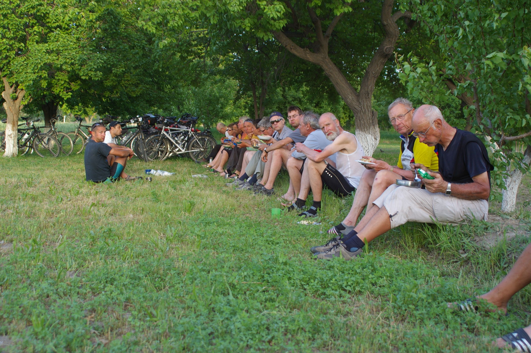 Trotzdem gibt es ein gutes Essen, alle Sitzen im Garten und sind froh das es heute so gut geklappt hat, weil wir wieder ein neues Land erreicht haben auf unserem Weg nach Peking.