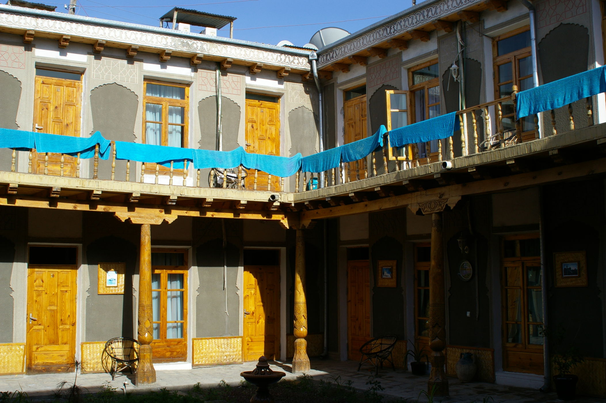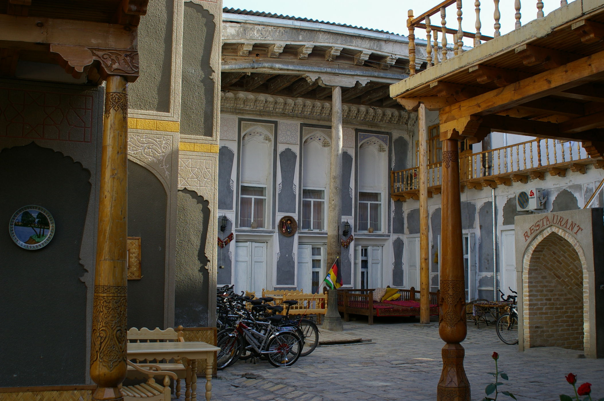 Heute beenden wir die Reise von Mary nach Bukara mit einer relativ kurzen Etappe. Bukara selbst bietet uns schon bei der Einfahrt tolle Blicke. Unterwegs gibt es ein leckeres sehr typisches Mittagessen. Wir ziehen in eine schönes einfaches Hotel ein, es hat einen gemütlichen Innenhof und wir sind froh nach den vielen Zeltübernacht wieder in einem komfortablen Hotel zu sein.