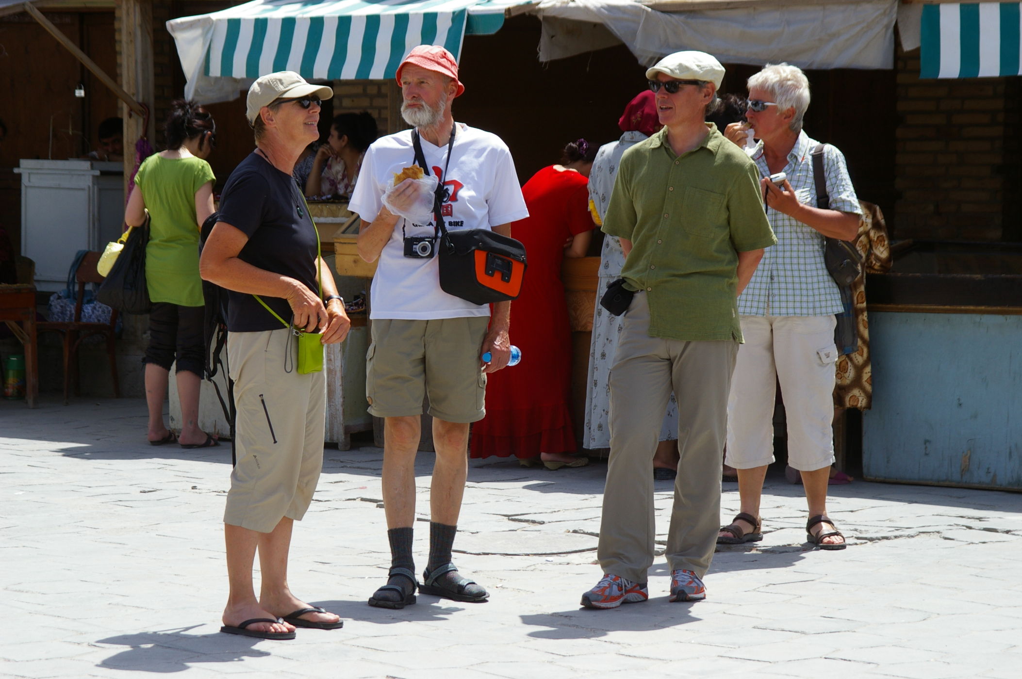 Eine ausführliche Stadtbesichtigung nimmt den ganzen Tag in Anspruch. Aber in Bukara gibt es so viel zu sehen, das ein Tag eigentlich nicht genug ist. Außerdem kann man hier auch ganz gut einkaufen, besonders die Teppiche finden gefallen. Unser Reiseleiter Fahrrod kann uns viel erzählen, so wird die Stadtbesichtigung richtig interessant. Die Stadt ist natürlich sehr touristisch ausgerichtet, die Händler in den Basaren können vielfach auch Deutsch, sind aber nicht aufdringlich, so das das Stöbern in den Teppichen richtig Spaß macht.