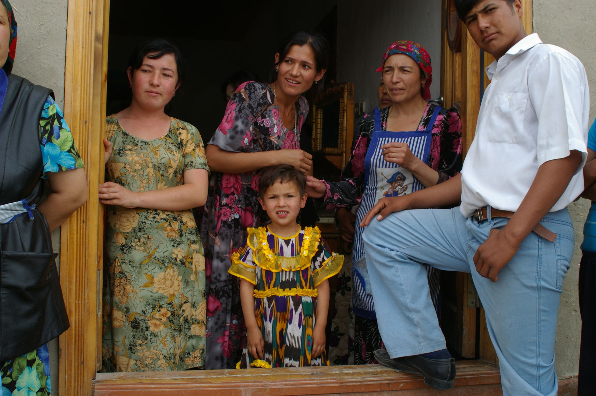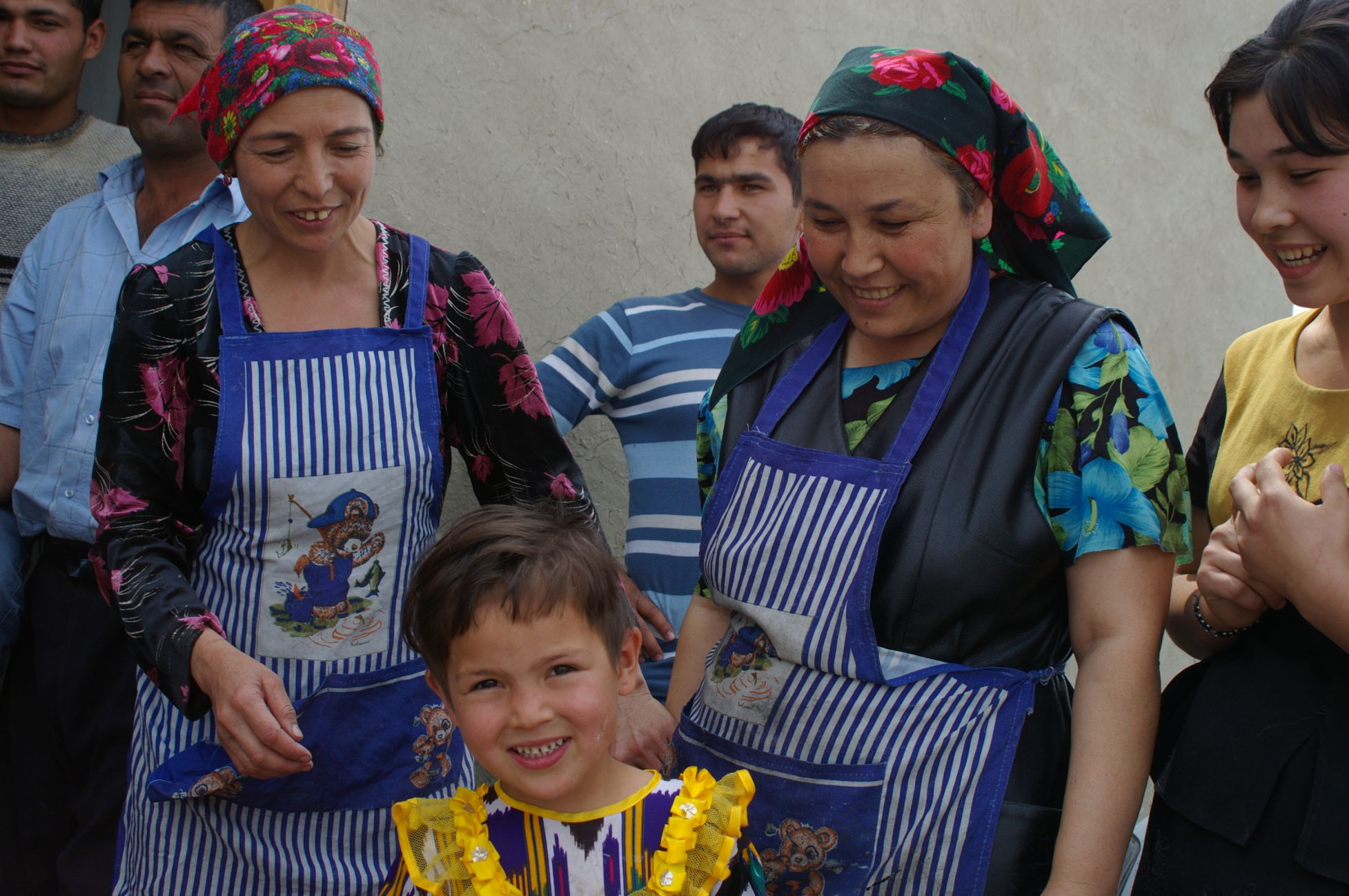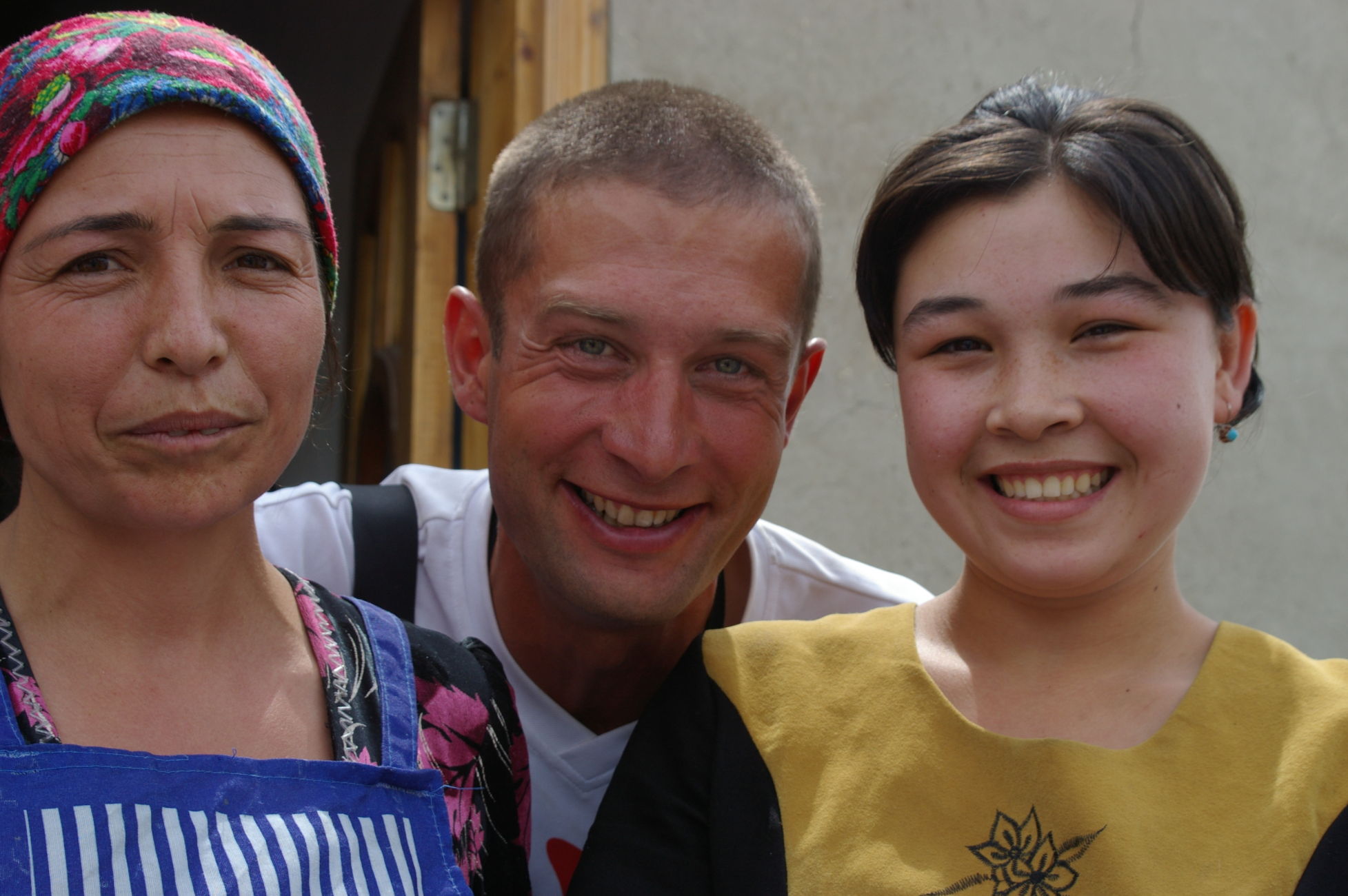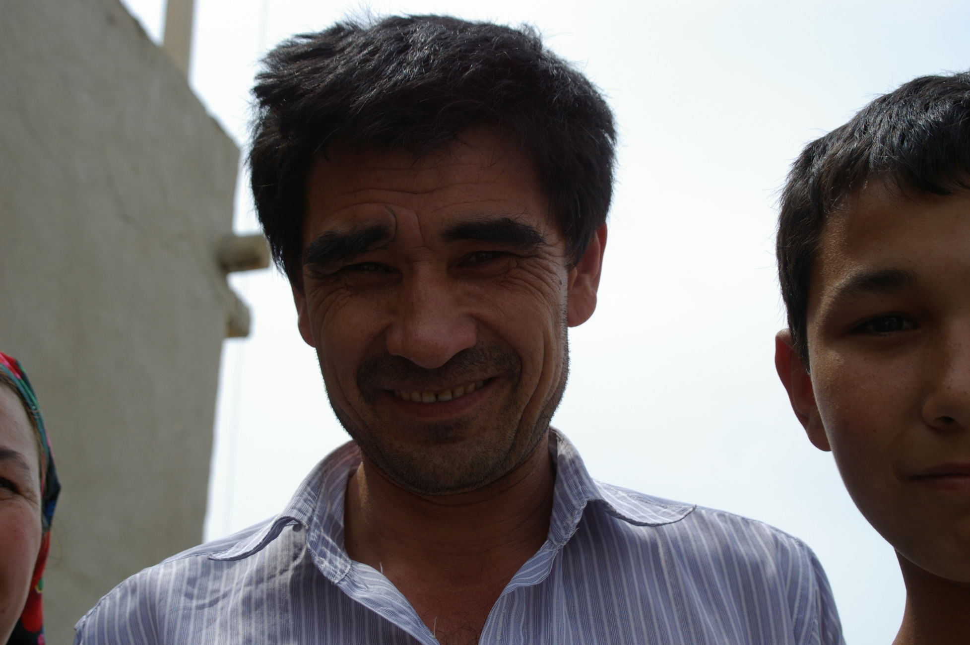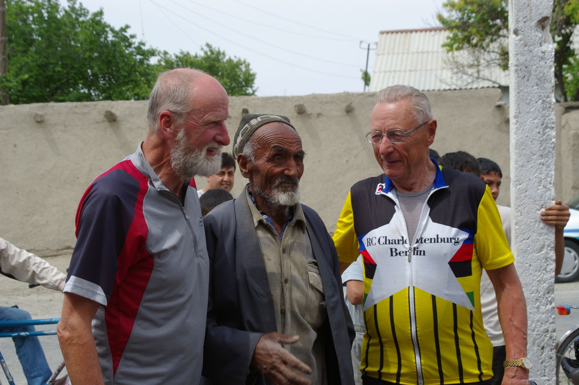 Der Weg nach Samarkand beginnt sehr gemütlich. Wegen eines Missverständnisses kürzen wir die Strecke ein wenig ab und fahren auf der Autobahn mit dem scheinbar hier überall üblichen Polzeischutz direkt in den Ort Galaasyia. Dort kaufen wir am Markt ein paar gute Sachen für die Mittagspause. Das Mittagsessen wird wieder zu einem netten Erlebnis, wir sitzen vor einer Teestube und das ganze Dorf läuft zusammen. Eine Gelegenheit zahlreiche hübsche Fotos zu machen. Danach tauchen wir wieder in die Wüste ein. Es gibt eine Zeltübernachtung sehr nahe zu einem kleinen See den wir für ein erfrischendes Bad nutzen.