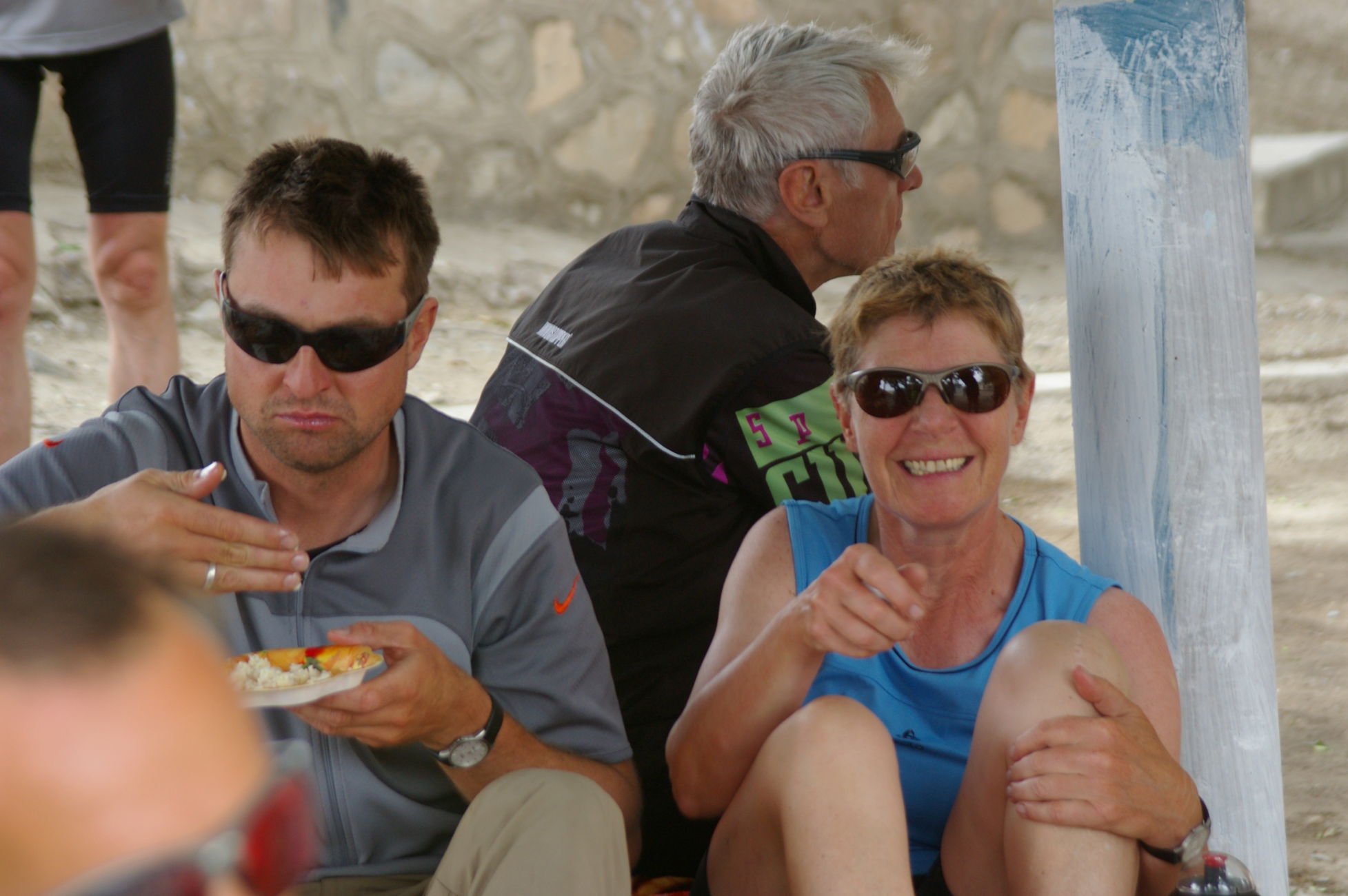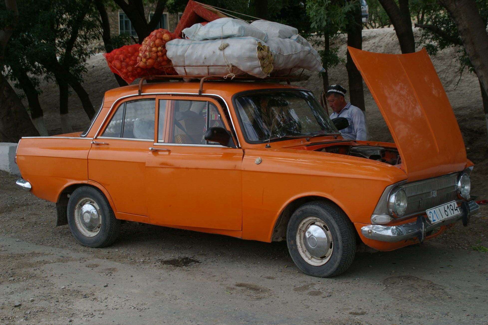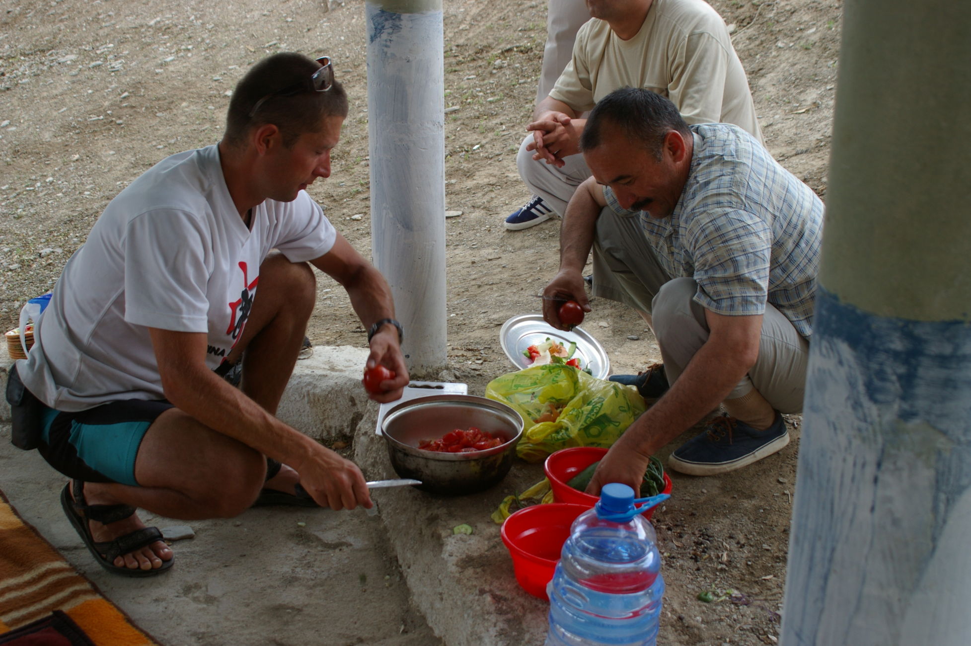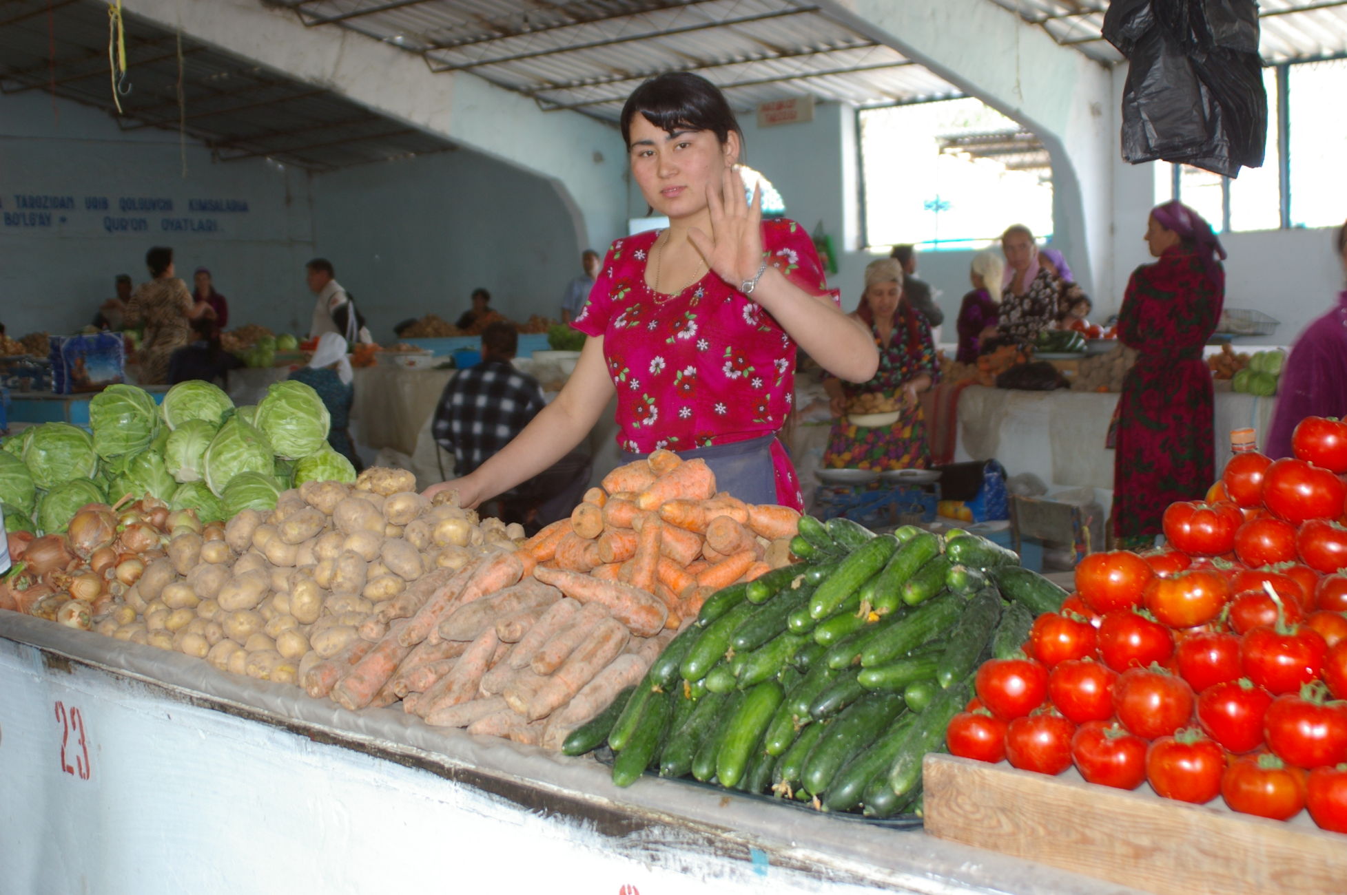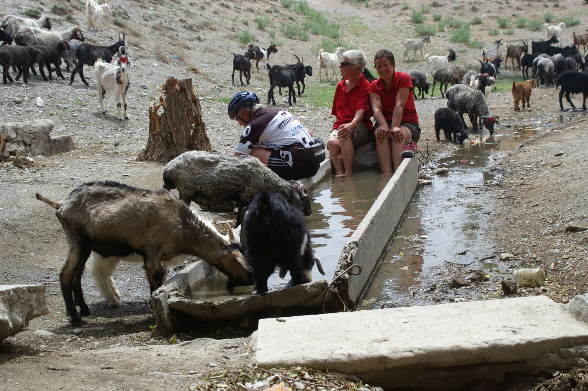 Von dem kleinen See fahren wir weiter Richtung Samarkand in den Ort Nurata. Unterwegs halten wir an einem Basar, hier finden sich alle möglichen und unmöglichen Dinge zu kaufen. Ich finde eine schöne alte chinesische Fahrradklingel, die auch gleich montiert ist. Schon wie am Vortag bildet sich innerhalb kurzer Zeit ein richtiger Menschenauflauf, so das die Polizei gleich nervös wird. Nach langer Fahrt in der Ebene durch die Wüsten haben wir heute wieder mal ein bisschen Berg, der uns allen aber keine Probleme bereitet, weil das Wetter ist nicht so heiß und wir sind offensichtlich in bester Form. Die heutige Übernachtung ist in einem Privatquartier, in dem Ort gibt es kein Hotel. Weil das Wetter schön ist schlafen ein paar von uns einfach im Garten.