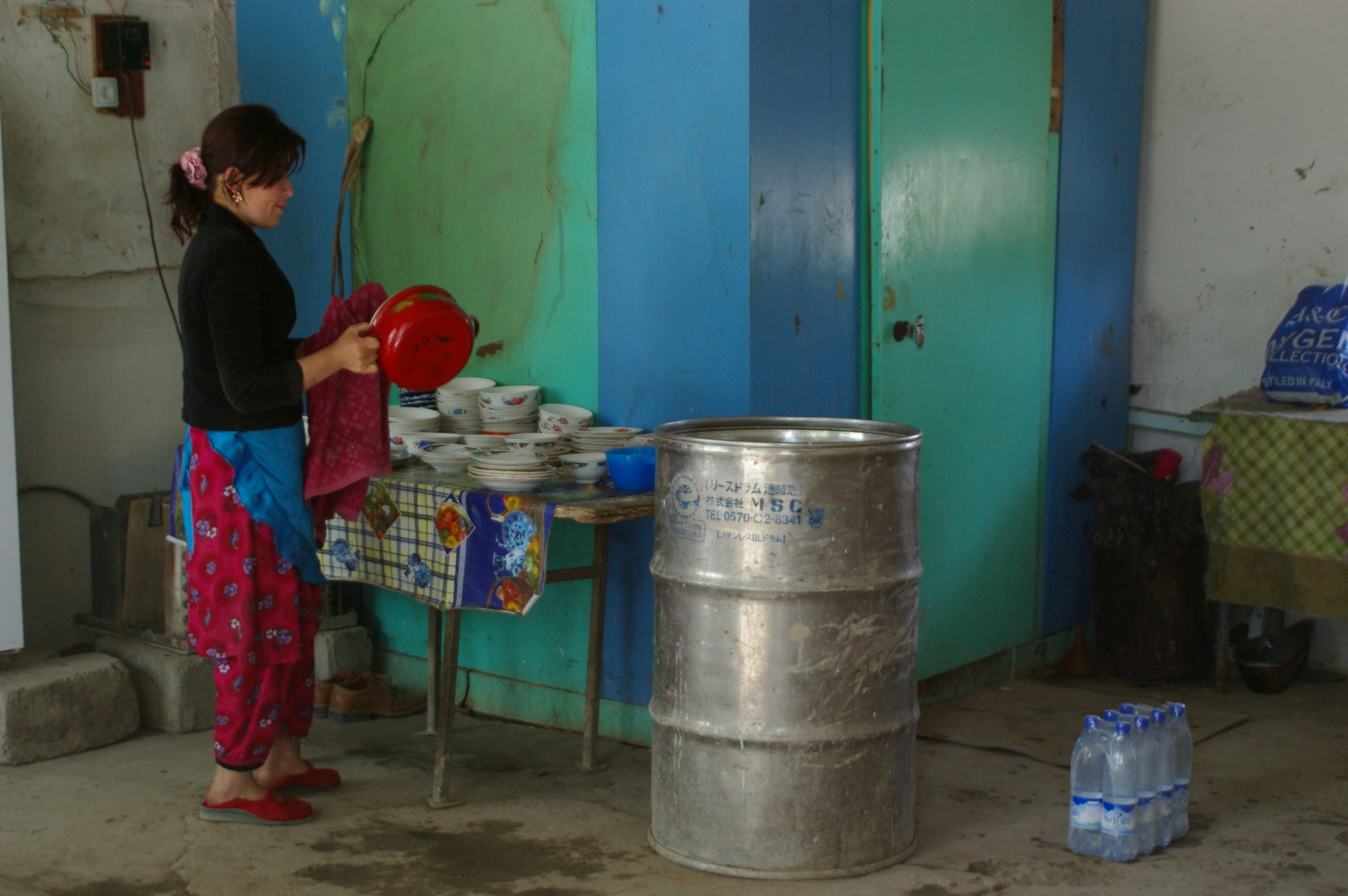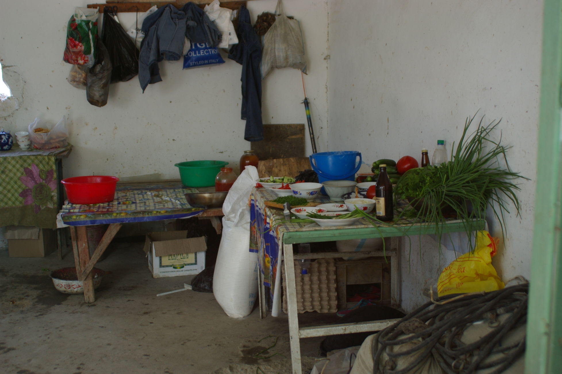 Von dem kleinen See fahren wir weiter Richtung Samarkand in den Ort Nurata. Unterwegs halten wir an einem Basar, hier finden sich alle möglichen und unmöglichen Dinge zu kaufen. Ich finde eine schöne alte chineschische Fahrradklingel, die auch gleich montiert ist. Schon wie am Vortag bildet sich innerhalb kurzer Zeit ein richtiger Menschenauflauf, so das die Polizei gleich nervös wird. Nach langer Fahrt in der Ebene durch die Wüsten haben wir heute wieder mal ein bisschen Berg, der uns allen aber keine Probleme bereitet, weil das Wetter ist nicht so heiss und wir sind offensichtlich in bester Form. Die heutige Übernachtung ist in einem Privatquartier, in dem Ort gibt es kein Hotel. Weil das Wetter schön ist schlafen ein paar von uns einfach im Garten.