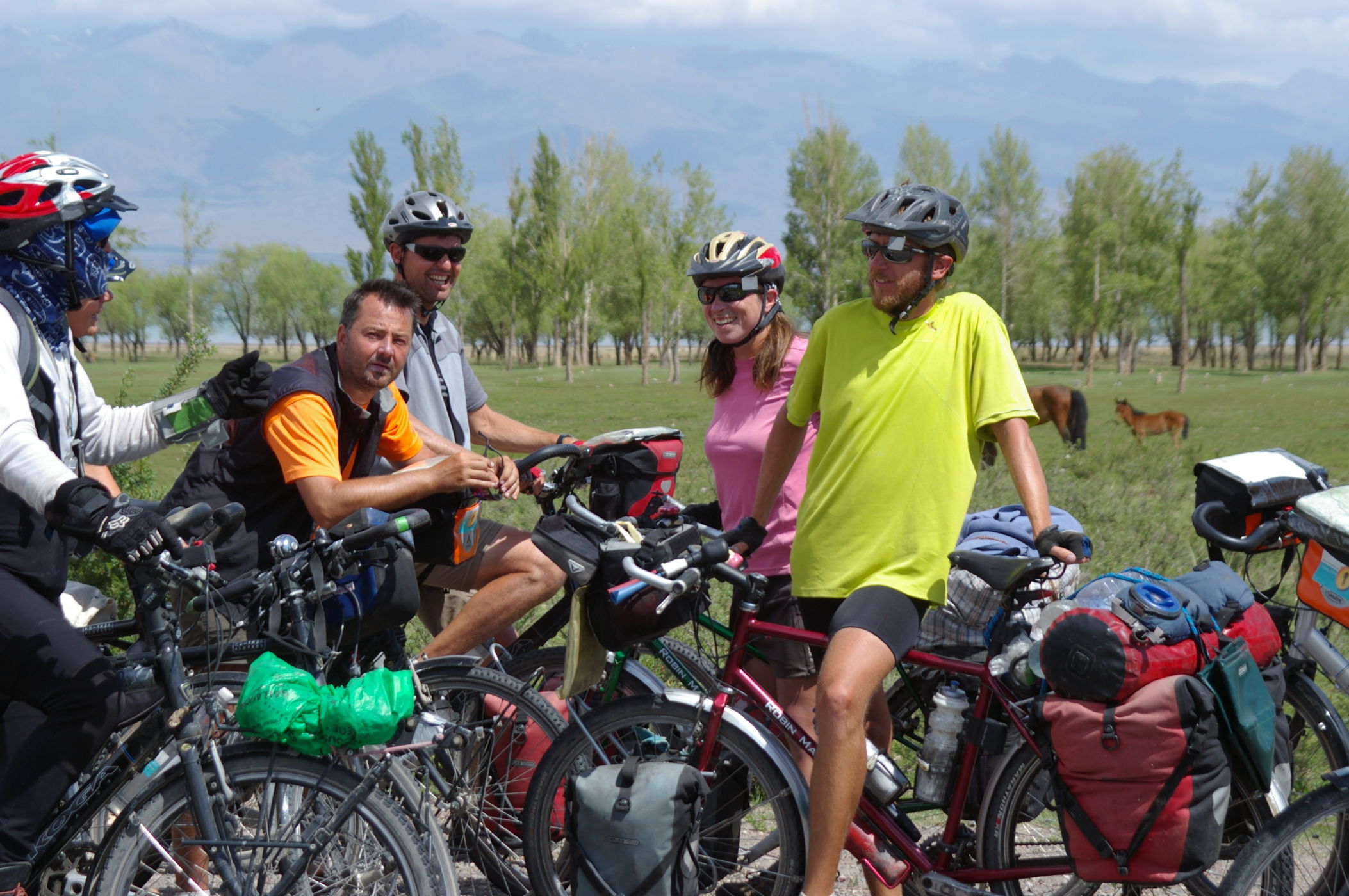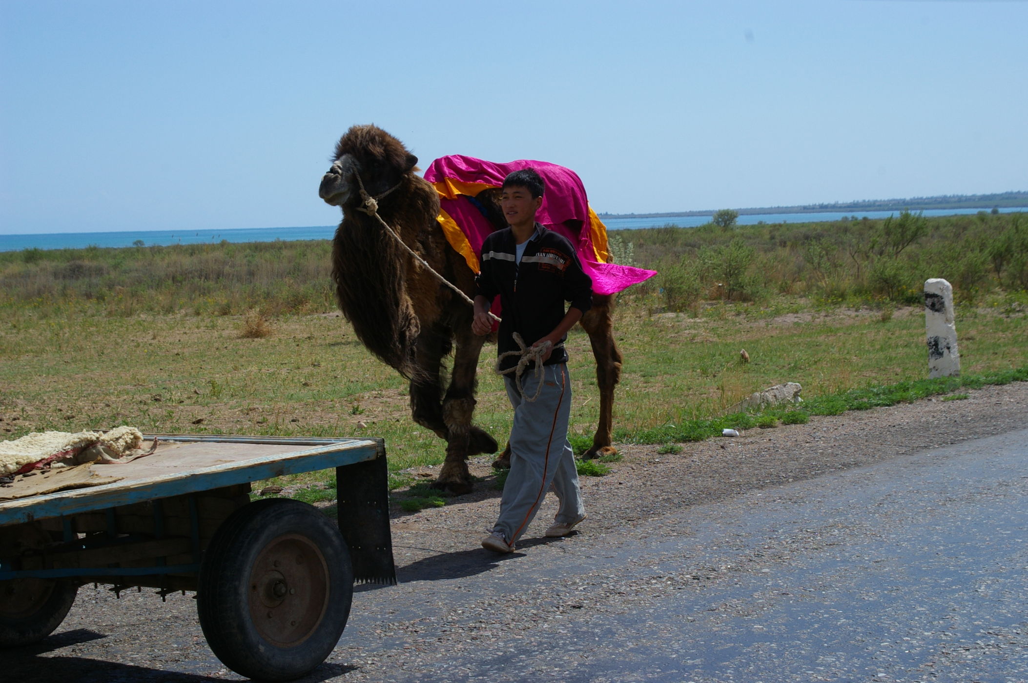 Tag der Begegnung: Wir haben schon seit vielen Tagen keine anderen Radfahrer, die eine grosse Tour fahren, gesehen. Dafür heute, innerhalb weniger Kilometer, treffen wir ein Paar aus Kanada, die seit 2006 rund um die Welt reisen und noch gar nicht wissen, wann sie wieder heimkehren sollen. Wenige Minuten später treffen wir drei weiter Weltenbummler, ein Paar aus Frankreich und einen ungarischen Radfreak, die ausgehend von Bangkok nach Hause fahren. Wir unterhalten uns ein weilchen und ich denke mir: Cool, nicht so organisiert wie wir, ist vielleicht auch einmal eine Art zu reisen, aber keine Angst, mach ich nicht sofort. Ansonst begann der Tag mit einer schönen Abfahrt in Richtung Ysyk-köl und etwa den haleb See entlang. Wir stoppen in der Ortschaft Bokonbaevo und übernachten in einem Privatquartier. Wir sind in drei Häuser aufgeteilt, unser Haus hat ein tolles Bad, mit einem Badeofen zur Wassererwärmung, der von aussen mit Kuhmist geheizt wird.